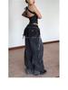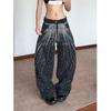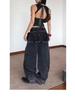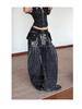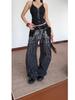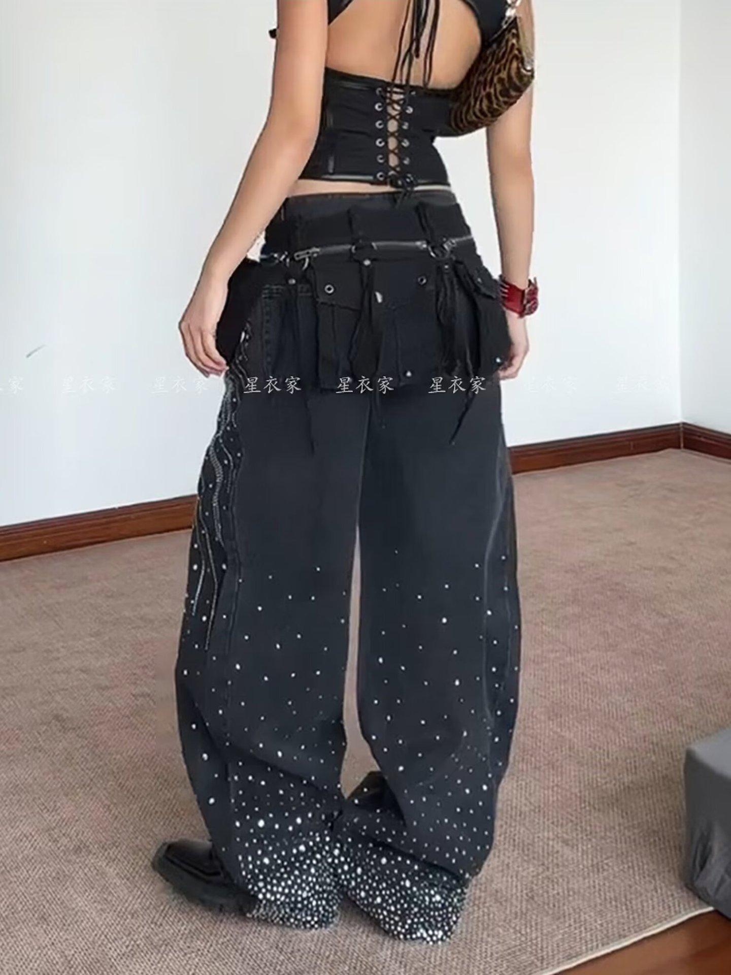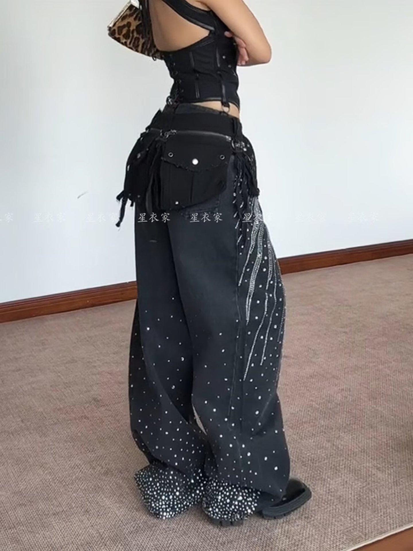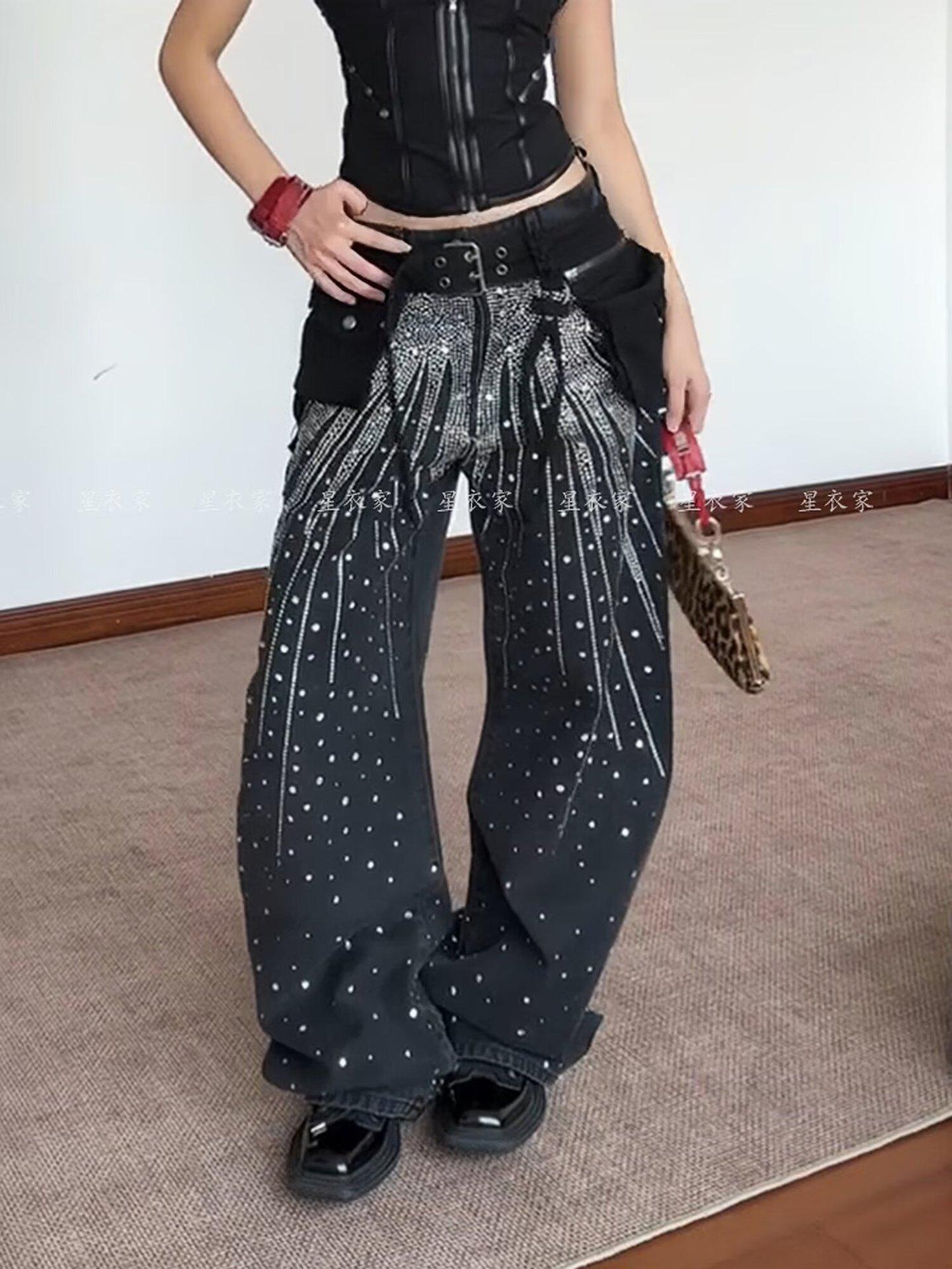 Europeo y Americano Americano Retro Lavado Pedrería Cielo Estrellado Pierna Curva Jeans Mujer Calle Suelto Adelgazante Pierna Ancha Pantalones Largos Tendencia