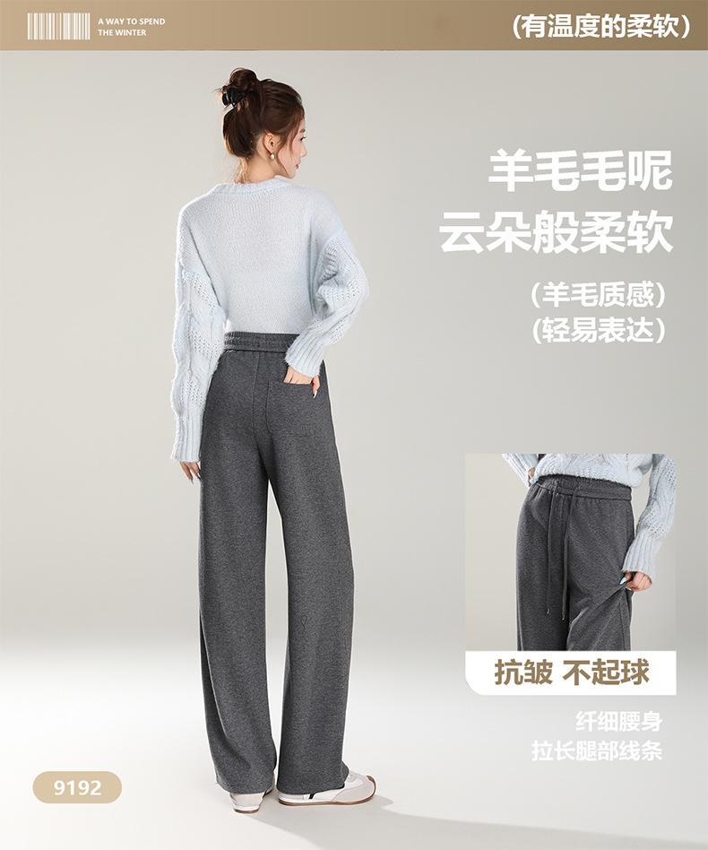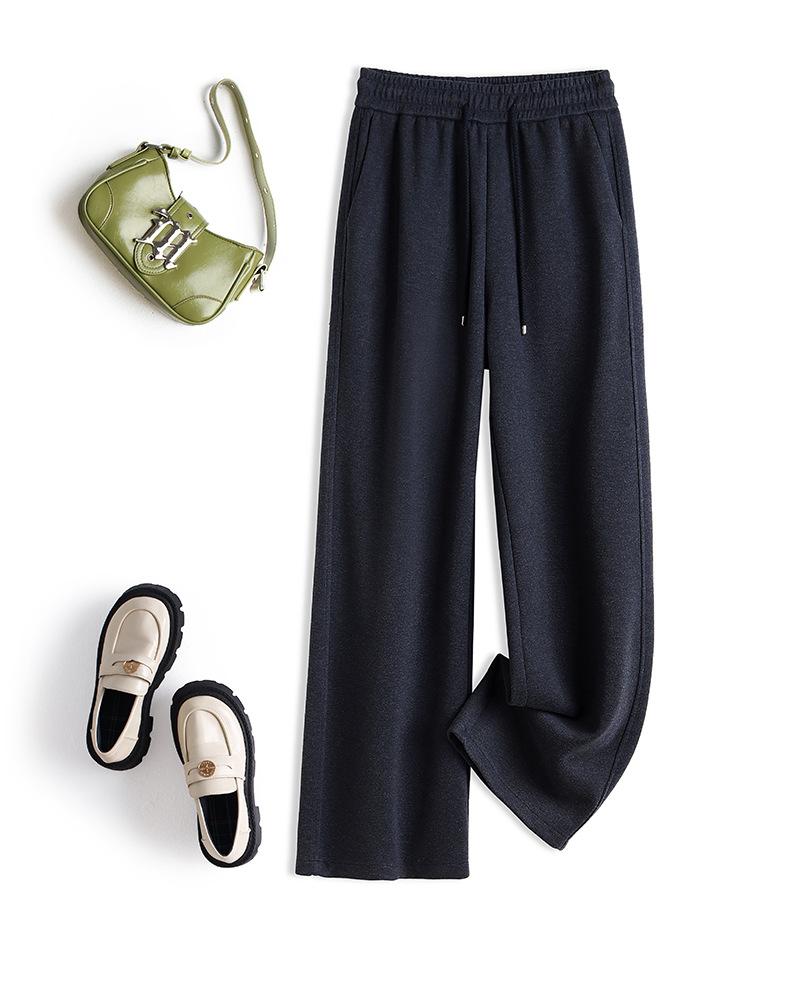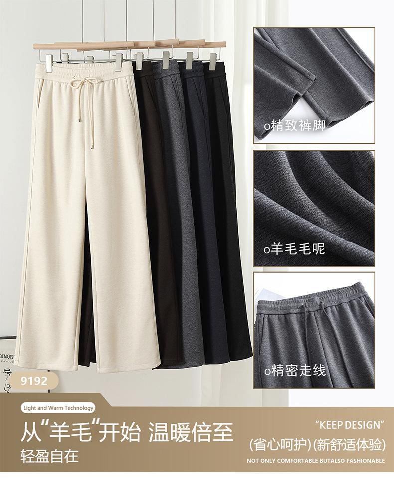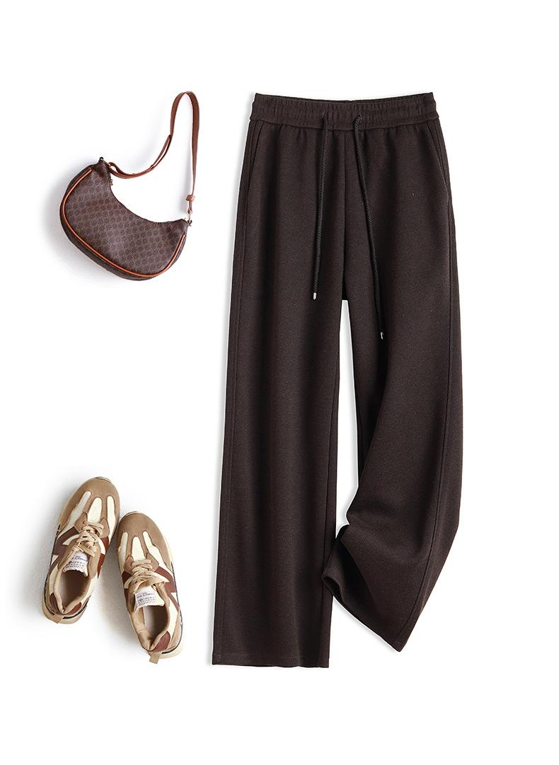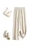 Pantalones Rectos con Cordón de Cintura Alta Nuevos para Mujer Otoño e Invierno Pantalones Deportivos Cálidos Adelgazantes de Pierna Ancha Pantalones Casuales