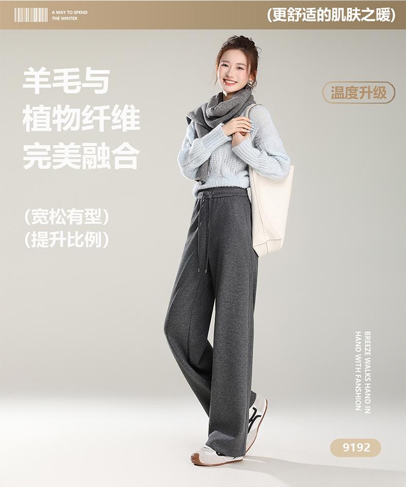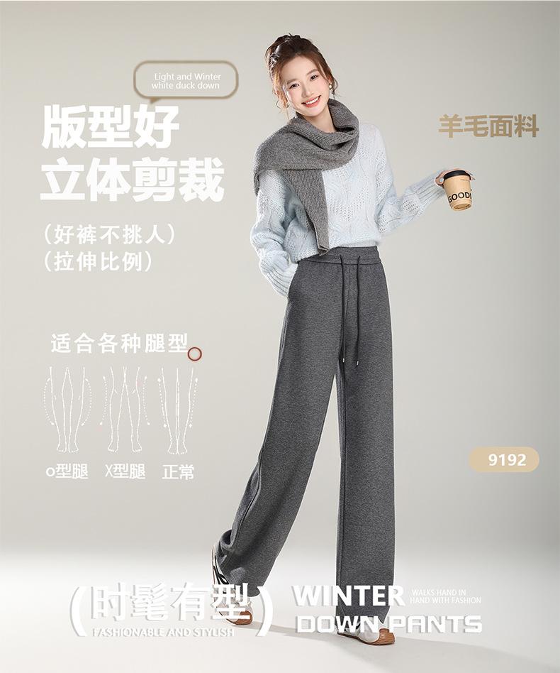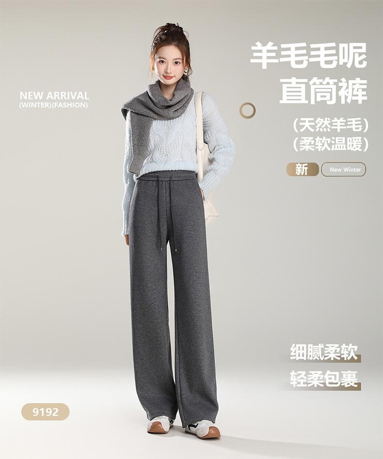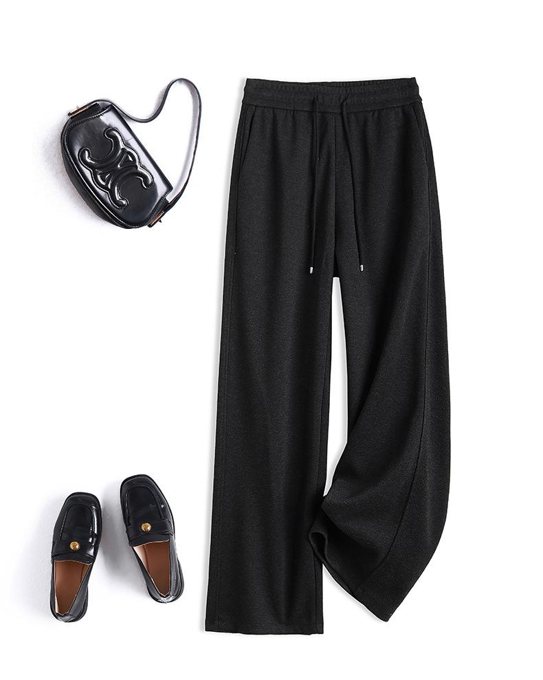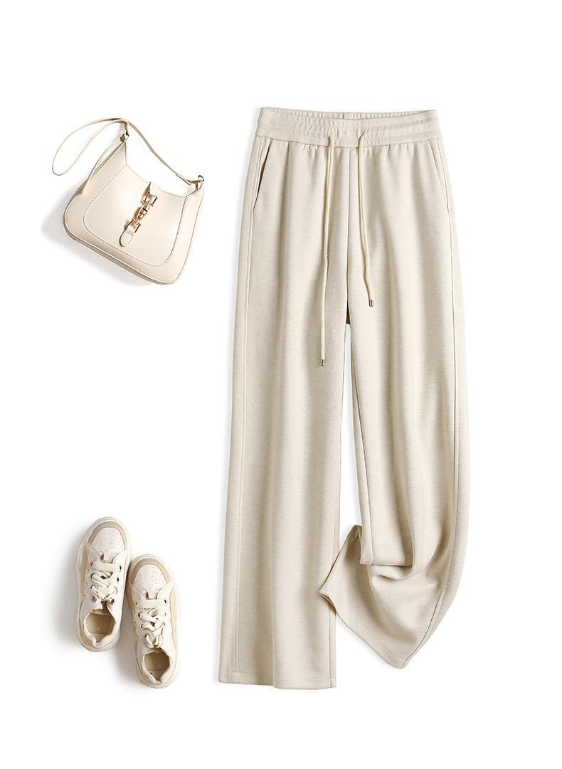 Pantalones Rectos con Cordón de Cintura Alta Nuevos para Mujer Otoño e Invierno Pantalones Deportivos Cálidos Adelgazantes de Pierna Ancha Pantalones Casuales