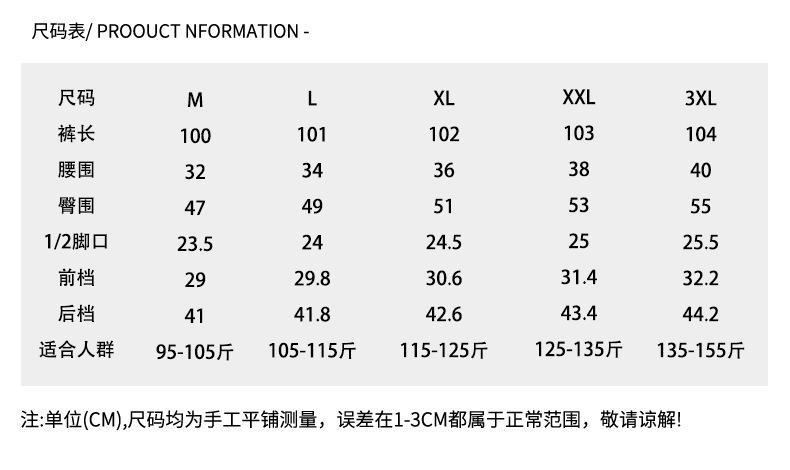 M (95-105 pounds), L (105-115 pounds), XL (115-125 pounds), XXL(125-135 jin), XXXL(135-155 jin)