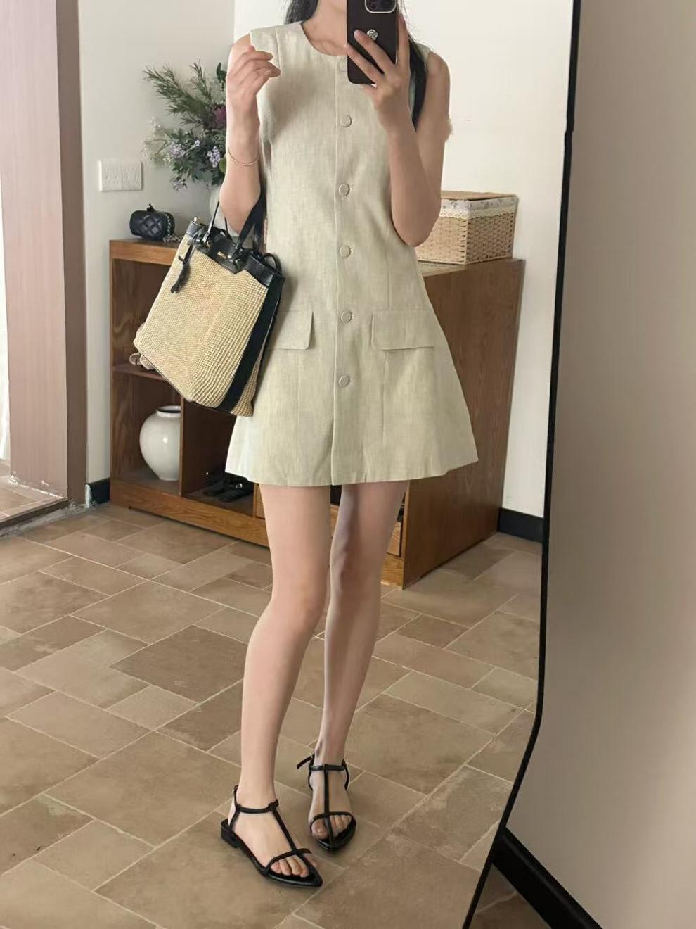 Vestido de temperamento de alta gama sin mangas de buena calidad con aroma sutil