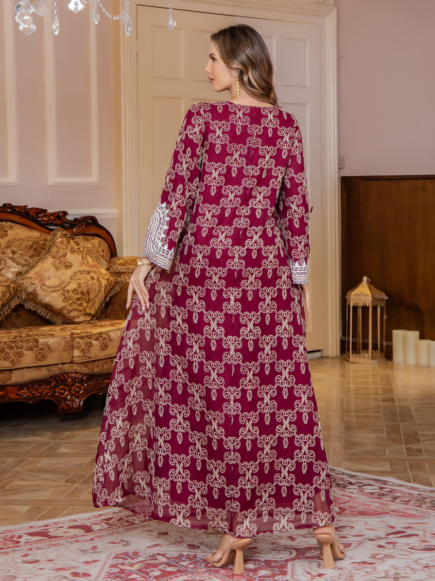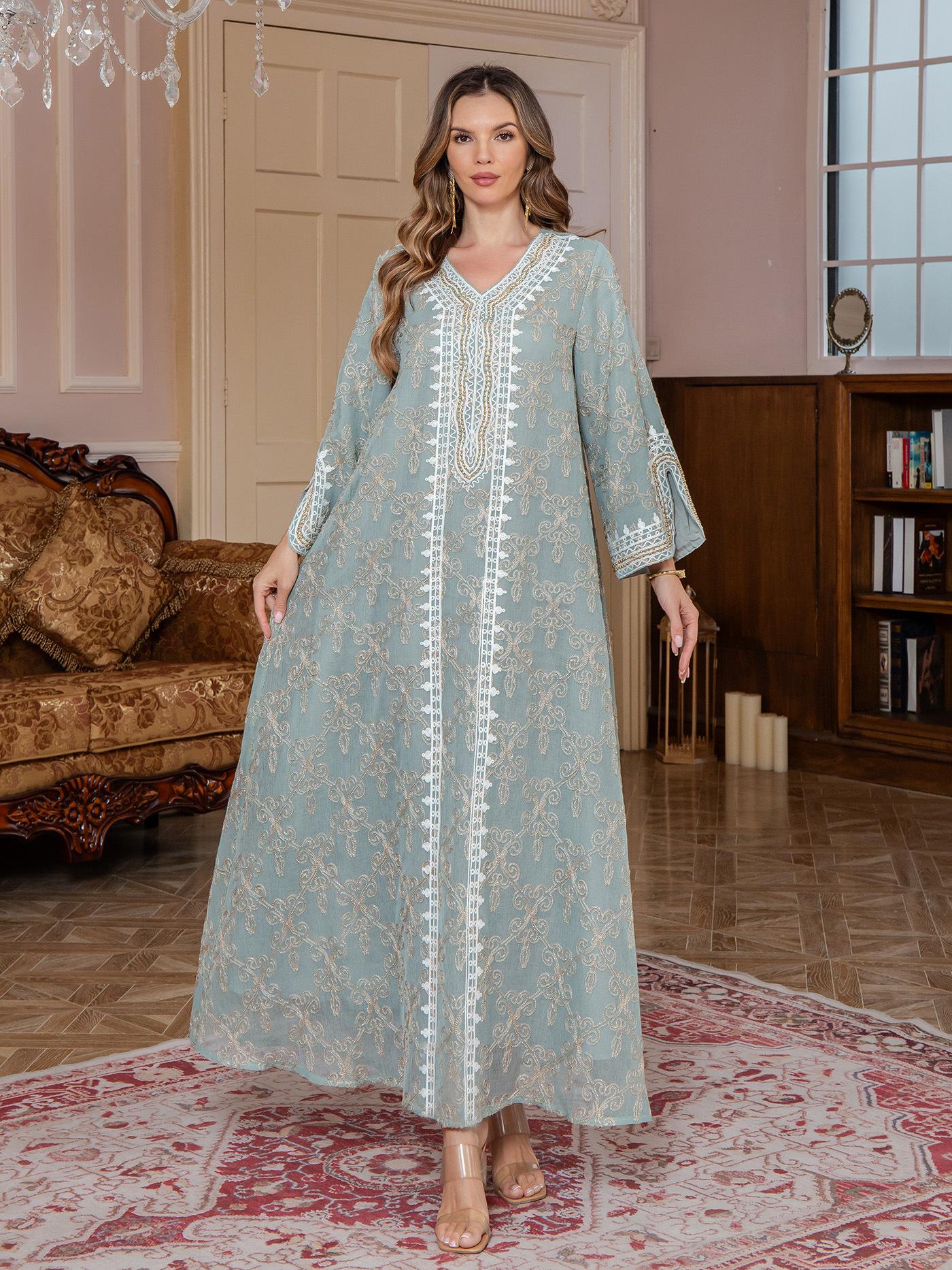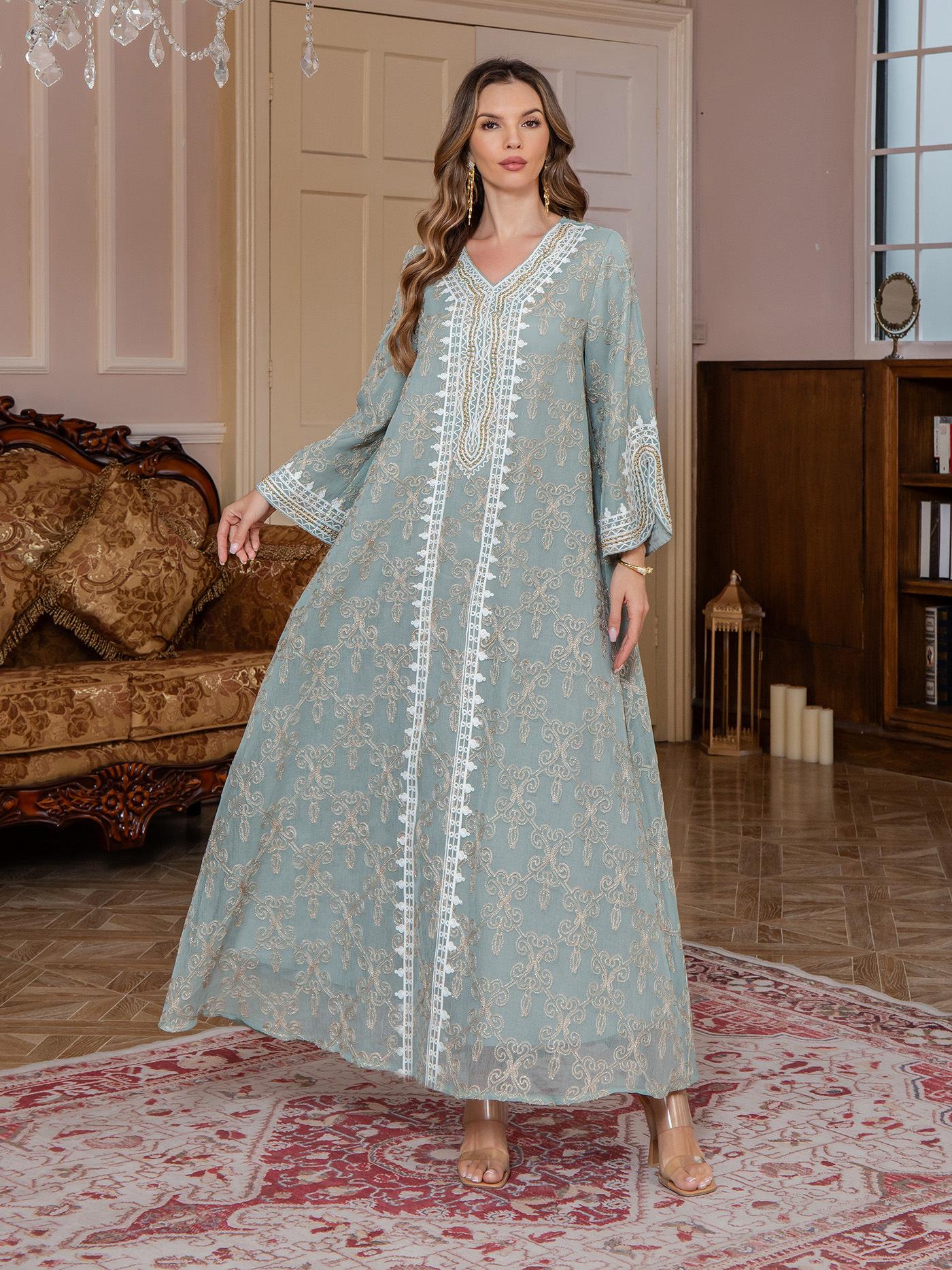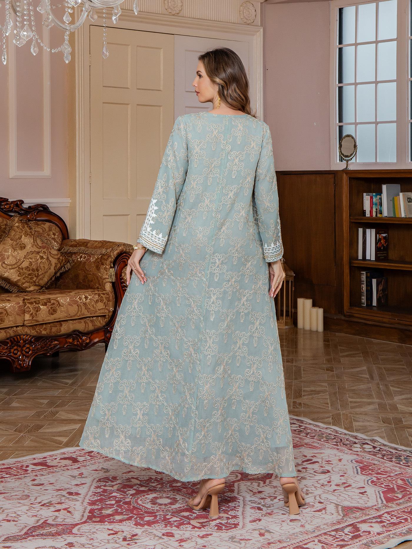 Nueva Comercio Exterior Amazon Bata Musulmana para Mujer Ropa de Oriente Medio jalabiya Bordado Elegante Vestido Largo Dubái