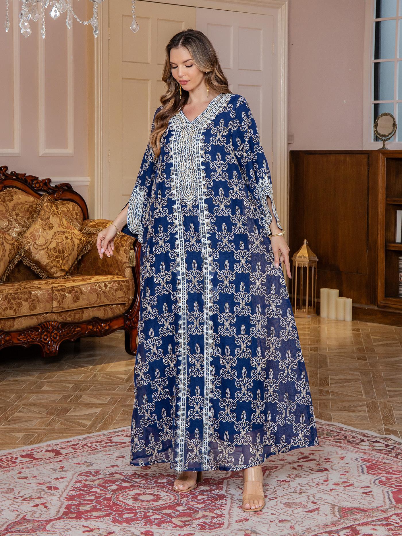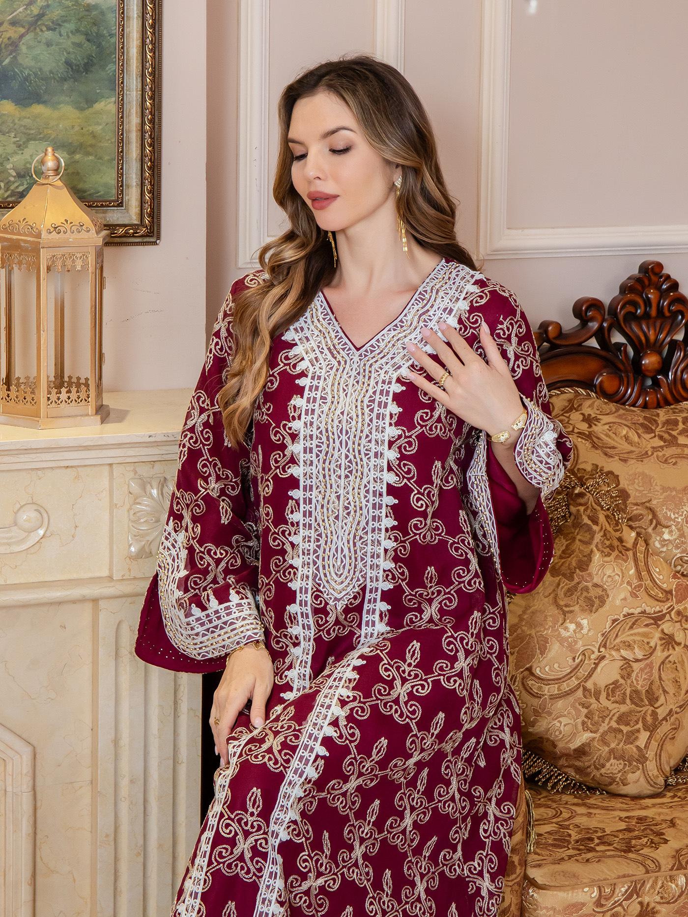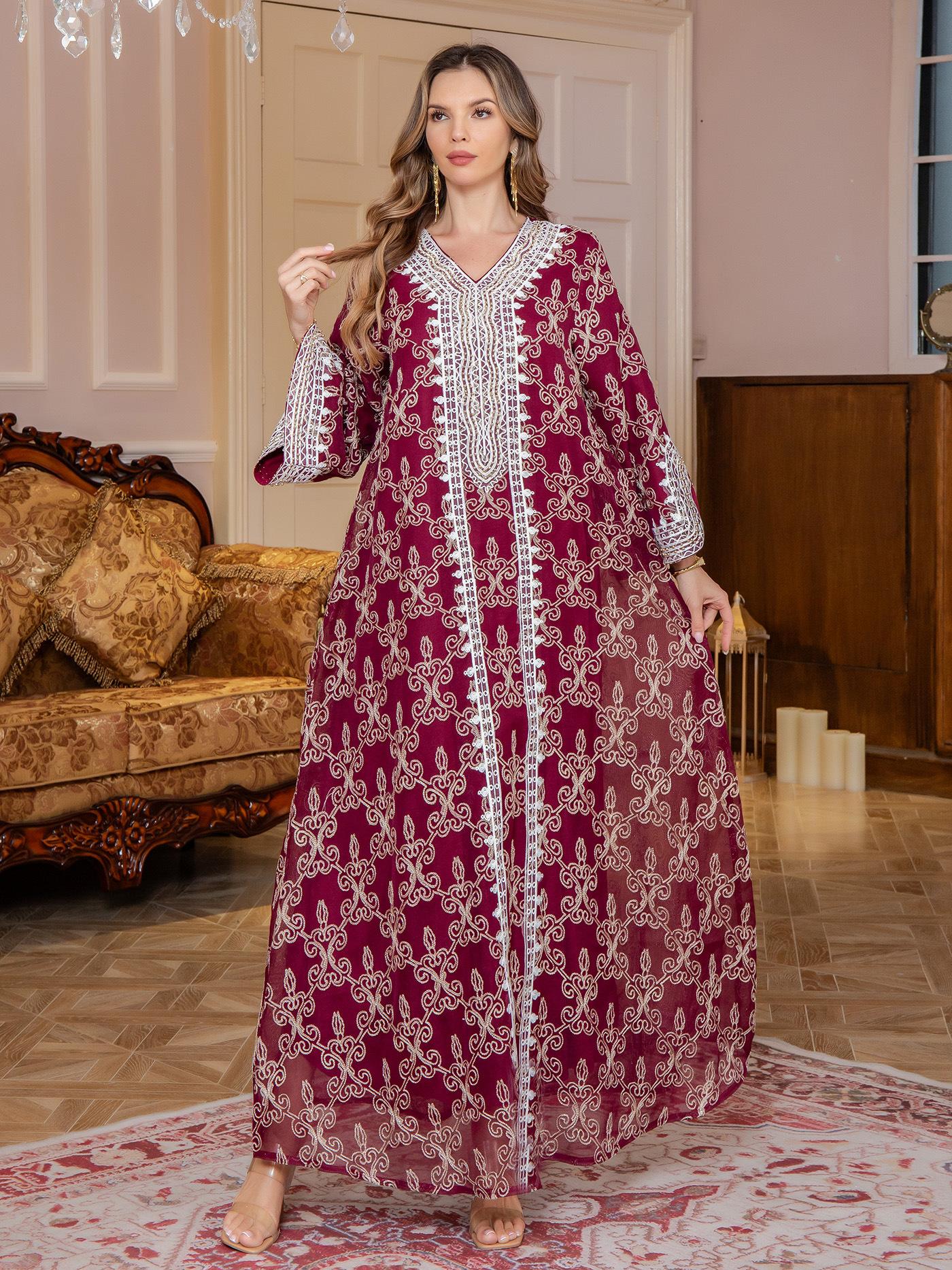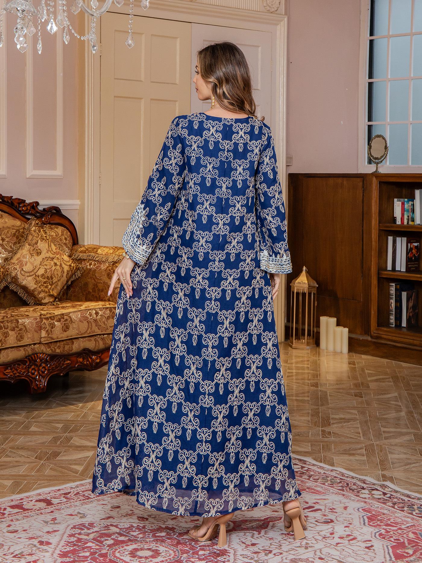 Nueva Comercio Exterior Amazon Bata Musulmana para Mujer Ropa de Oriente Medio jalabiya Bordado Elegante Vestido Largo Dubái