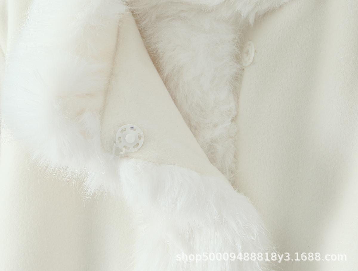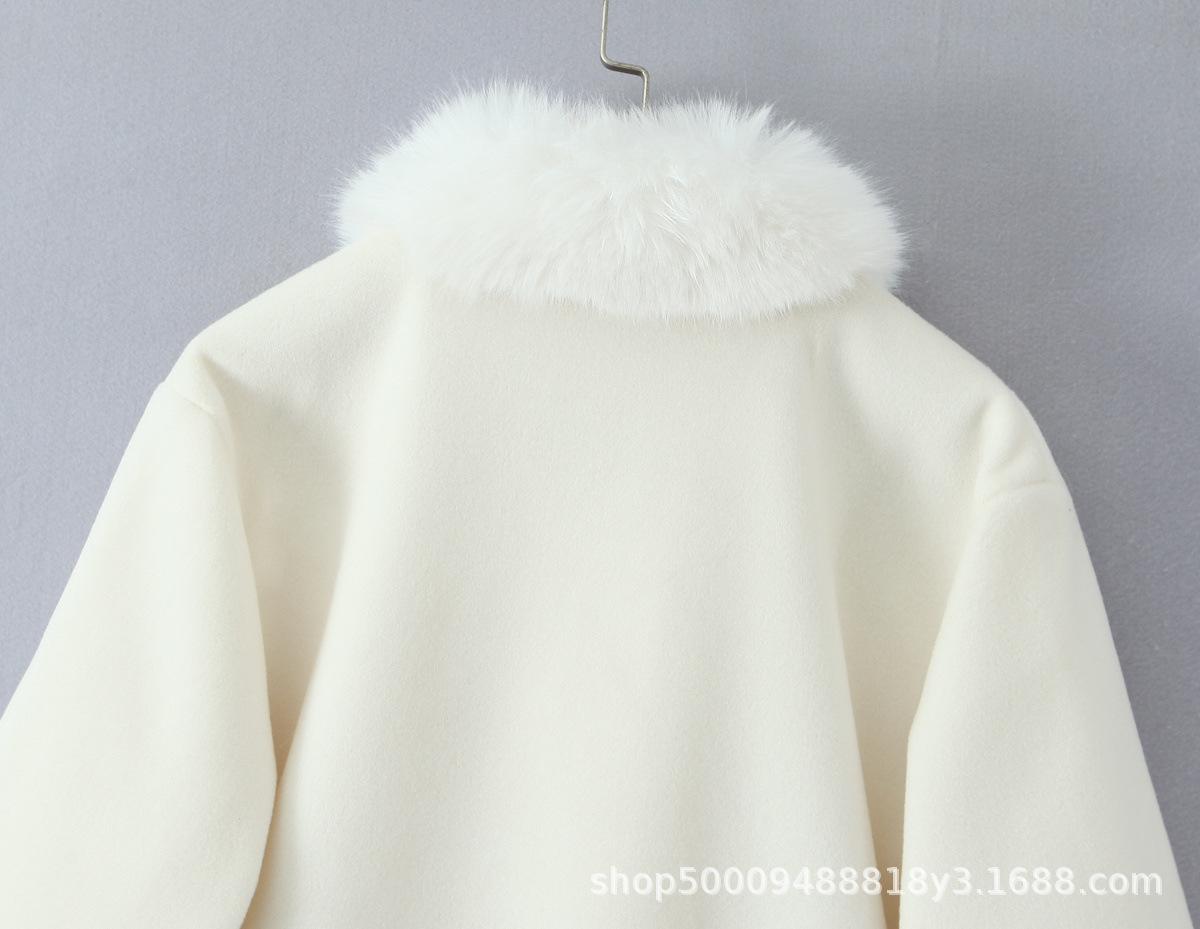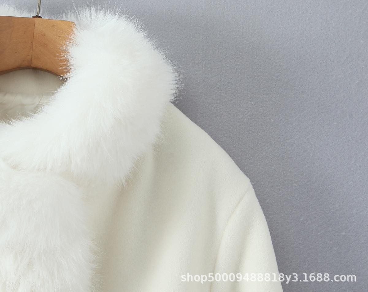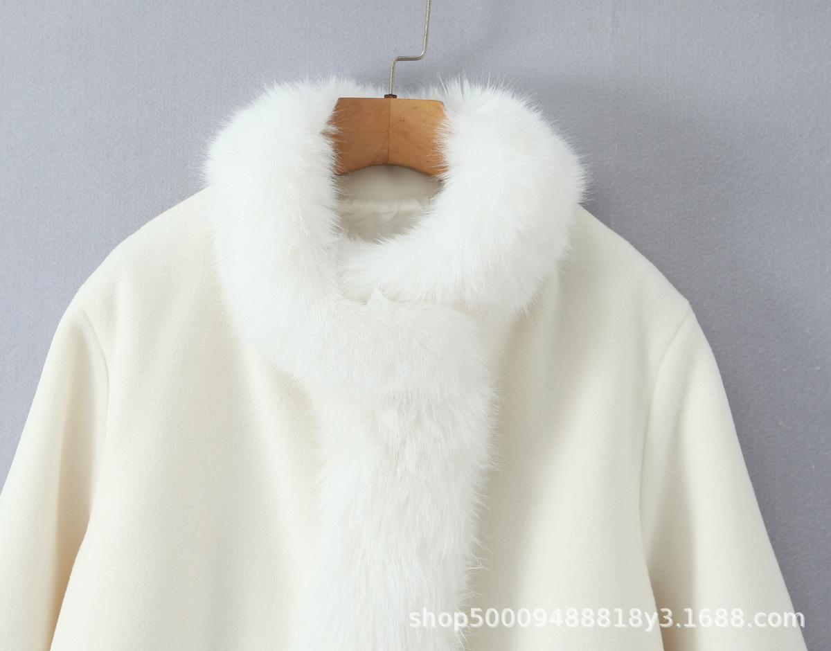 Abrigo de lana de temperamento versátil con cuello de piel blanca de invierno para blogger de estilo europeo y americano nuevo transfronterizo 2025