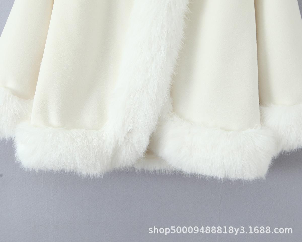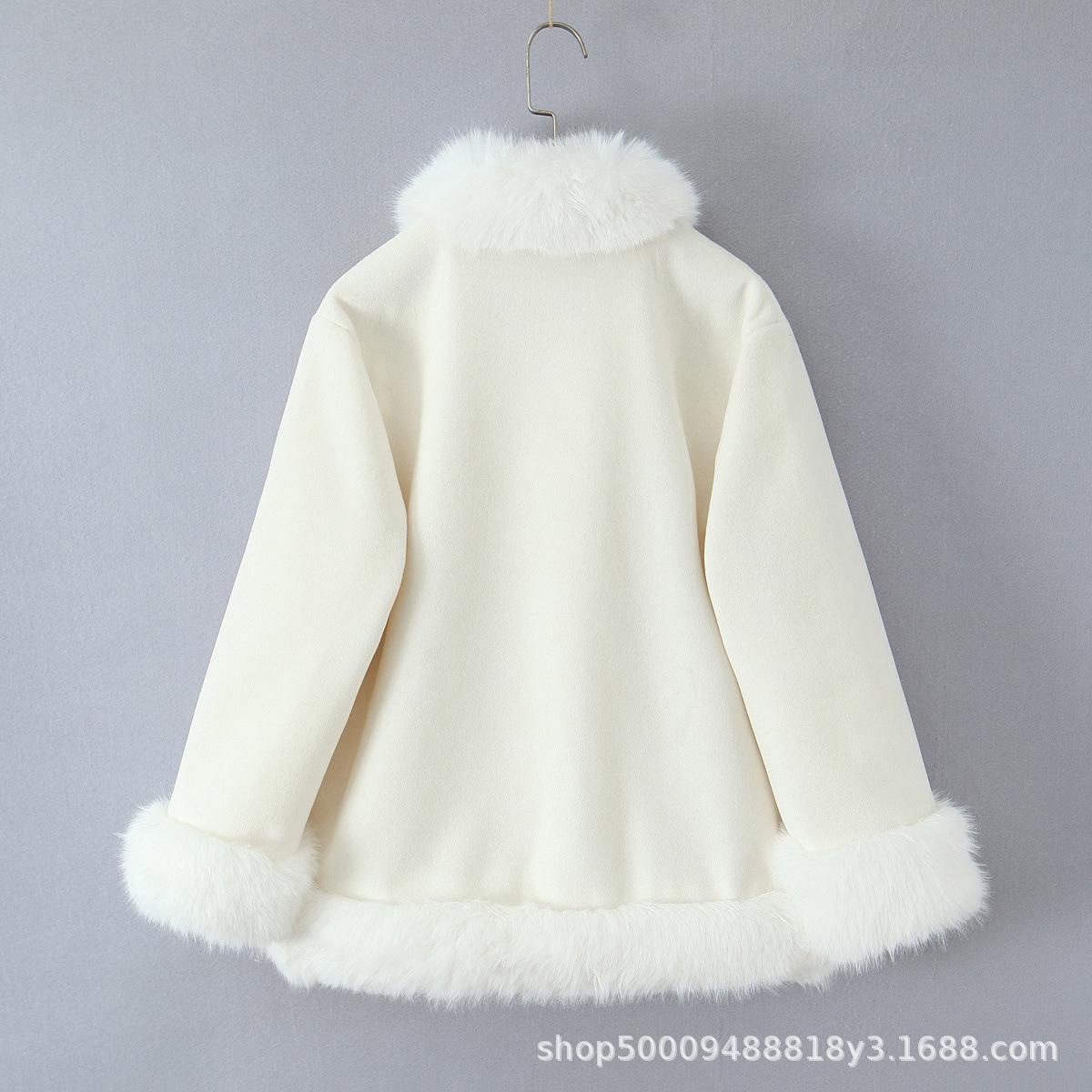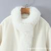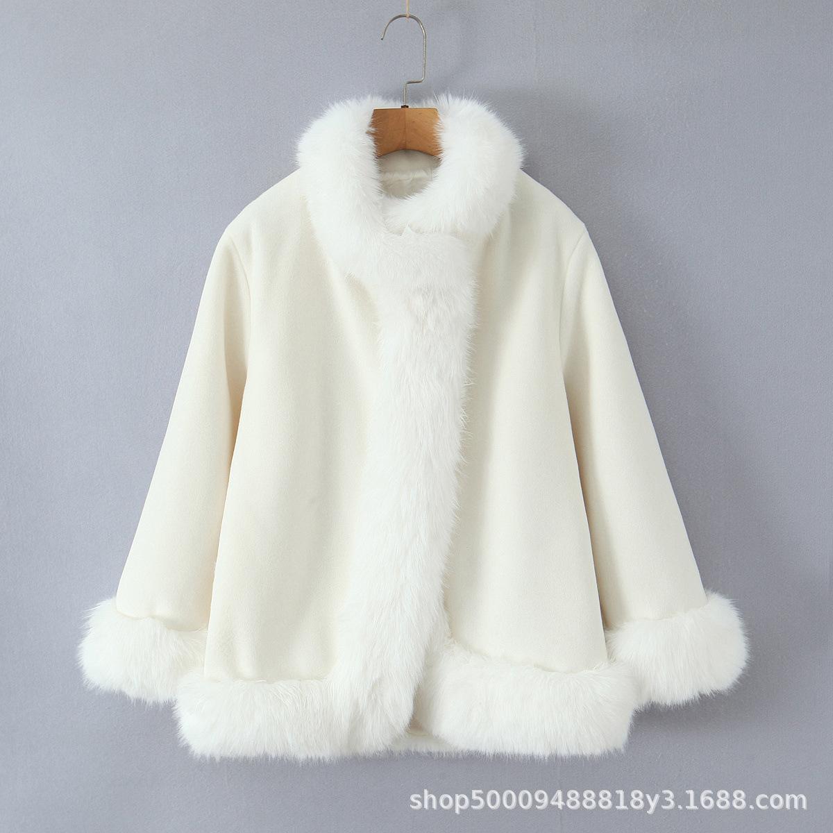Abrigo de lana de temperamento versátil con cuello de piel blanca de invierno para blogger de estilo europeo y americano nuevo transfronterizo 2025