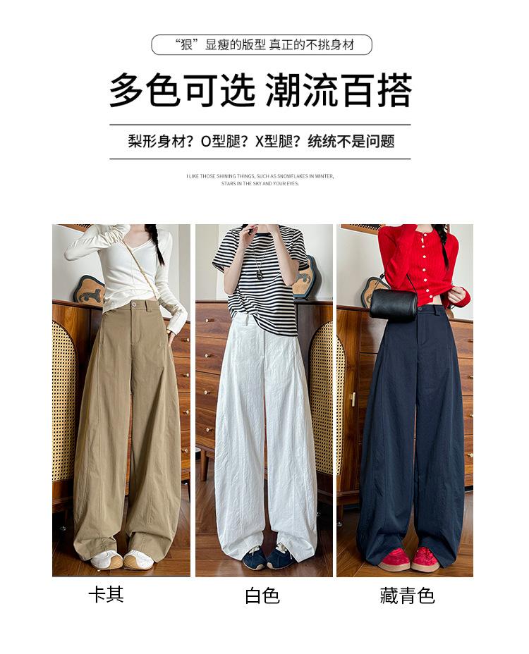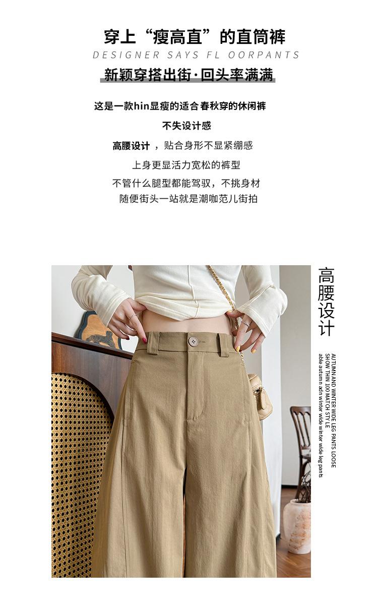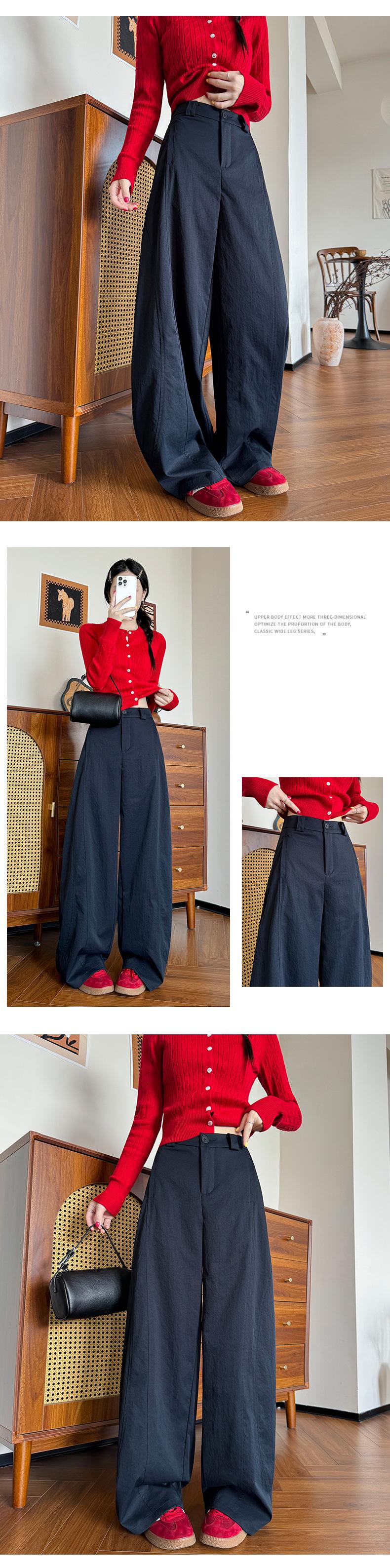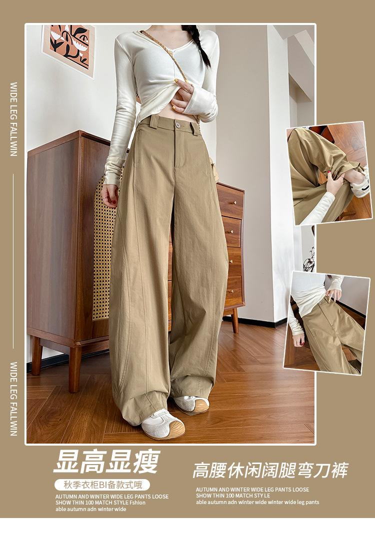 Pantalones cimitarra de pierna ancha de alta calidad para mujer, primavera y otoño, nuevos pantalones casuales con sentido del diseño slim, tiro alto, drapeado, pantalones de trabajo americanos