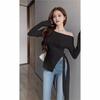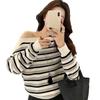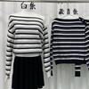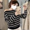 Conjunto de temperamento para mujer de rayas francesas con hombros descubiertos y manga larga, de alta gama para principios de otoño, estilo de pequeña fragancia, suéter corto de punto