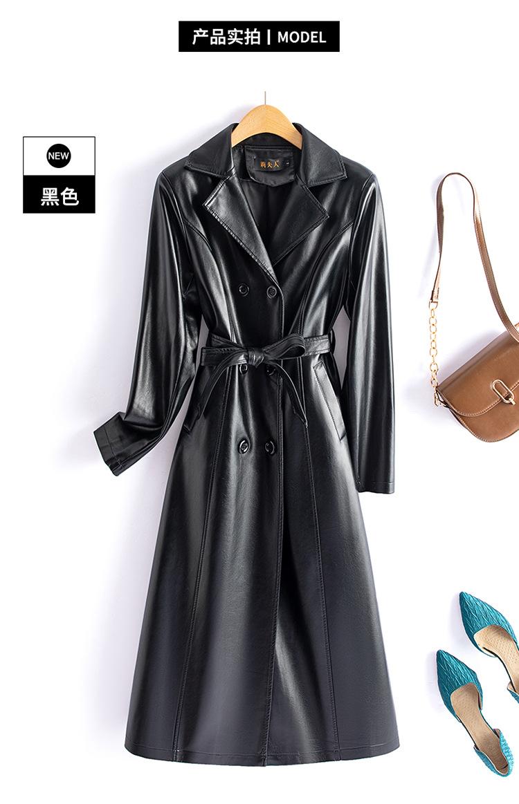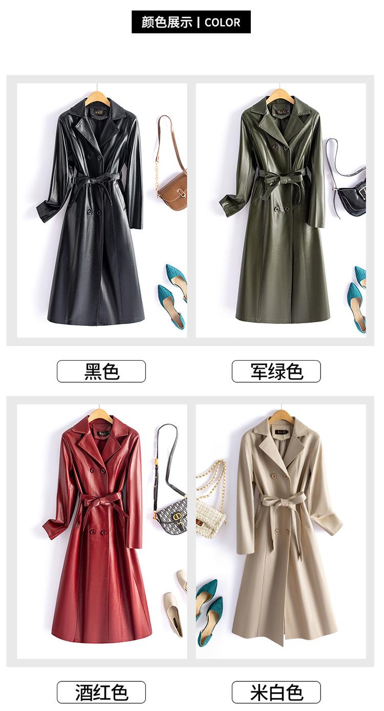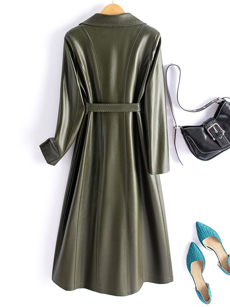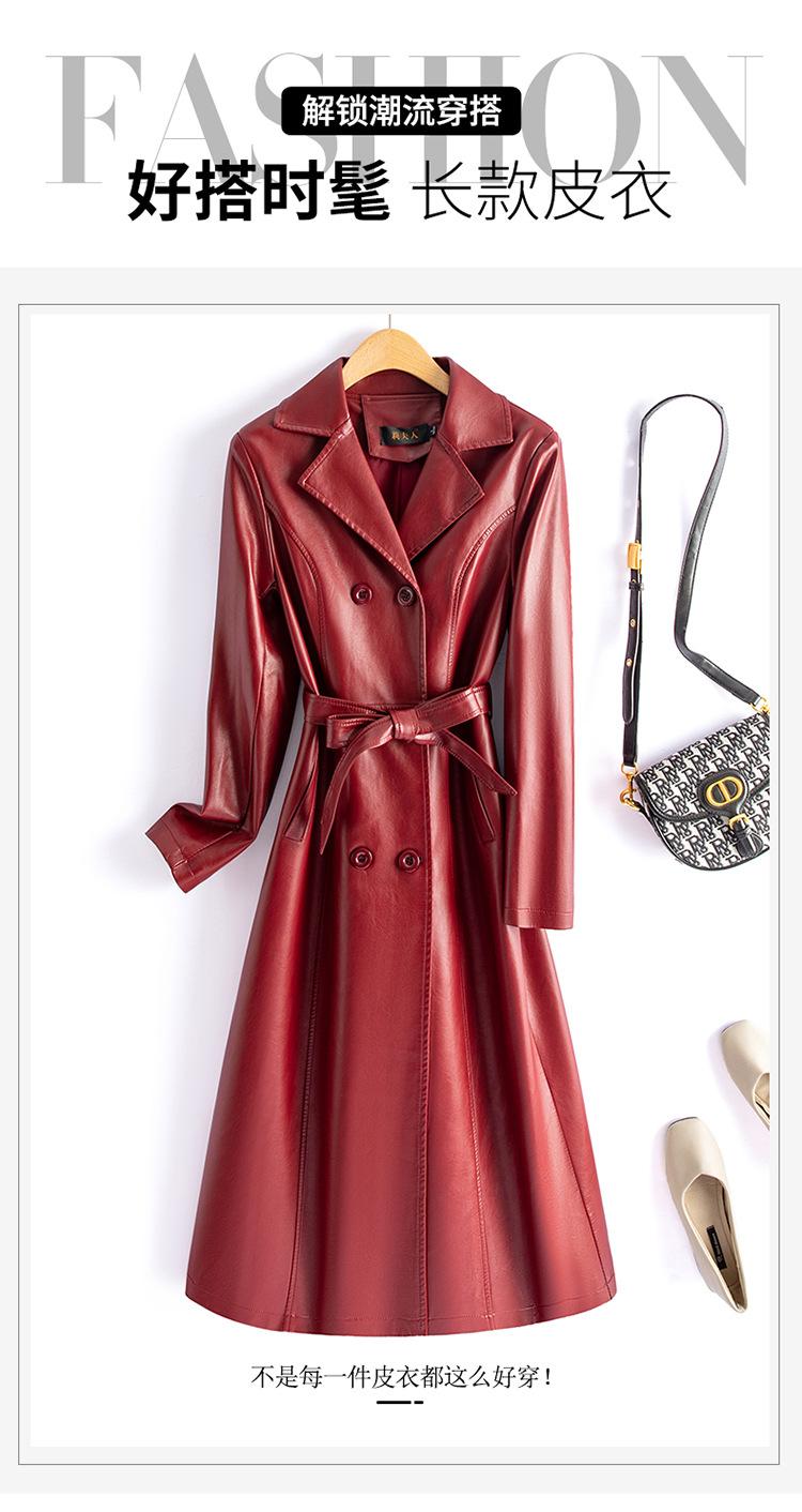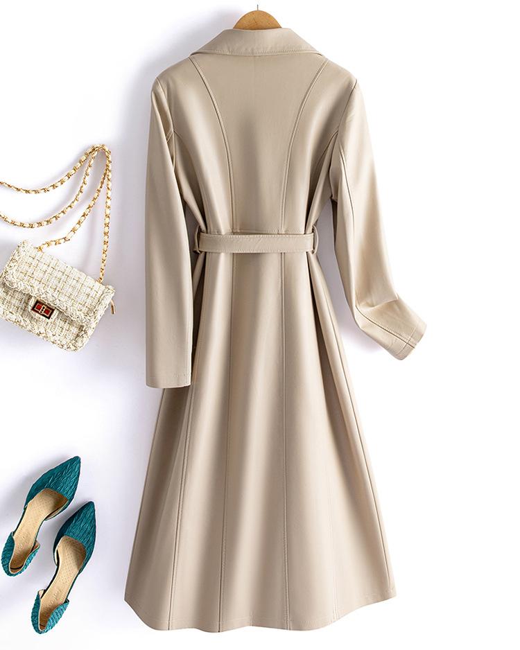 Haining Cuero Genuino Chaqueta de Cuero para Mujer Largo Medio Sobre la Rodilla 2024 Primavera y Otoño Nuevo Estilo Coreano Ajustado Abrigo Trench de Piel de Oveja Abrigo Exterior Marea