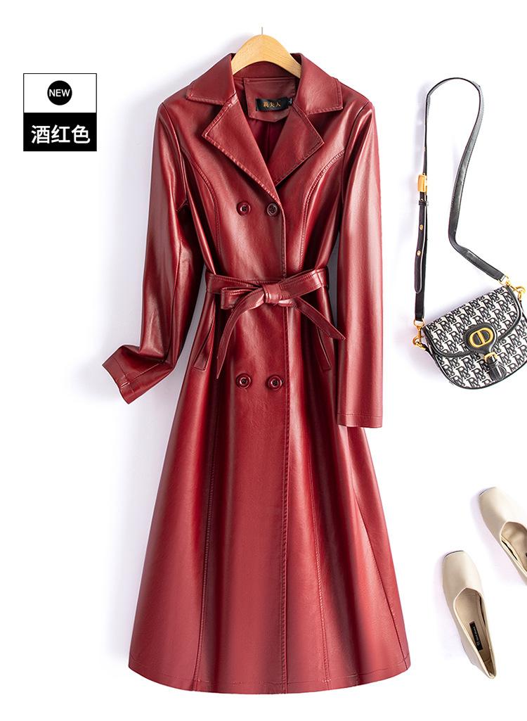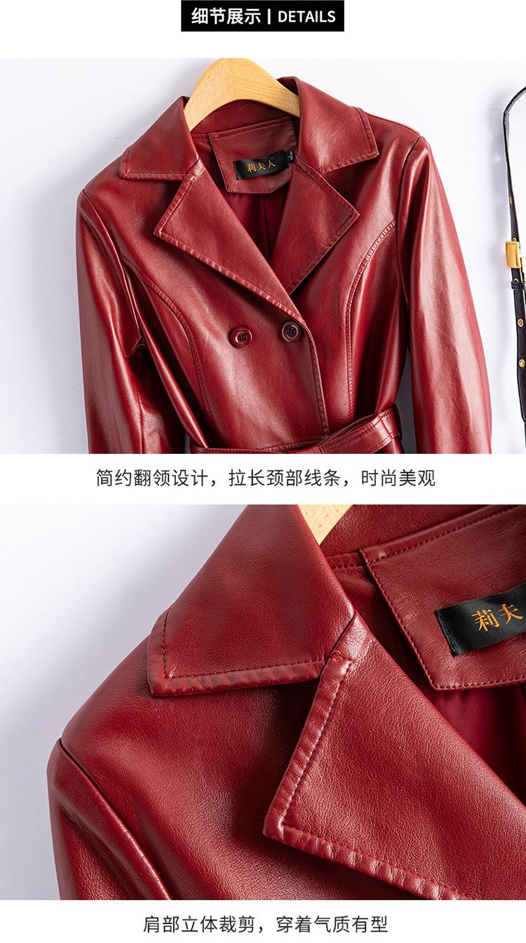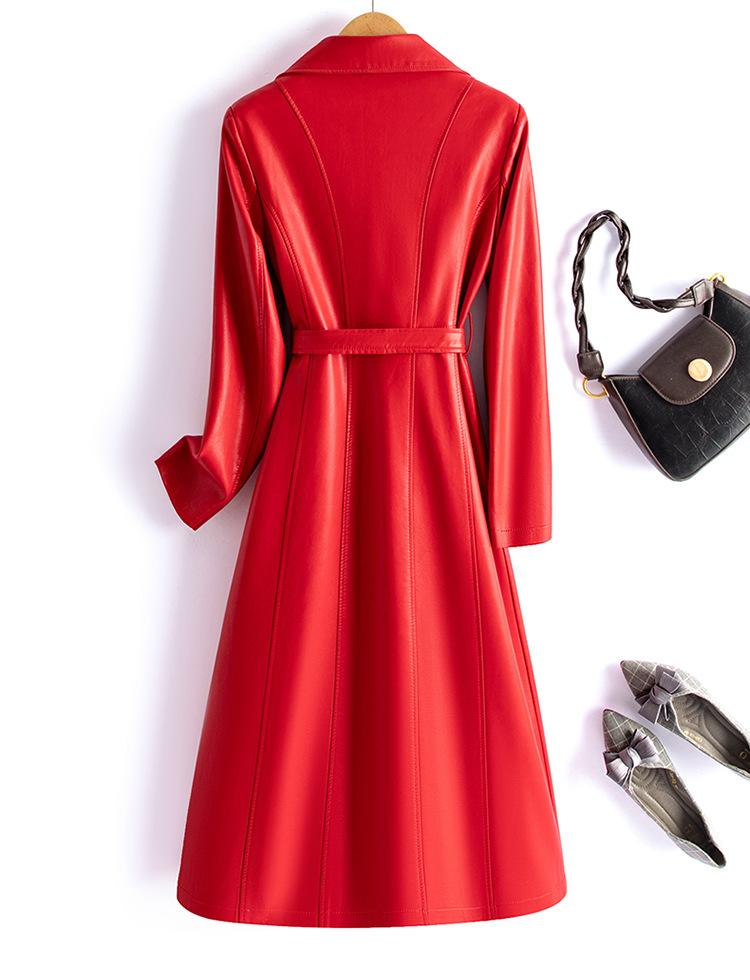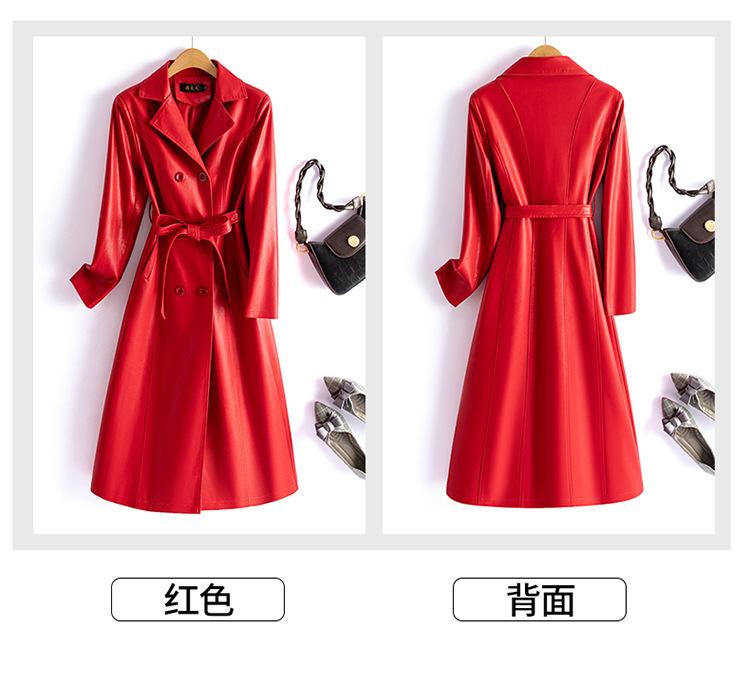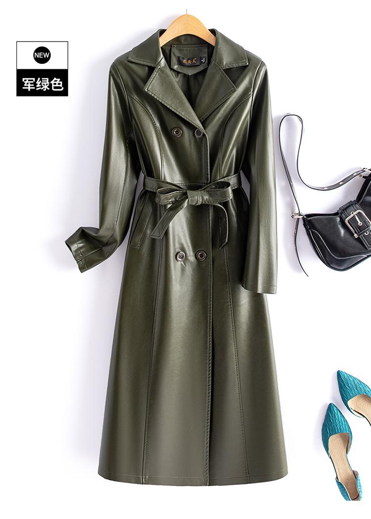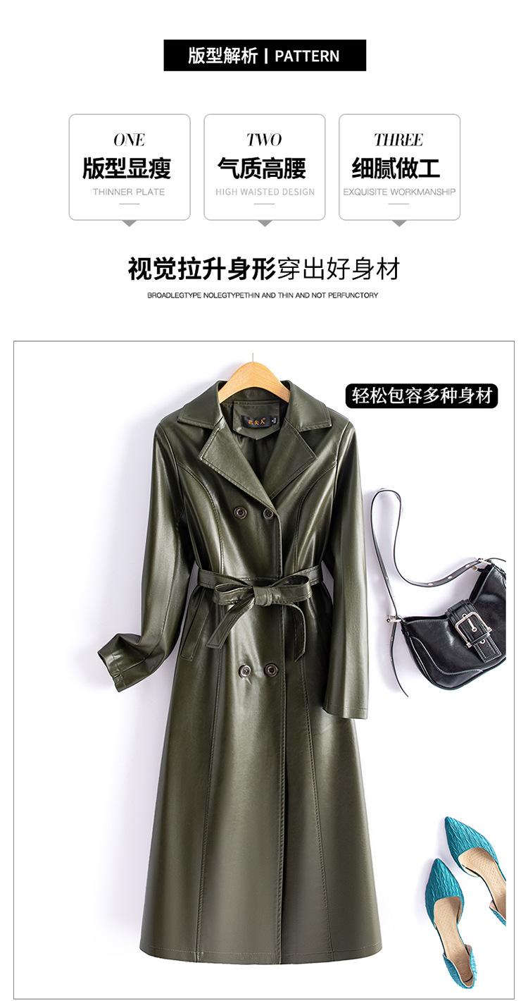 Haining Cuero Genuino Chaqueta de Cuero para Mujer Largo Medio Sobre la Rodilla 2024 Primavera y Otoño Nuevo Estilo Coreano Ajustado Abrigo Trench de Piel de Oveja Abrigo Exterior Marea