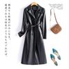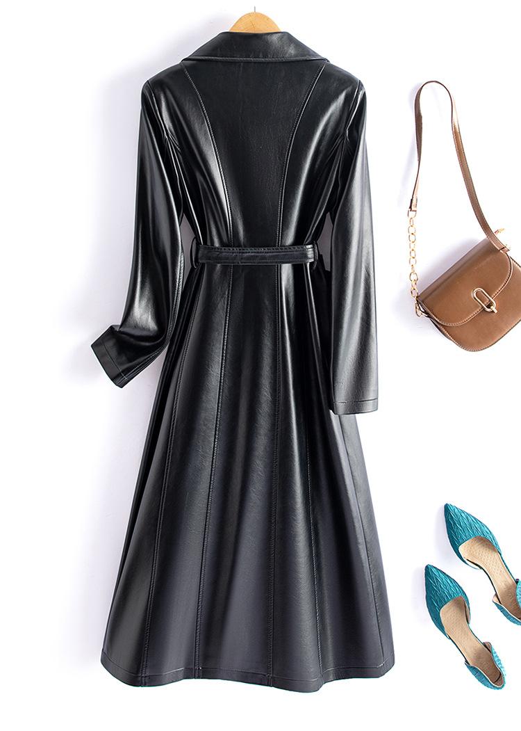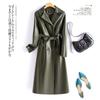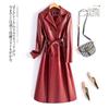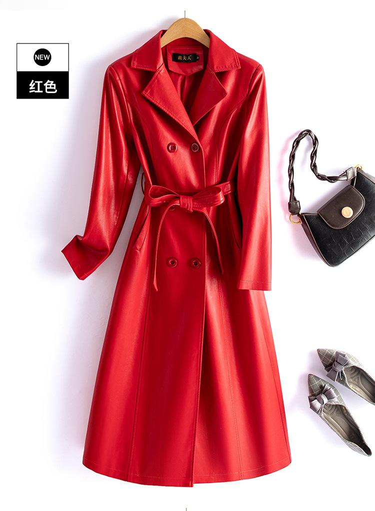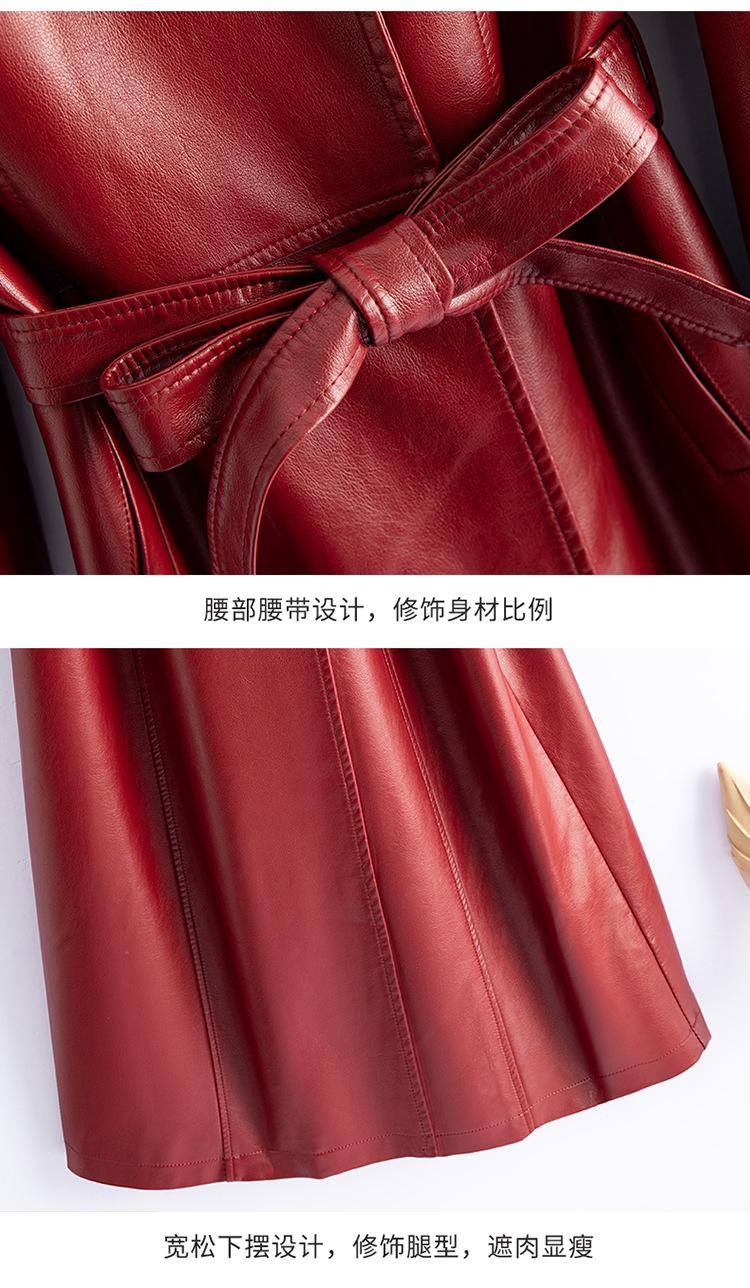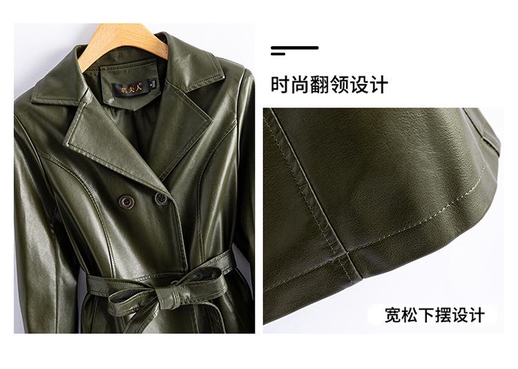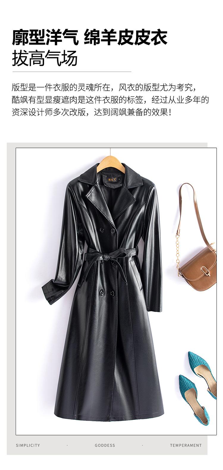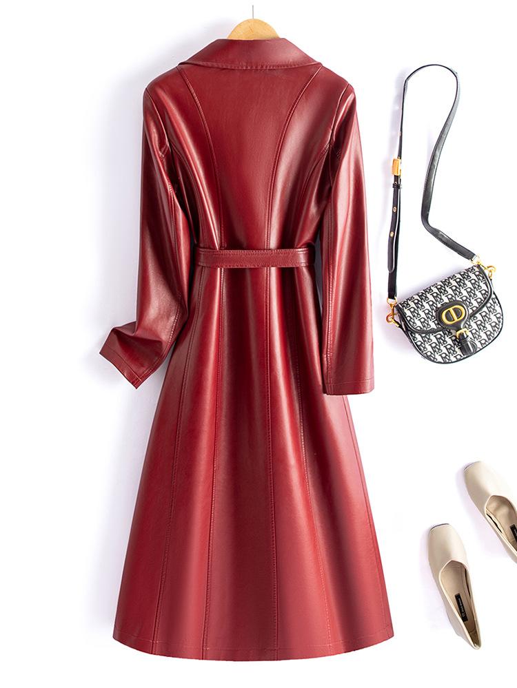 Haining Cuero Genuino Chaqueta de Cuero para Mujer Largo Medio Sobre la Rodilla 2024 Primavera y Otoño Nuevo Estilo Coreano Ajustado Abrigo Trench de Piel de Oveja Abrigo Exterior Marea