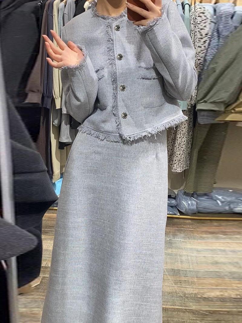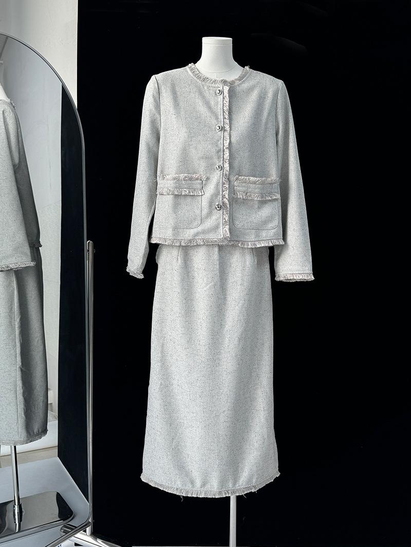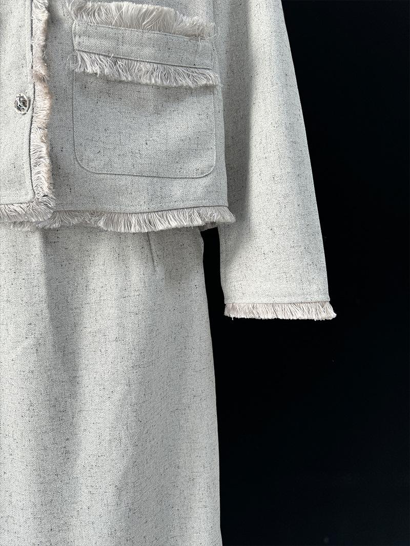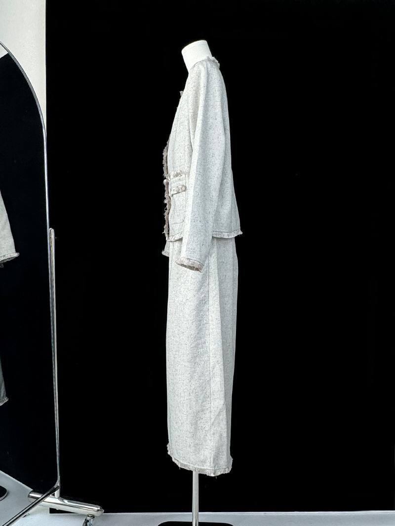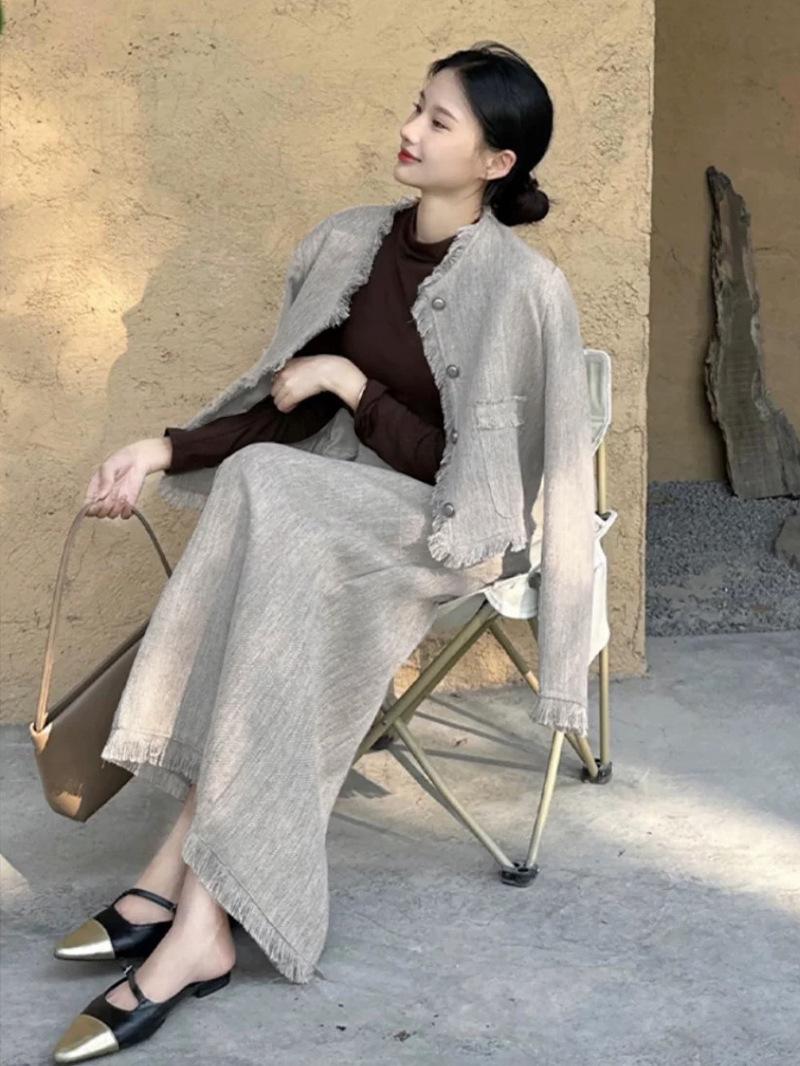 Entrada Francesa Lujo Retro Estilo Perezoso Borla Encaje Estilo Chanel Abrigo Cintura Alta Falda Línea A Conjunto de Dos Piezas Traje