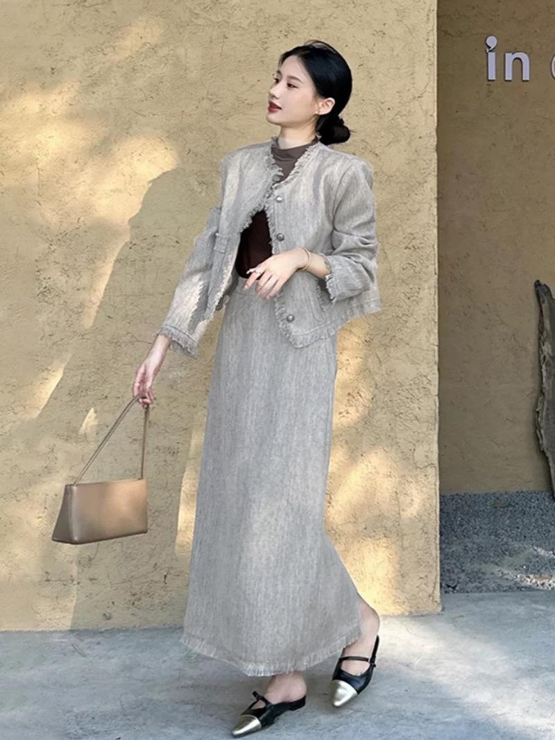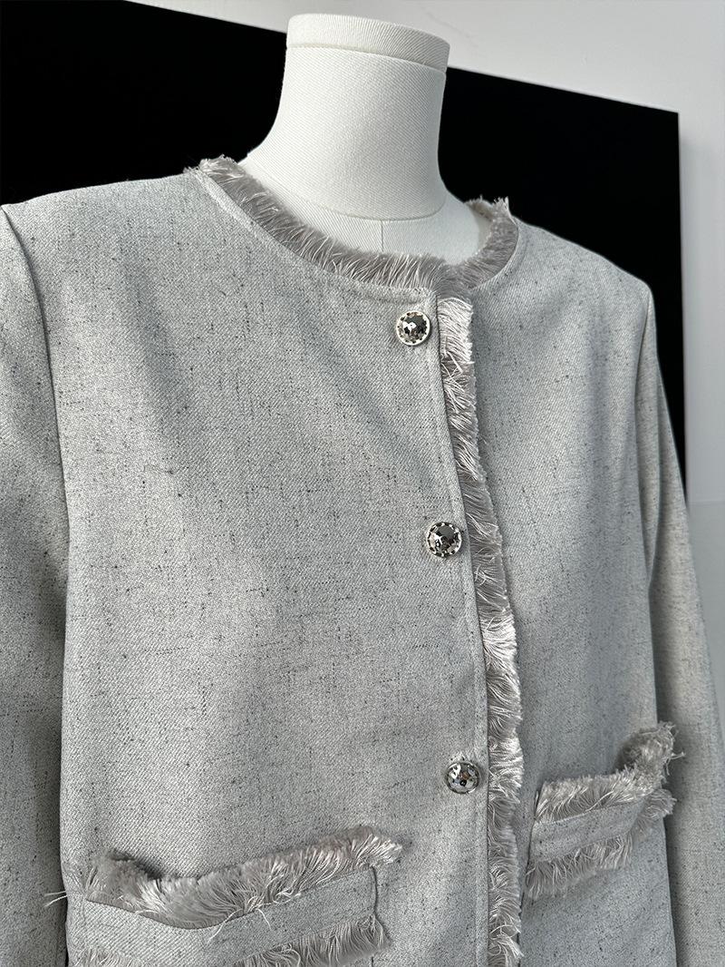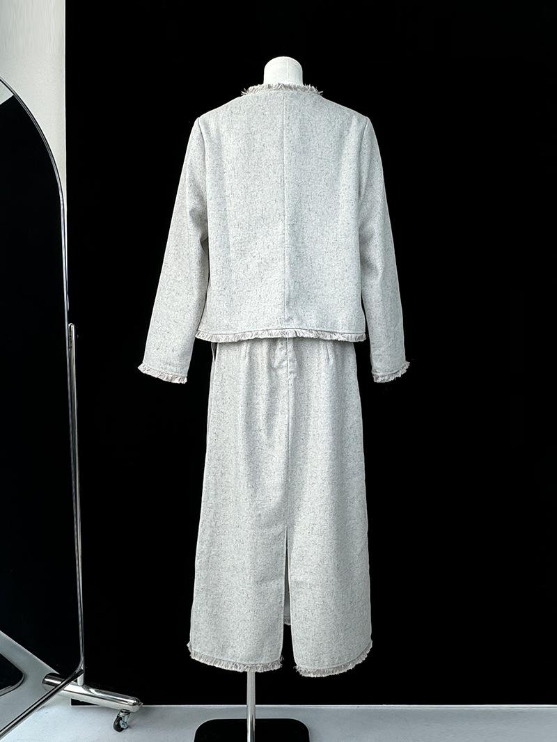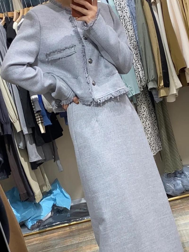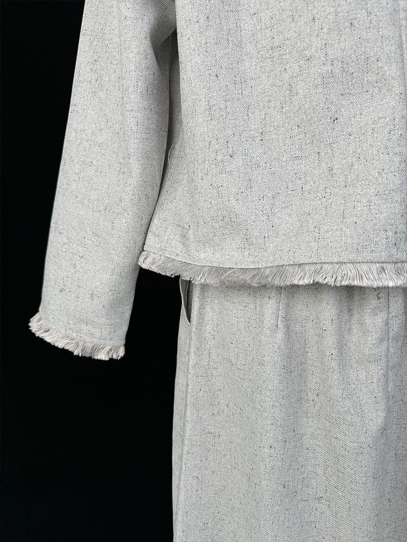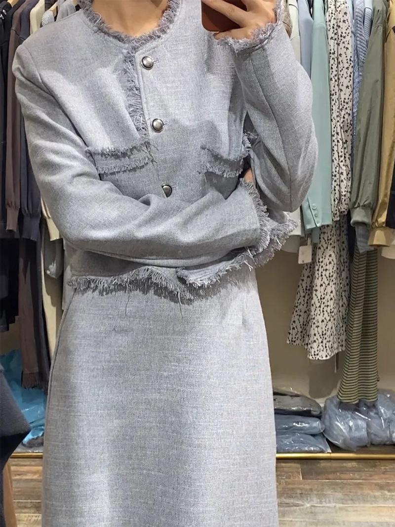 Entrada Francesa Lujo Retro Estilo Perezoso Borla Encaje Estilo Chanel Abrigo Cintura Alta Falda Línea A Conjunto de Dos Piezas Traje