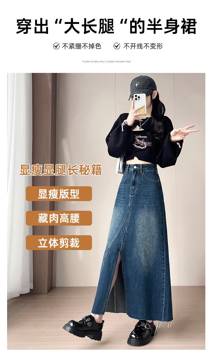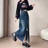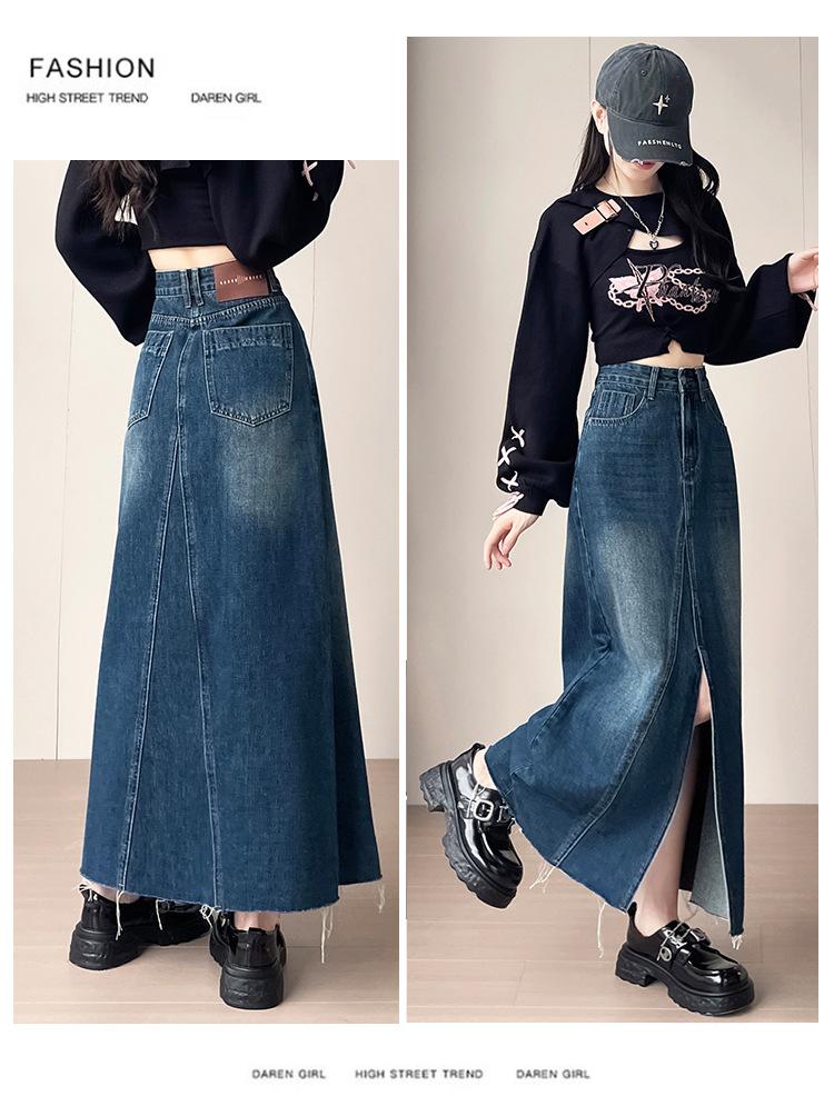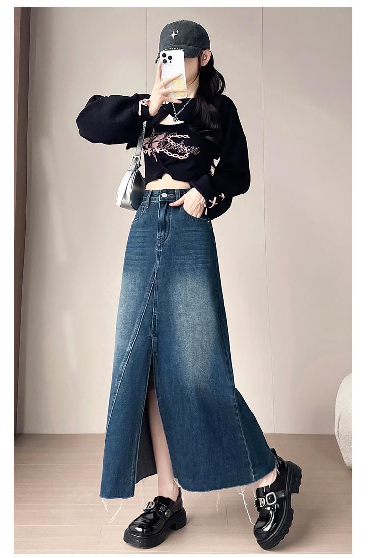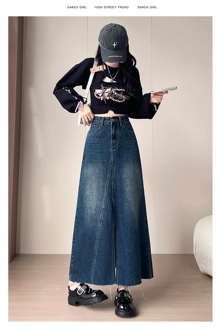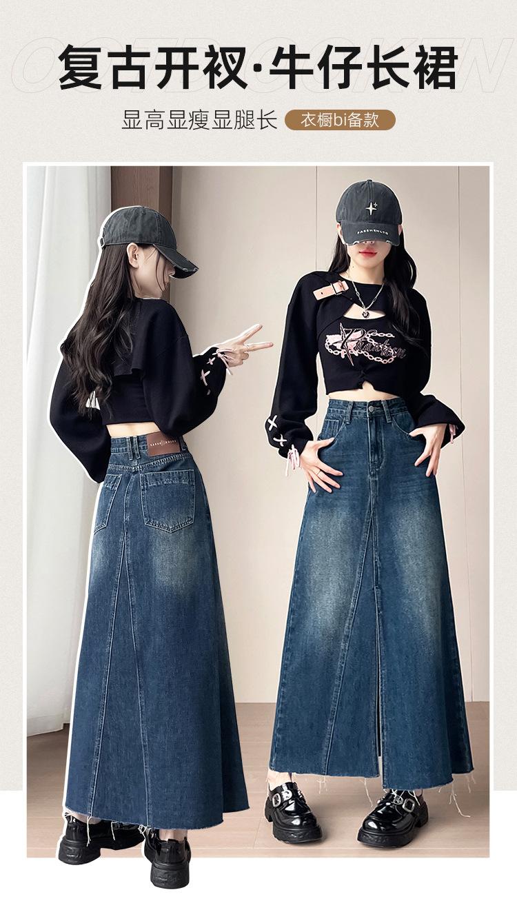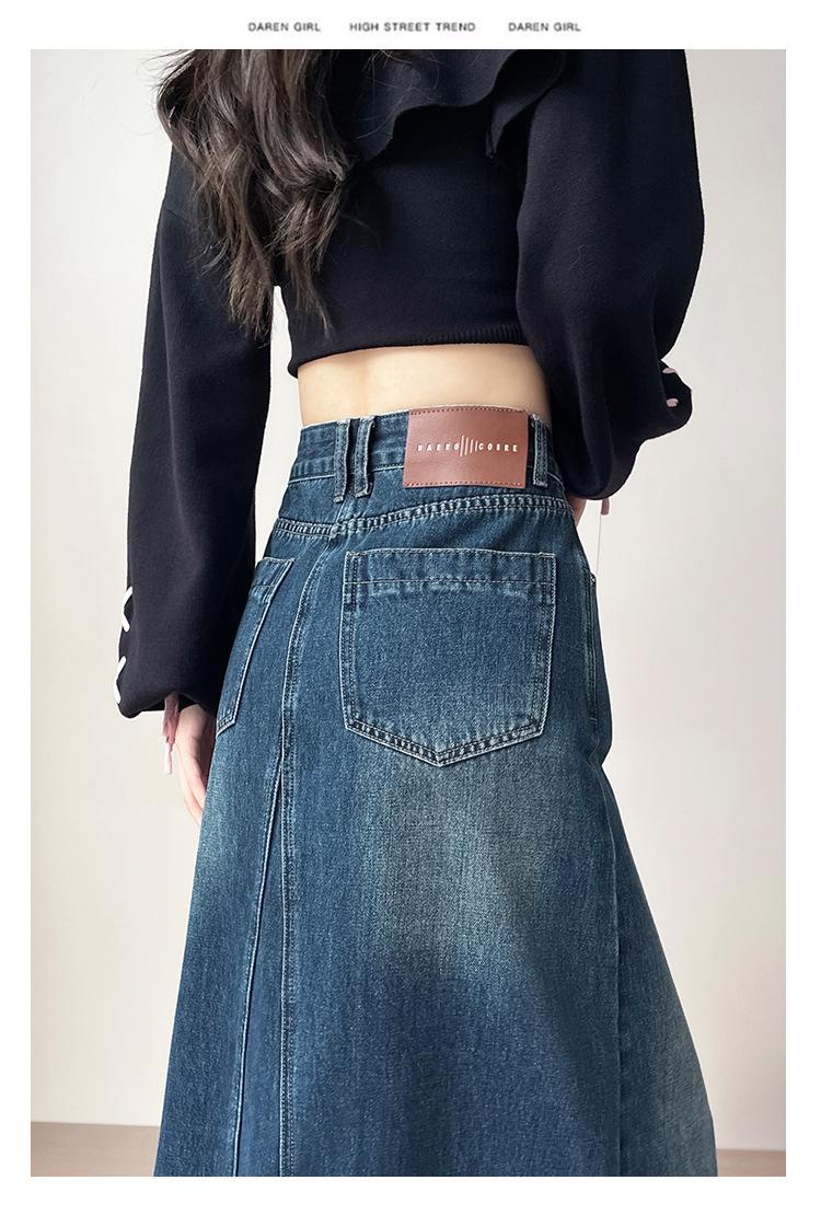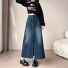 Falda Midi de Mezclilla con Abertura para Mujer Otoño Nueva Diseño Adelgazante de Cintura Alta Cubre Caderas Línea A Retro Ajustada Largo Medio
