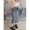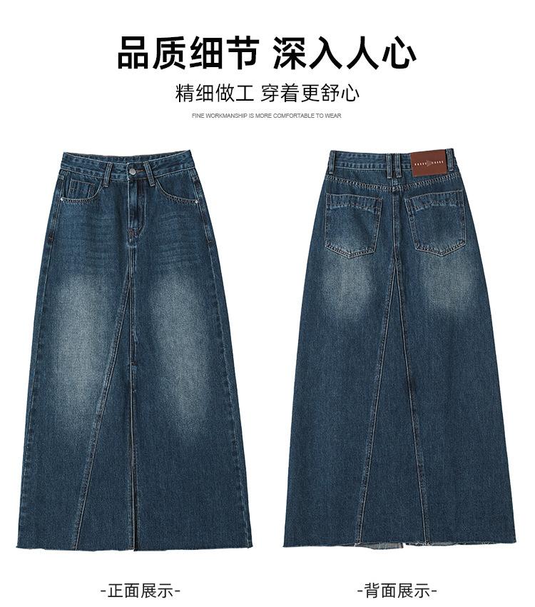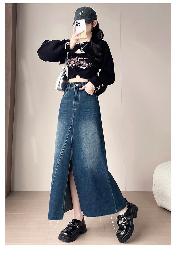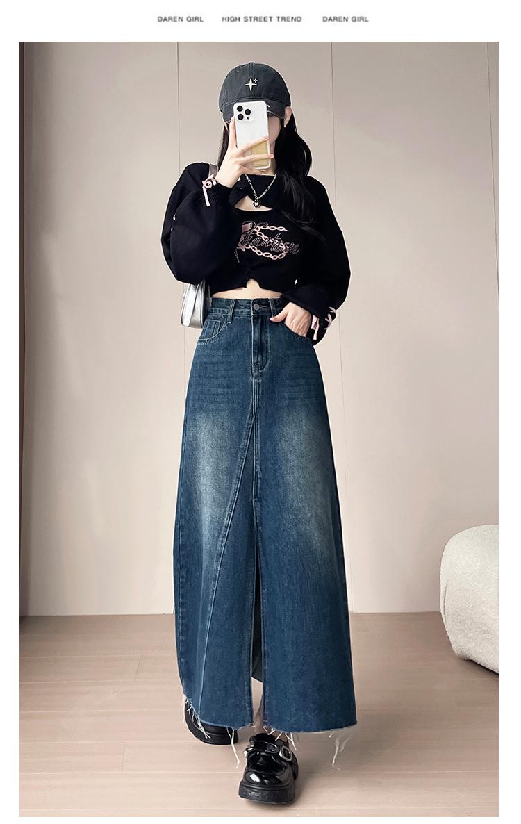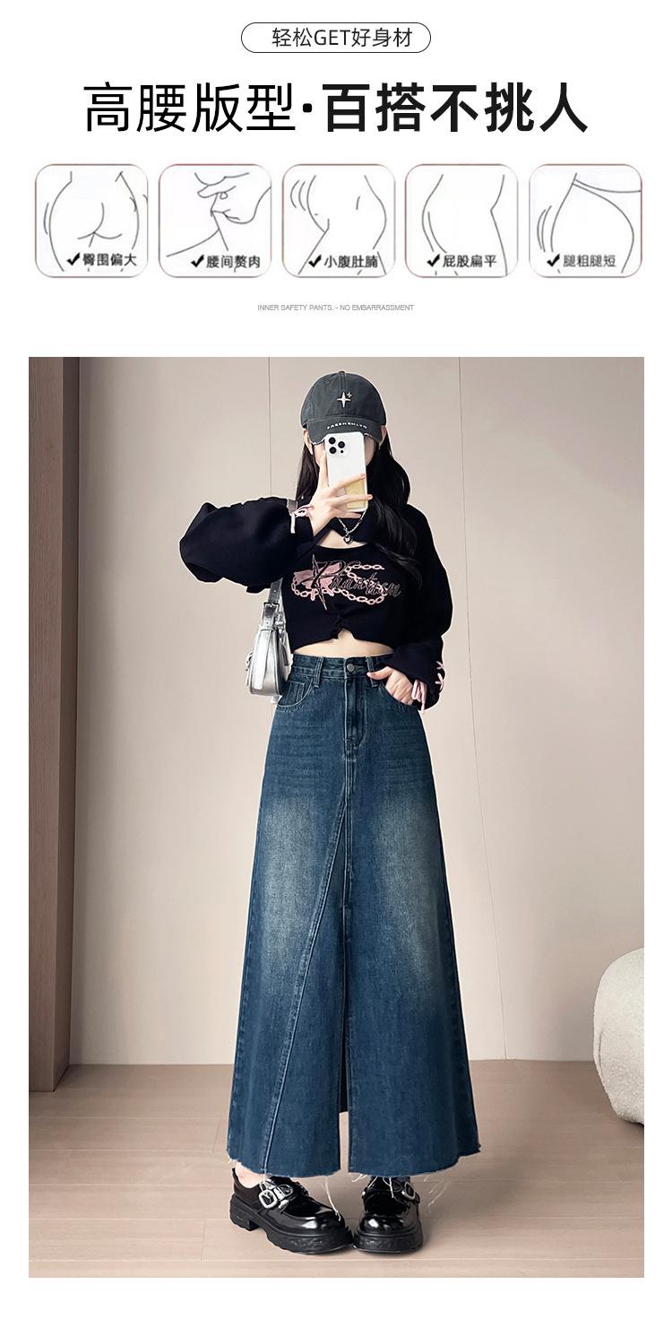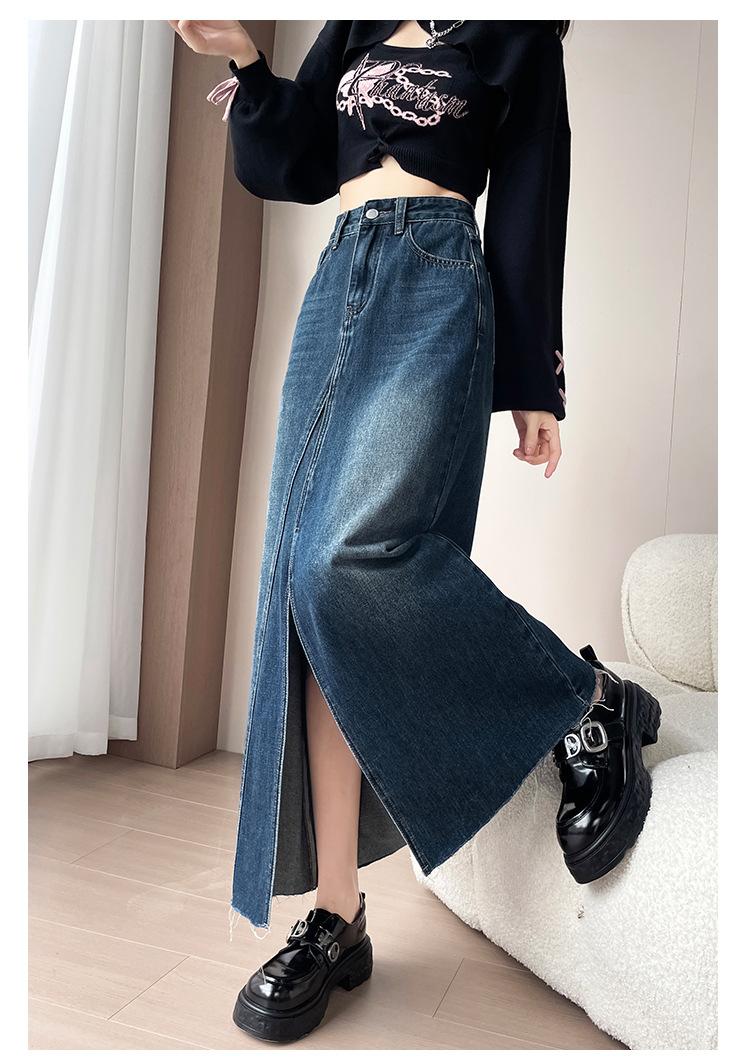 Falda Midi de Mezclilla con Abertura para Mujer Otoño Nueva Diseño Adelgazante de Cintura Alta Cubre Caderas Línea A Retro Ajustada Largo Medio