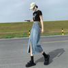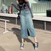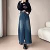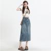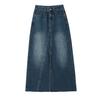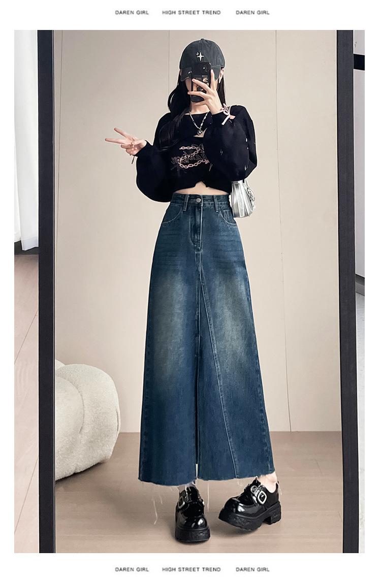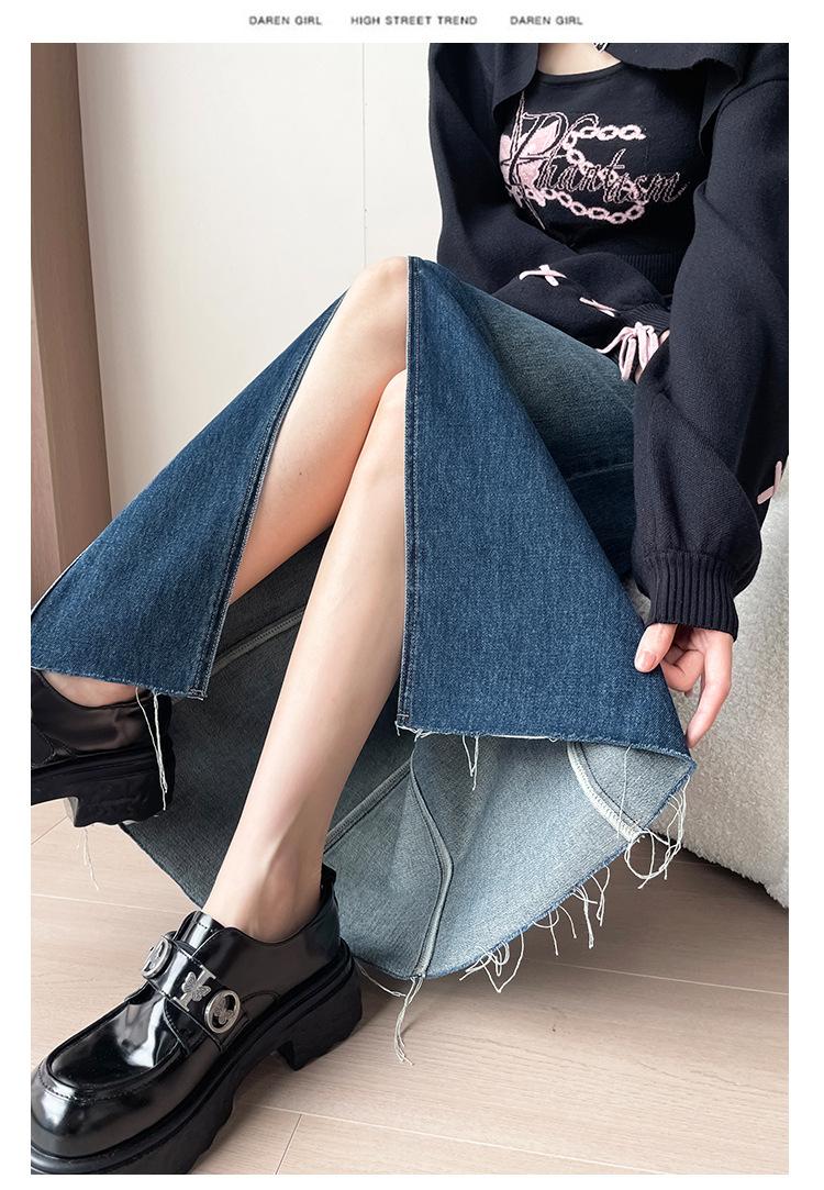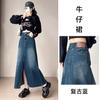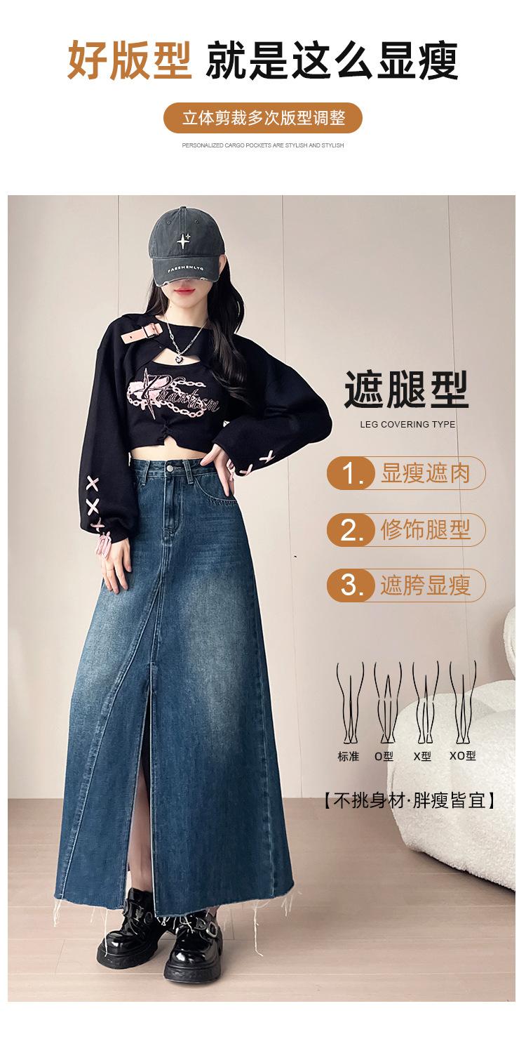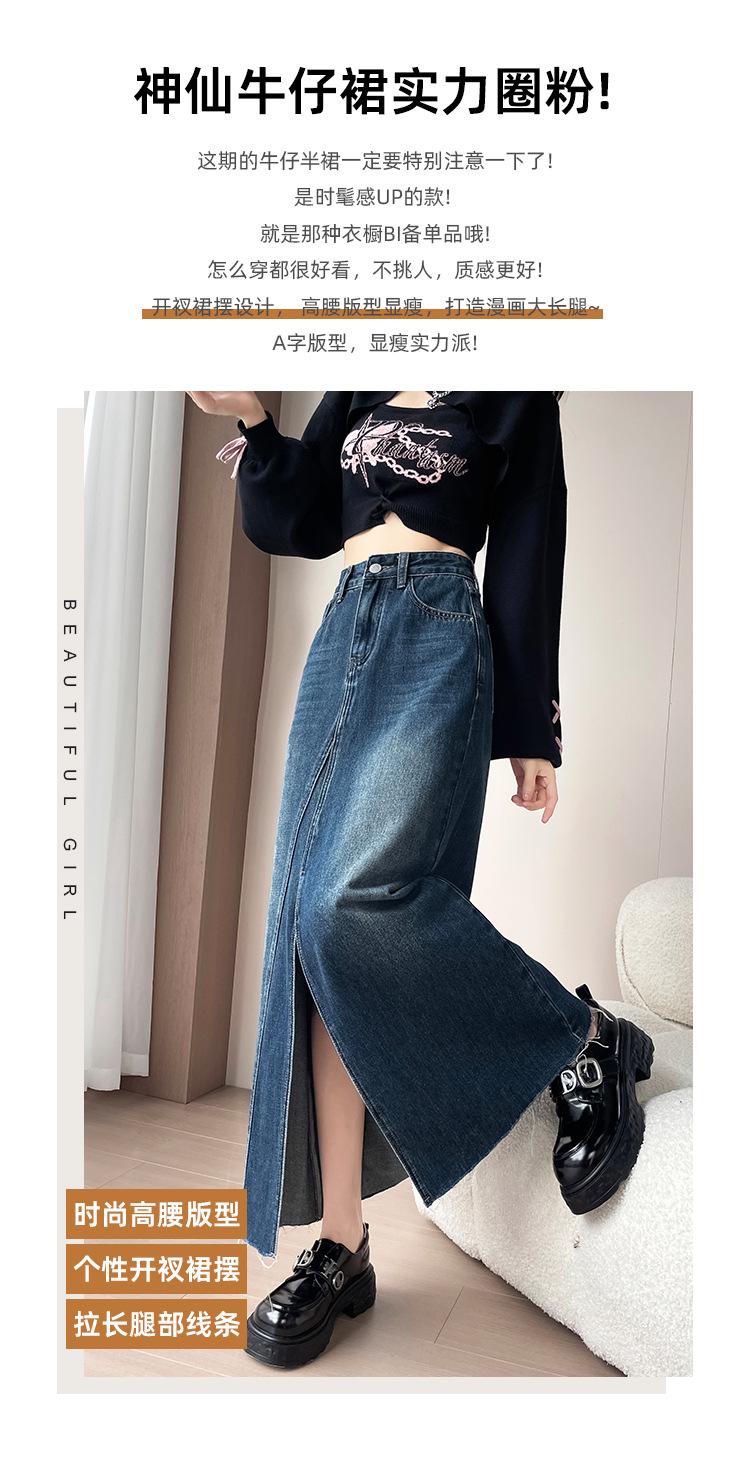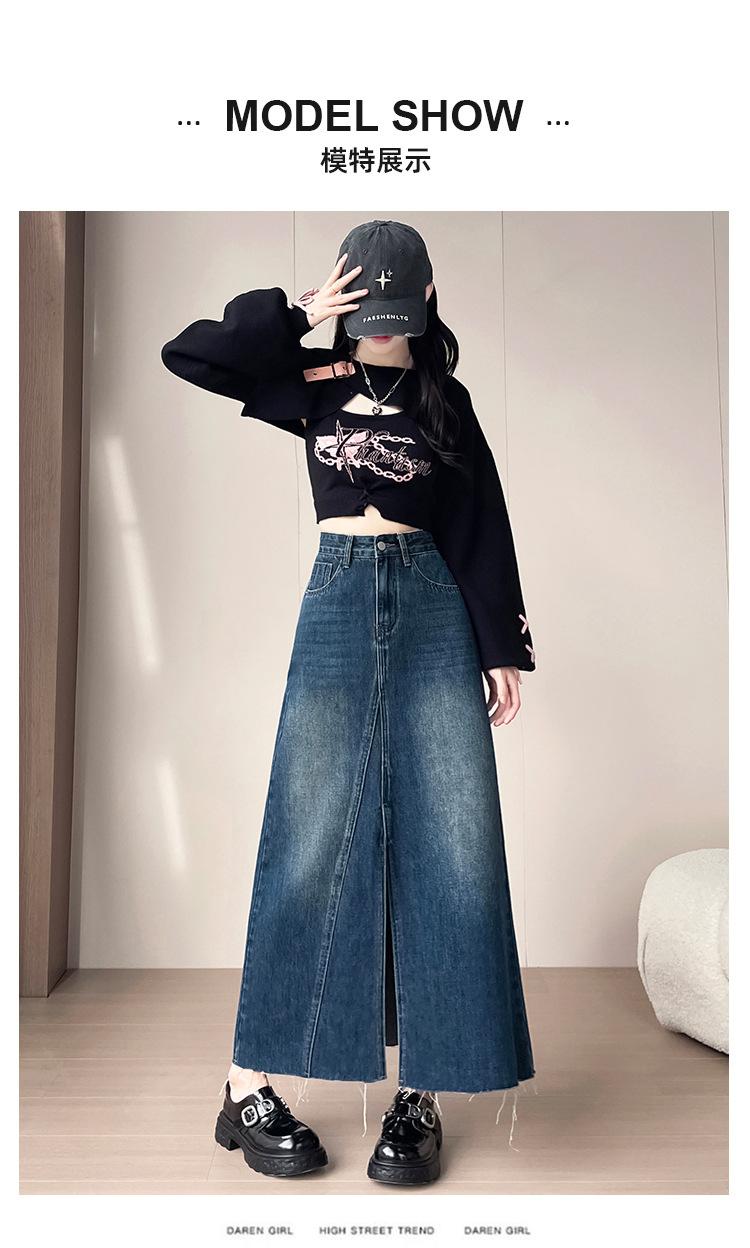 Falda Midi de Mezclilla con Abertura para Mujer Otoño Nueva Diseño Adelgazante de Cintura Alta Cubre Caderas Línea A Retro Ajustada Largo Medio