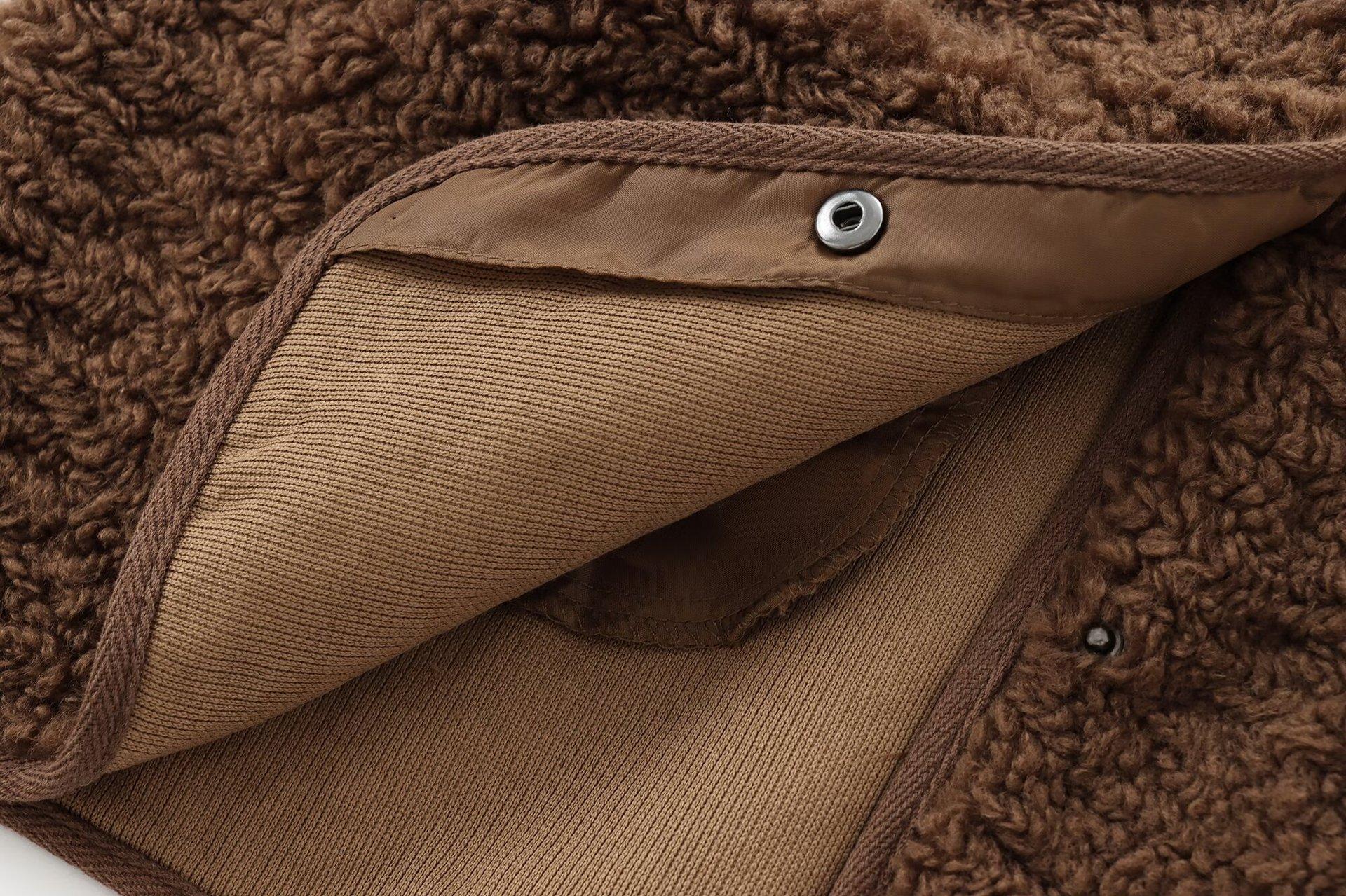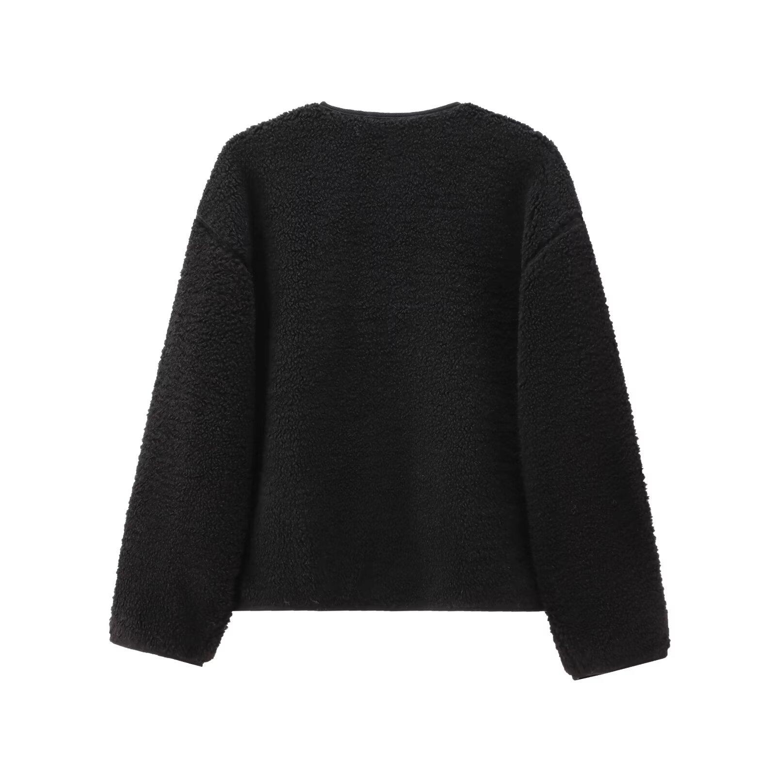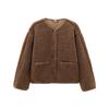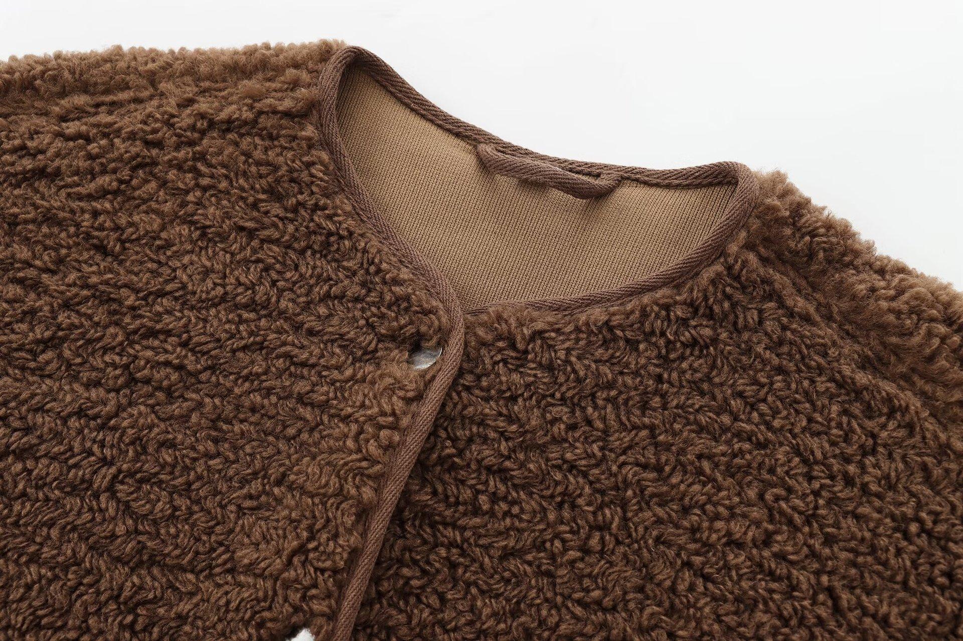 Amazon Transfronterizo para Mujer 2024 Otoño Nuevo Cuello Redondo Color Sólido Sencillo Chaqueta Abrigo de Terciopelo Teddy 1228915
