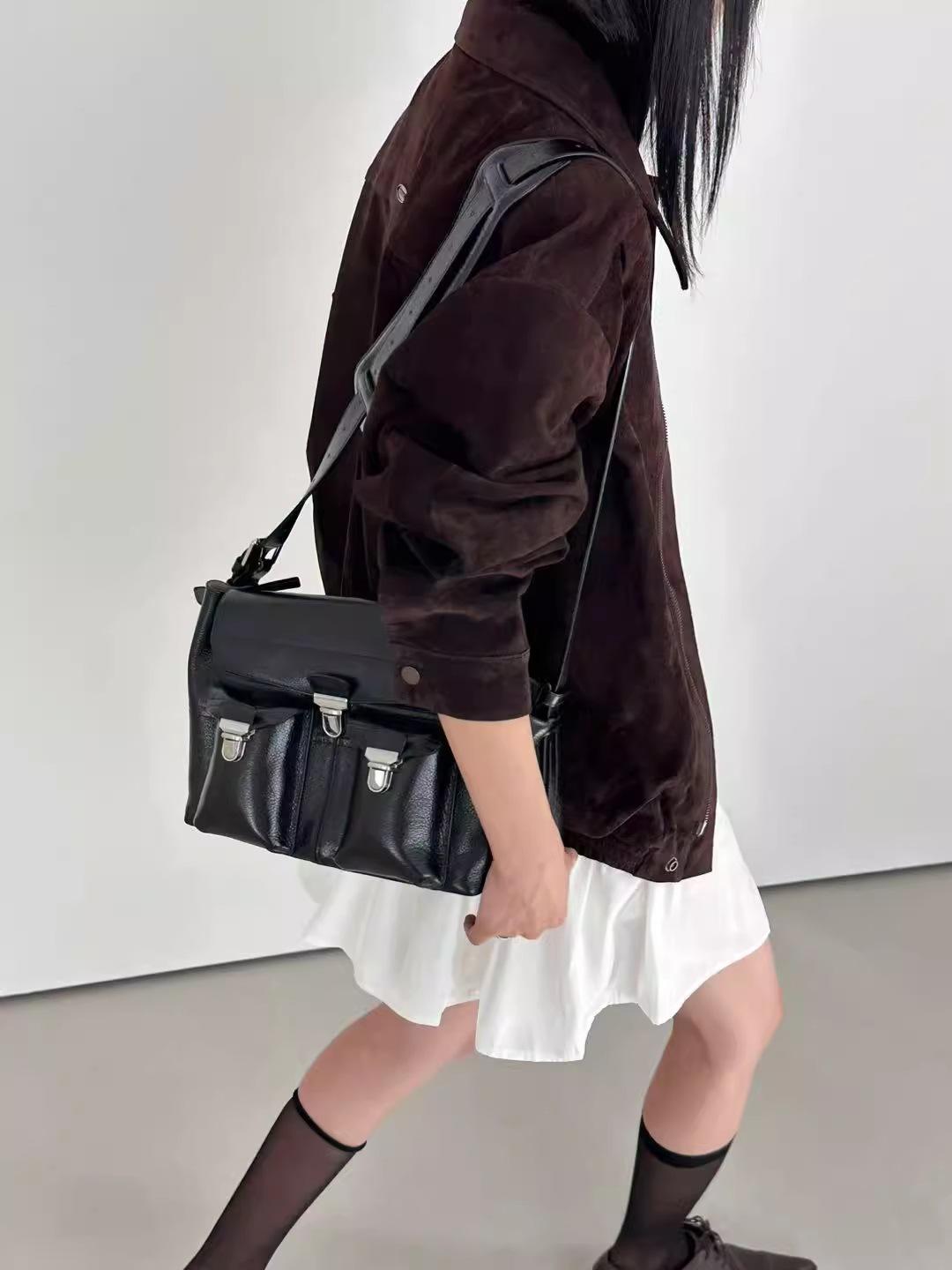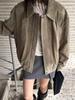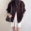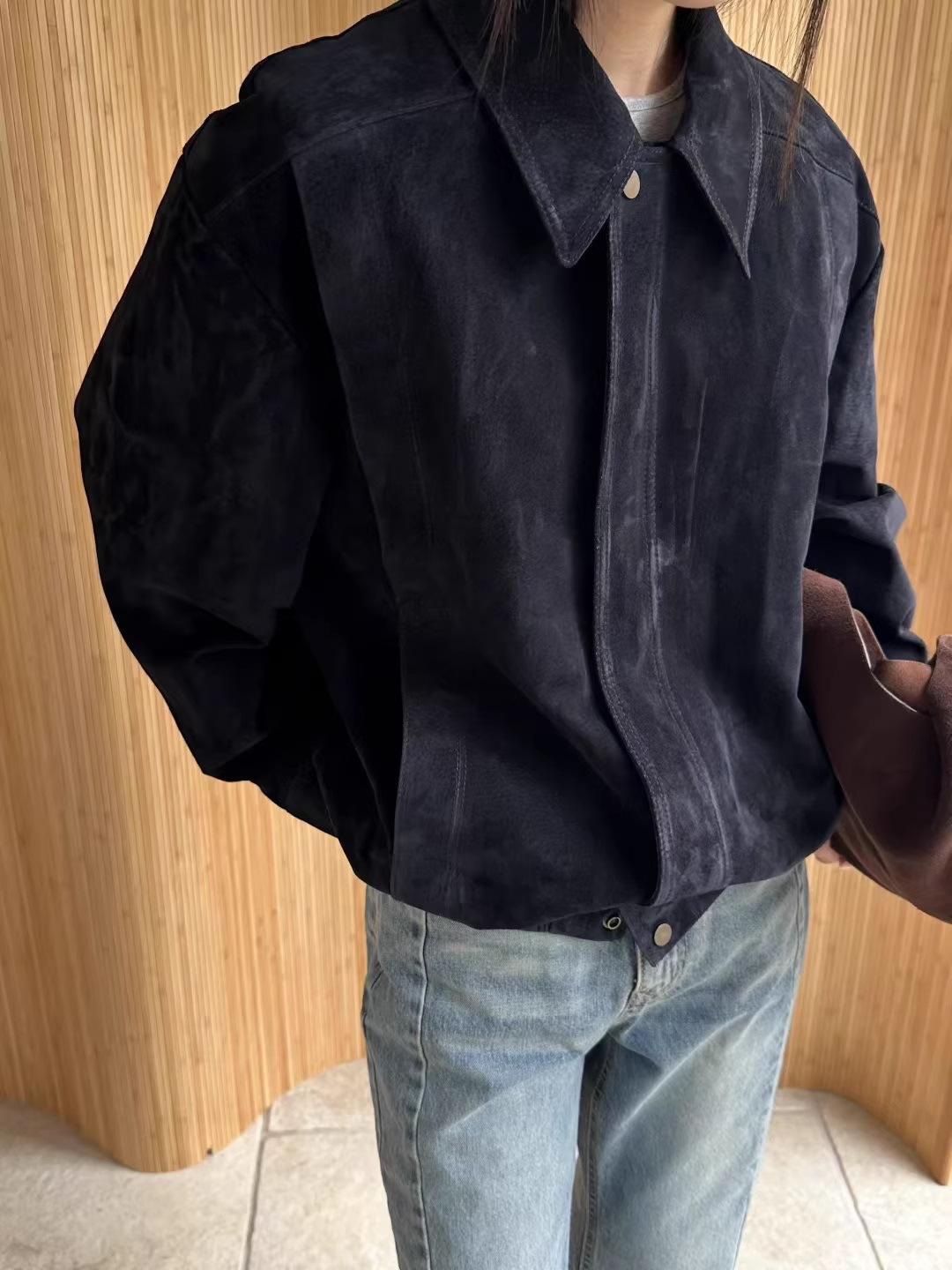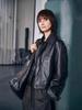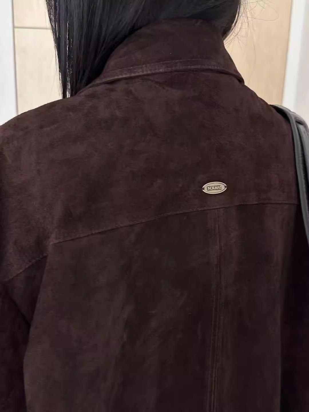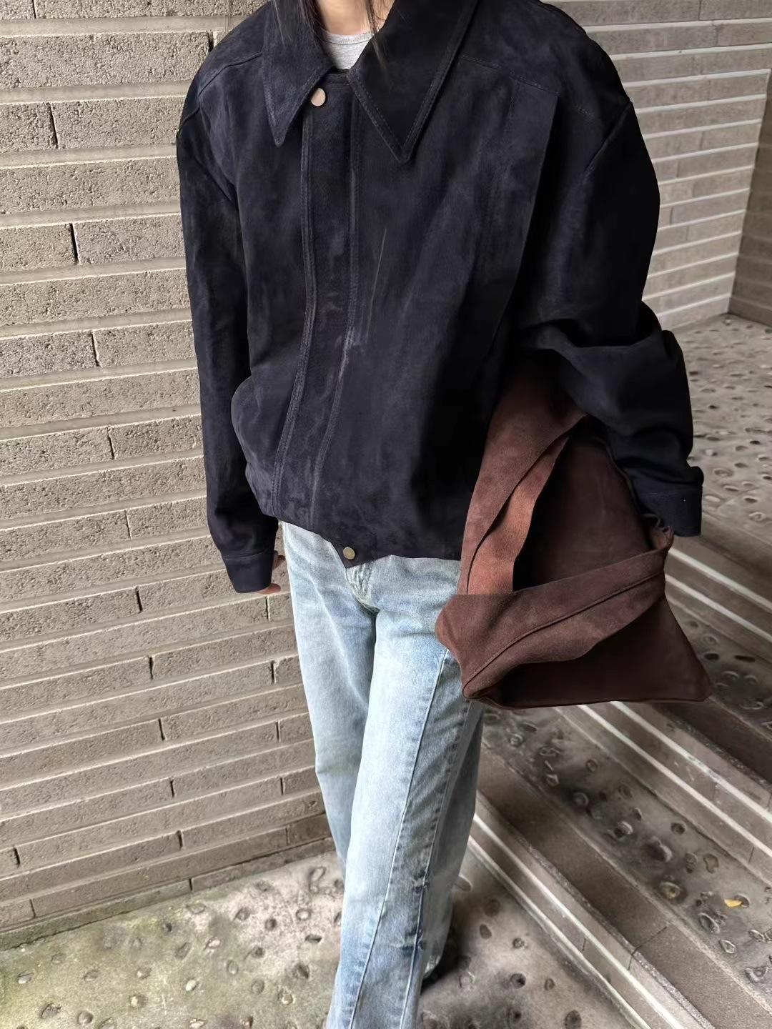 Chaqueta de Cuero Gamuza Raw C con Solapa y Cierre para Mujer 2025 Otoño Vintage Color Sólido Holgada Casual Top norm*l