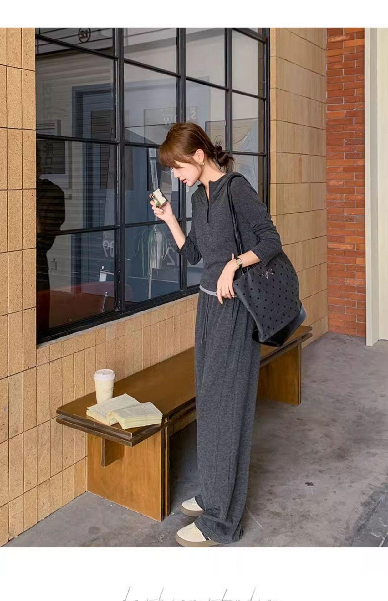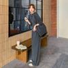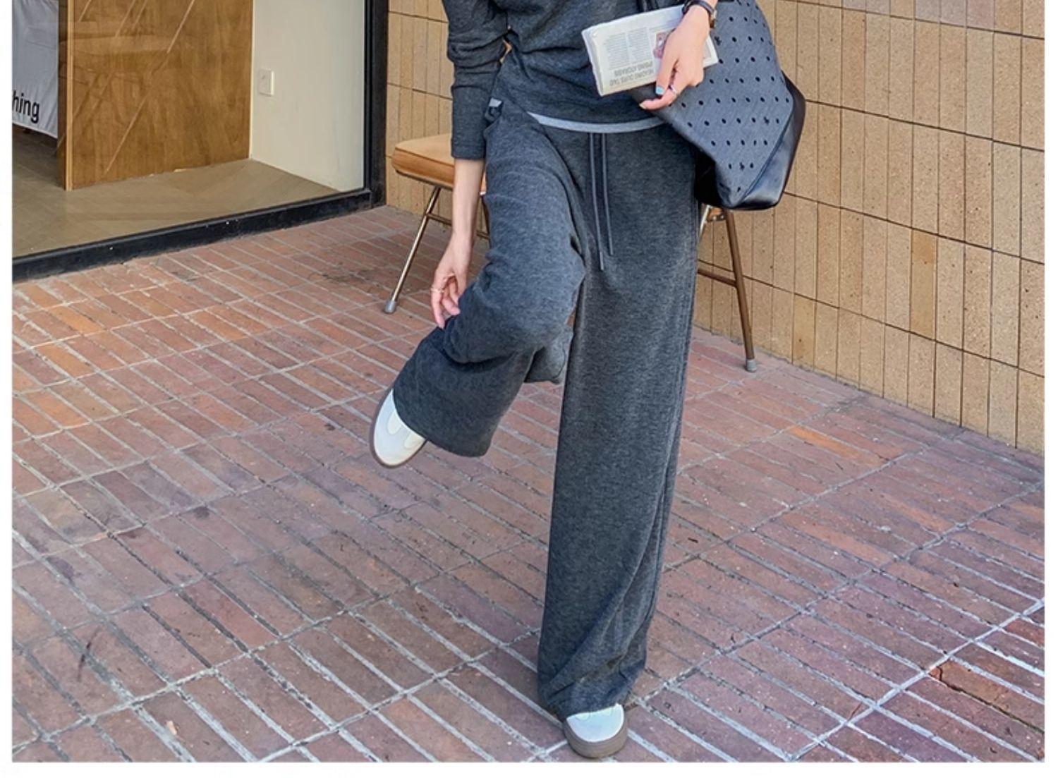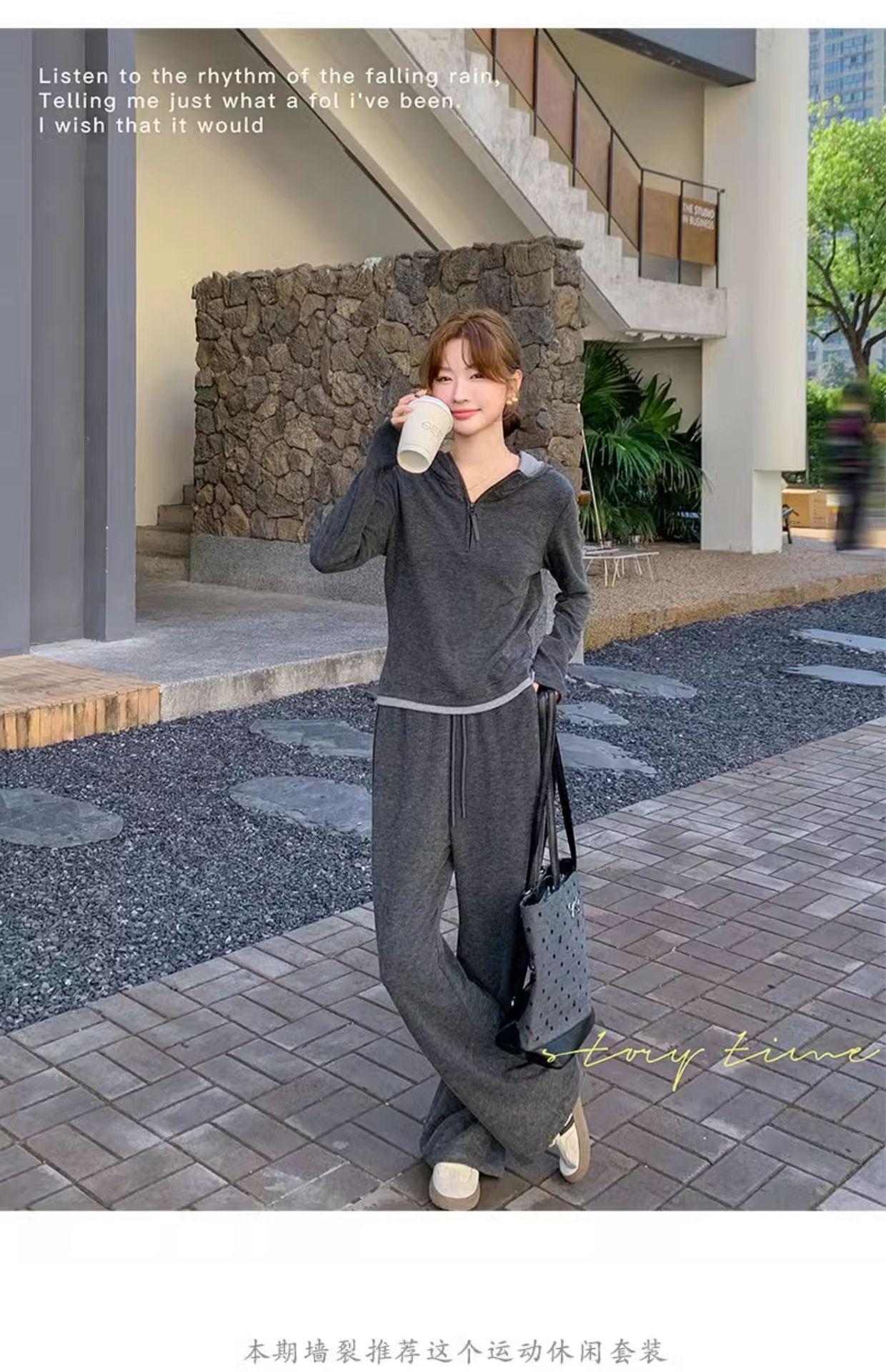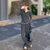 Conjunto de Pantalón de Manga Larga de Celebridad de Internet Primavera y Otoño 2025 Algodón Estampado de Letras Cuello Redondo Moda Casual Urbana