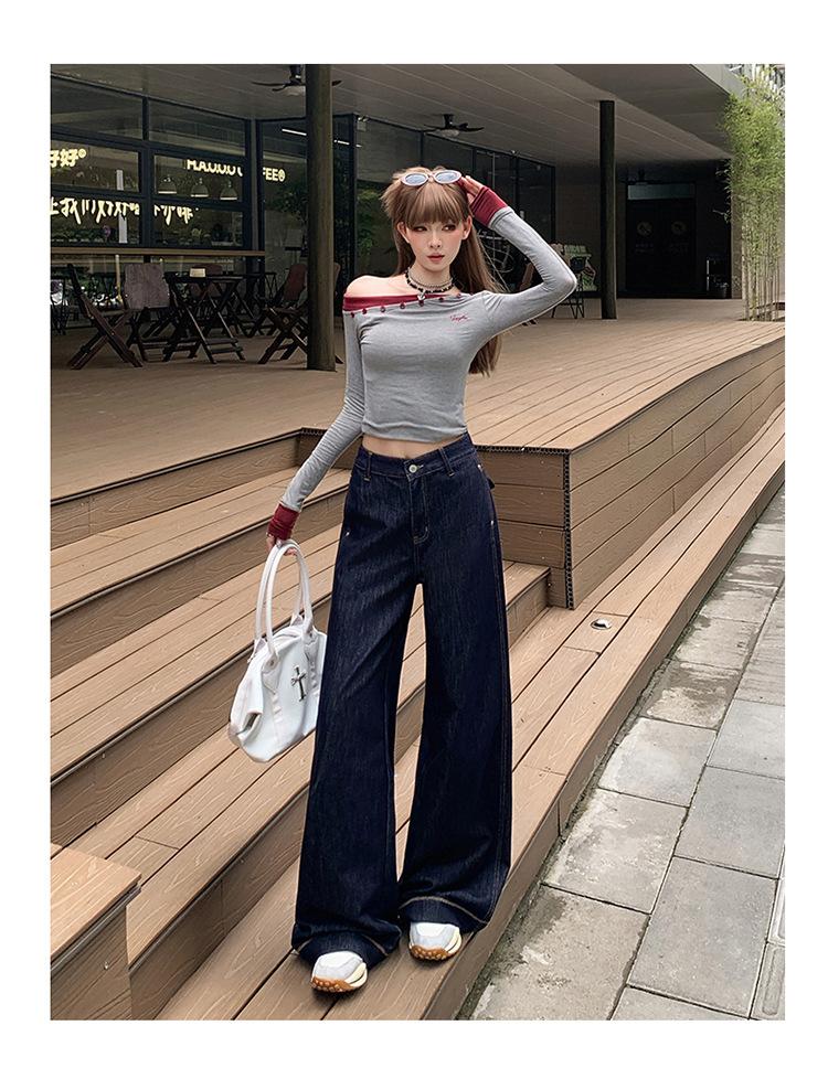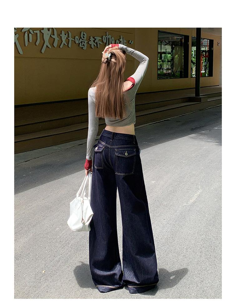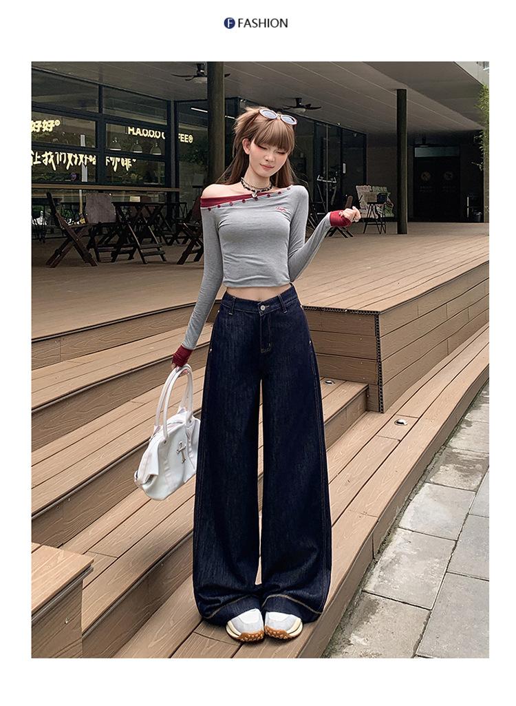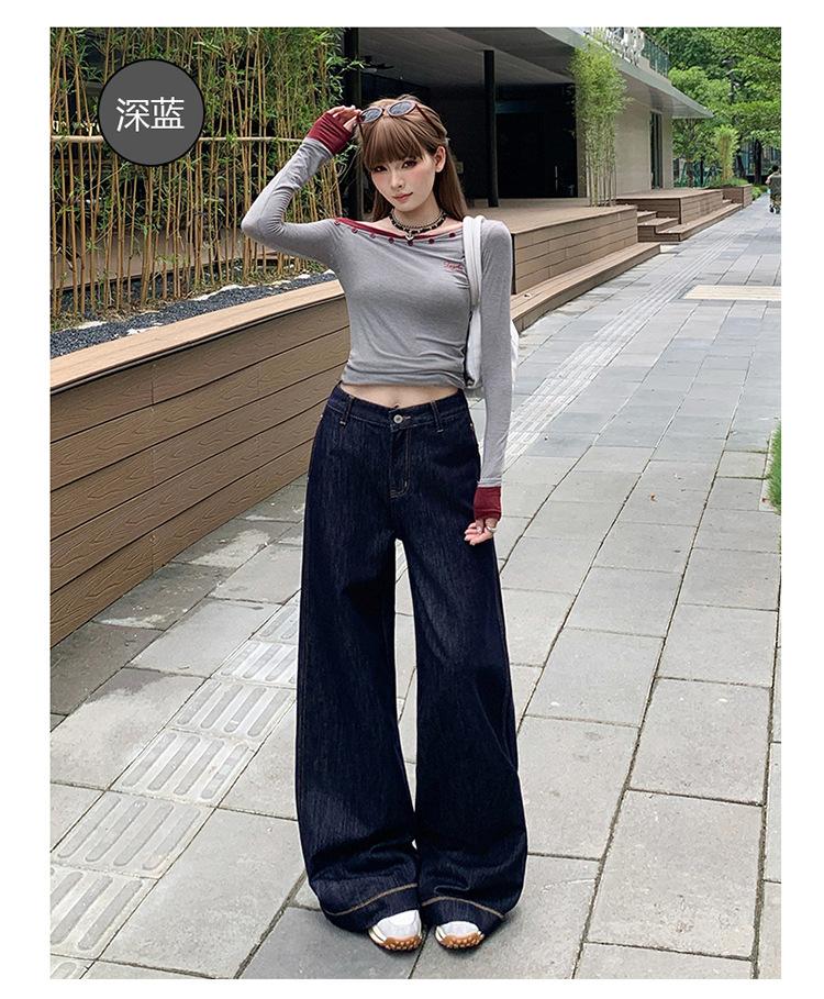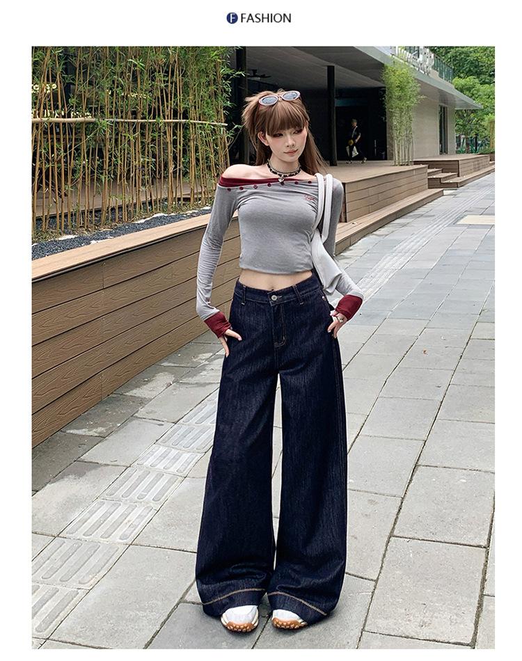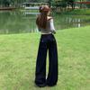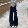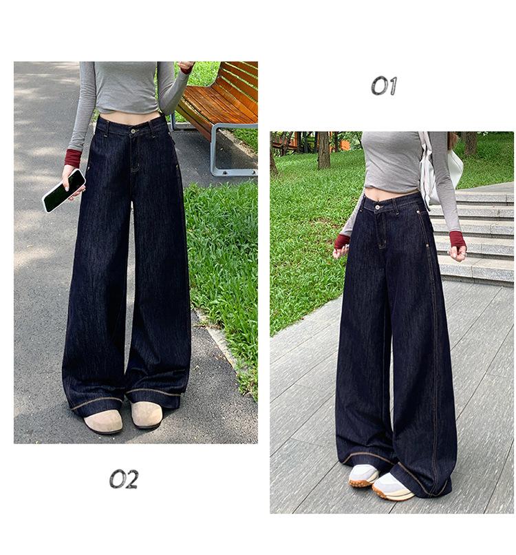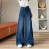 Jeans azul oscuro americanos de pierna ancha para mujer, nuevos, de cintura alta, con diseño adelgazante, versátiles, pantalones hasta el suelo
