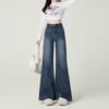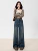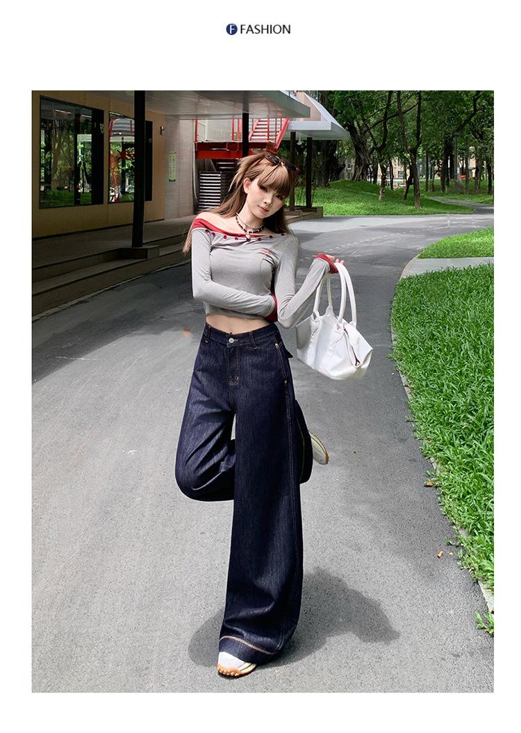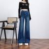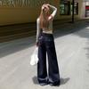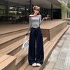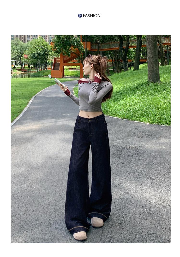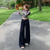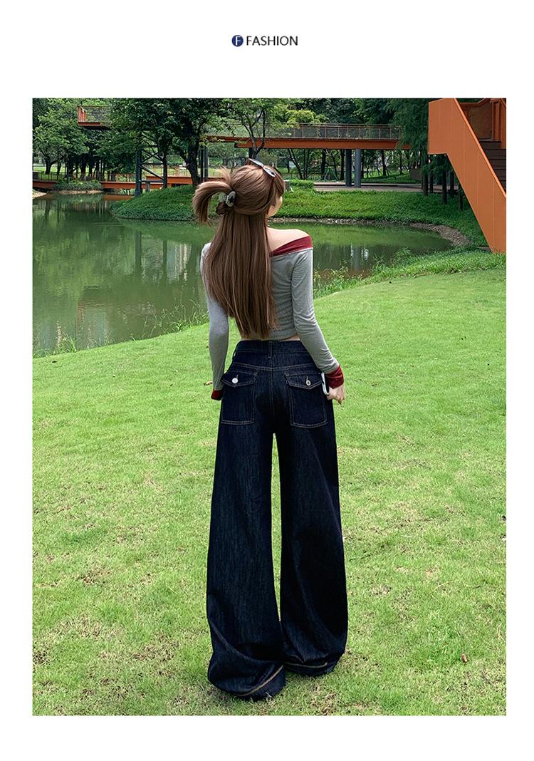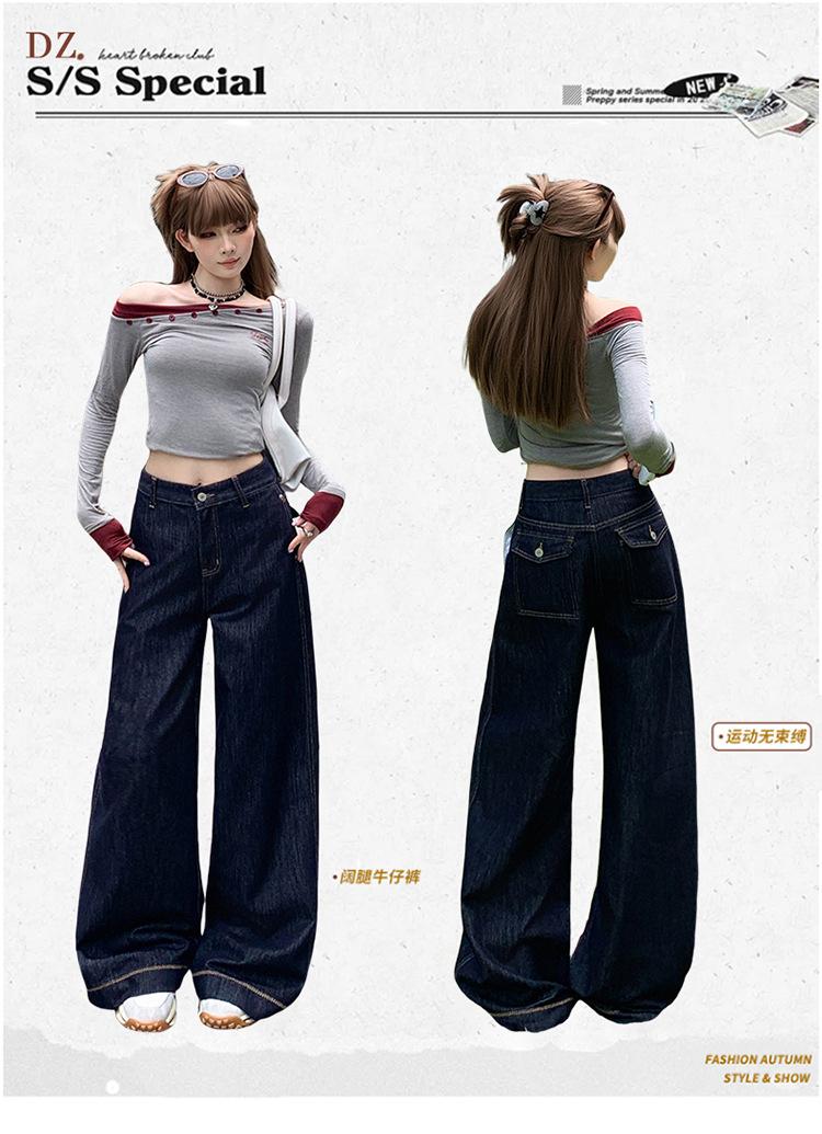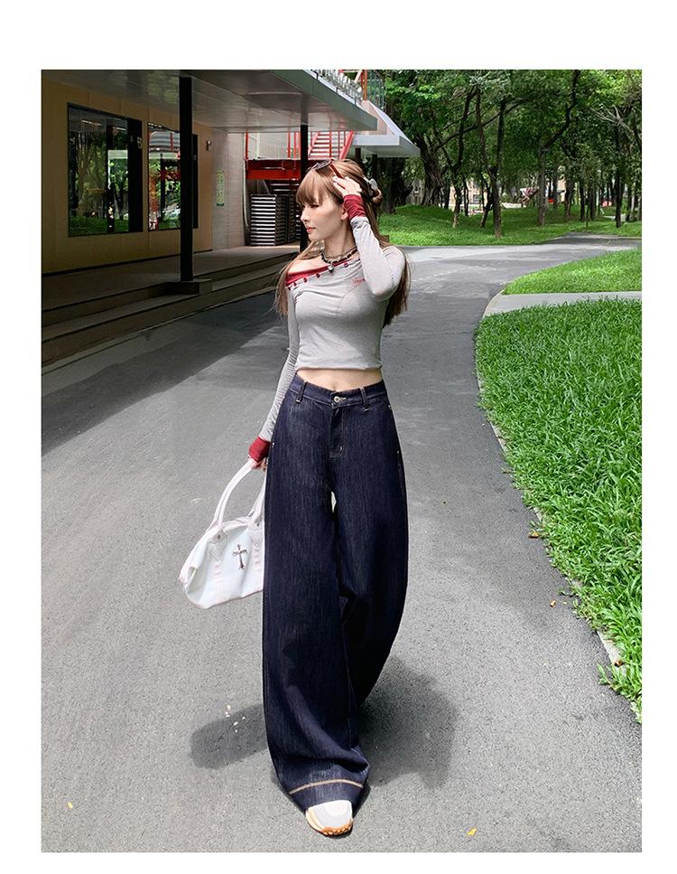 Jeans azul oscuro americanos de pierna ancha para mujer, nuevos, de cintura alta, con diseño adelgazante, versátiles, pantalones hasta el suelo