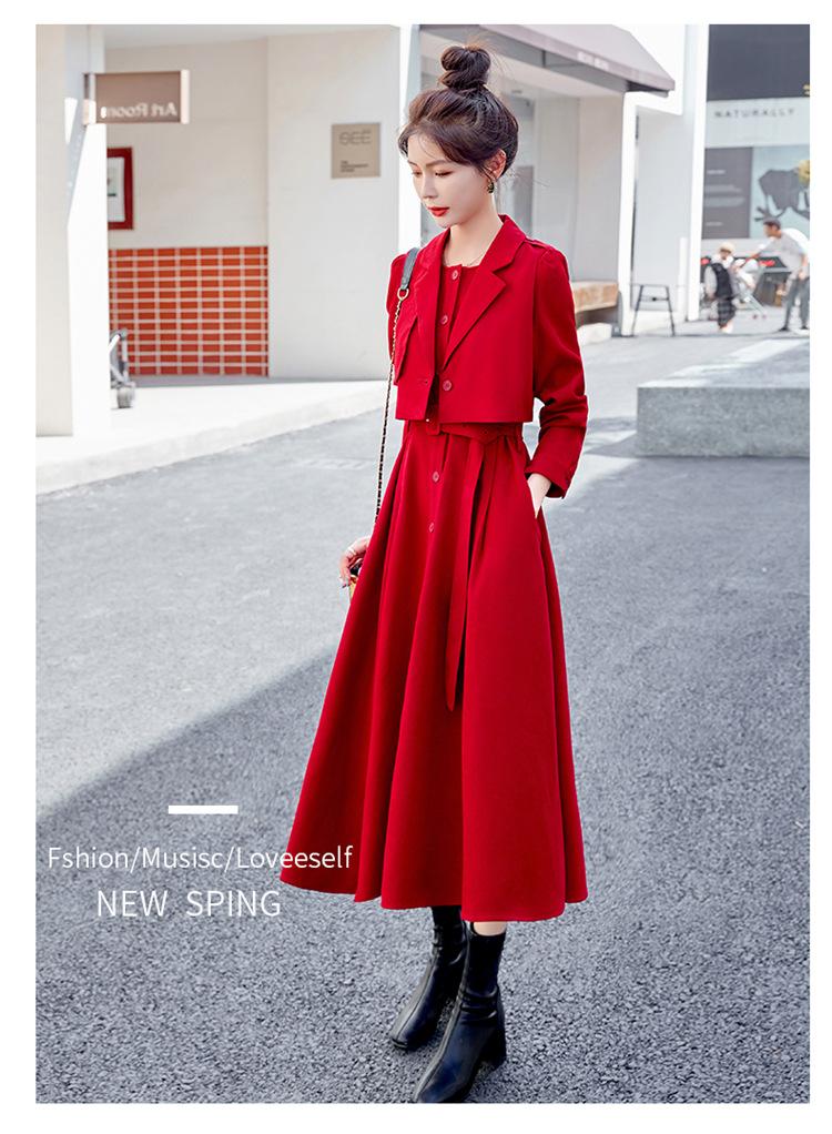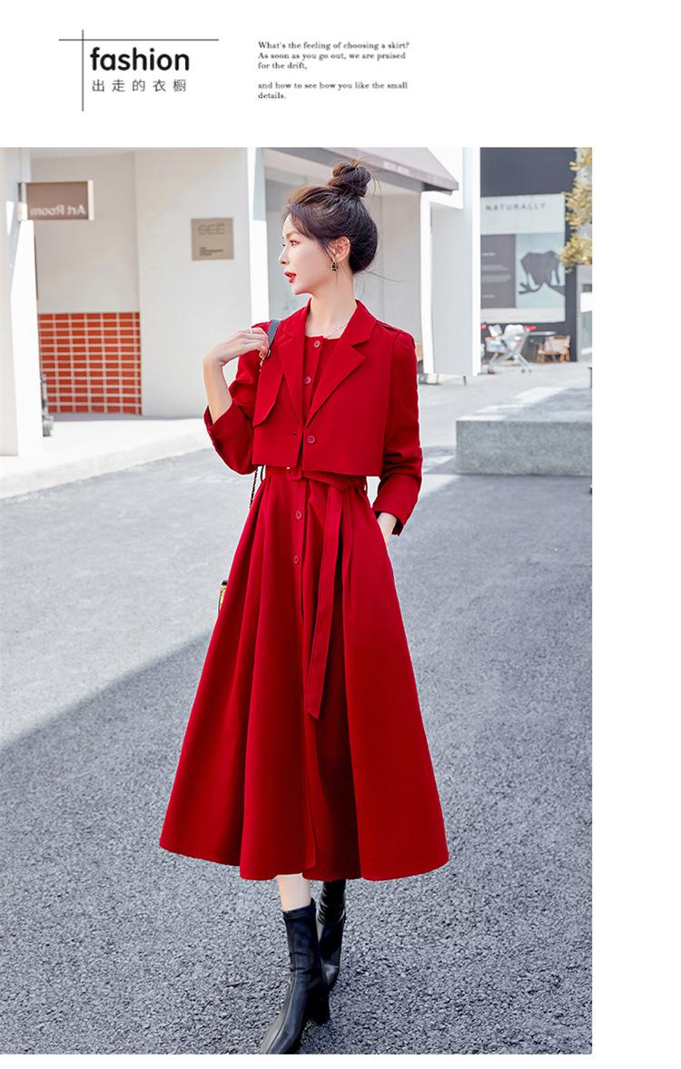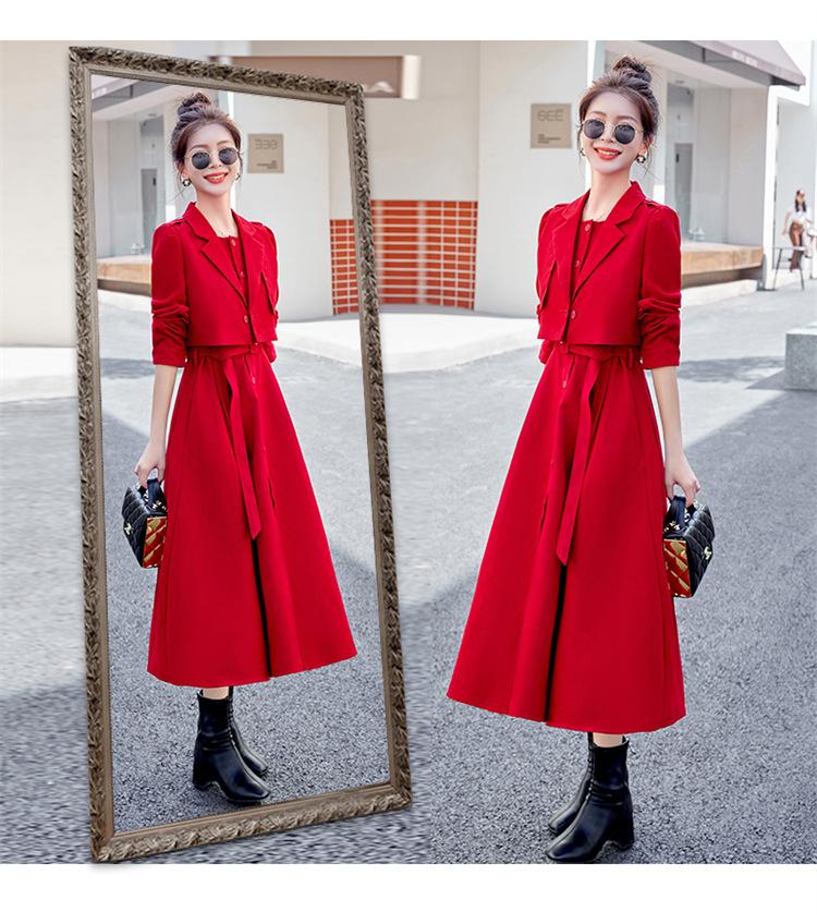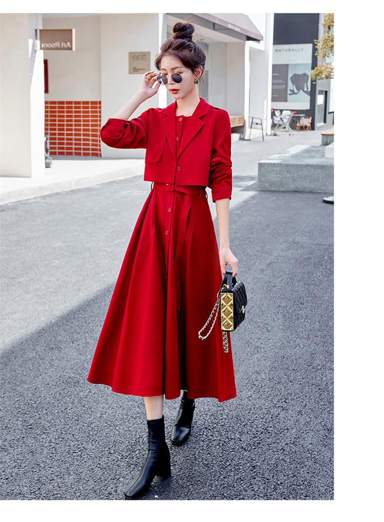 khaki two-piece skirt, Black two-piece skirt, red two-piece skirt set