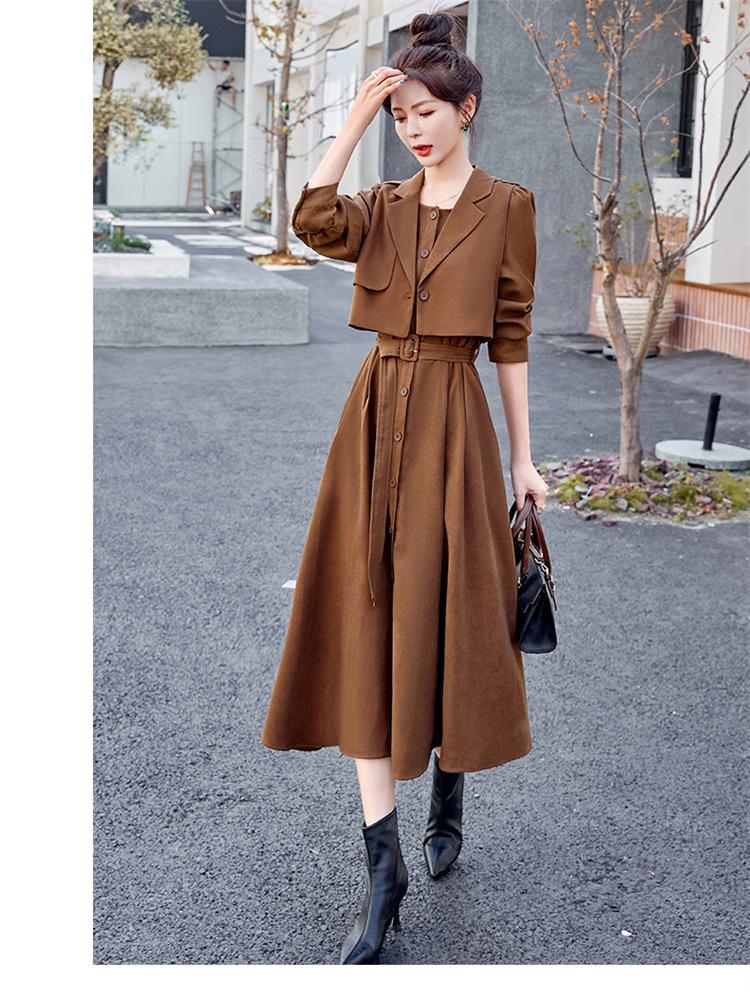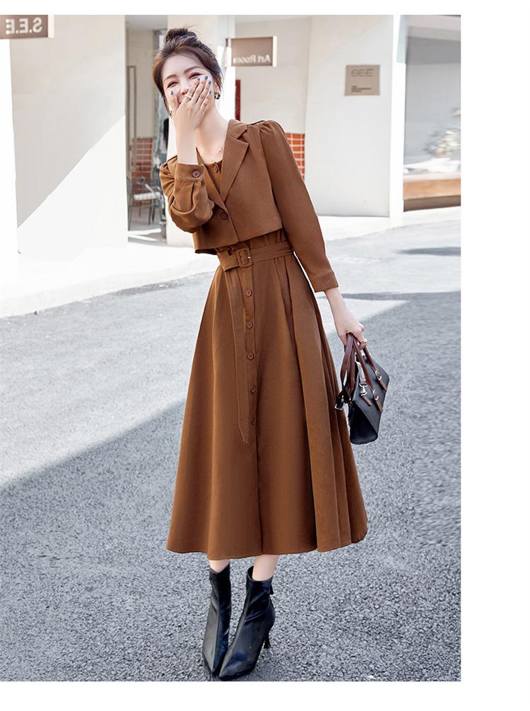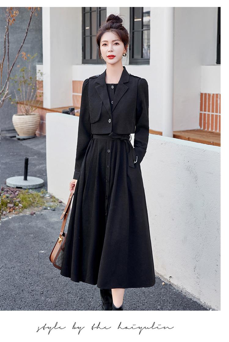 Elegante conjunto de vestido de traje de estilo 2025 otoño nuevo temperamento delgado estilo diosa falda de dos piezas de moda