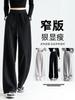 Pantalones deportivos casuales para mujer 2025 Nuevo otoño Azul marino Petite Cintura alta Pierna recta Estrechos Banana Pierna ancha