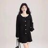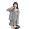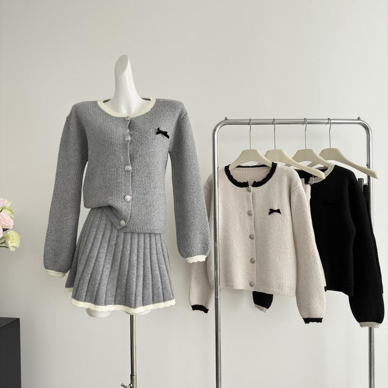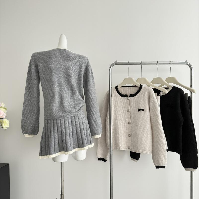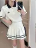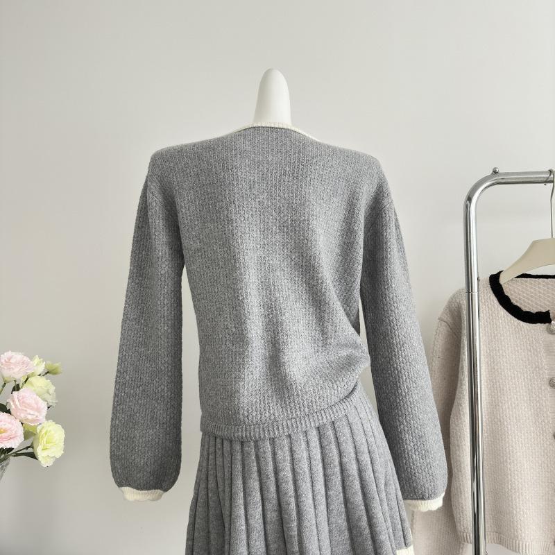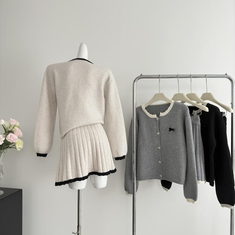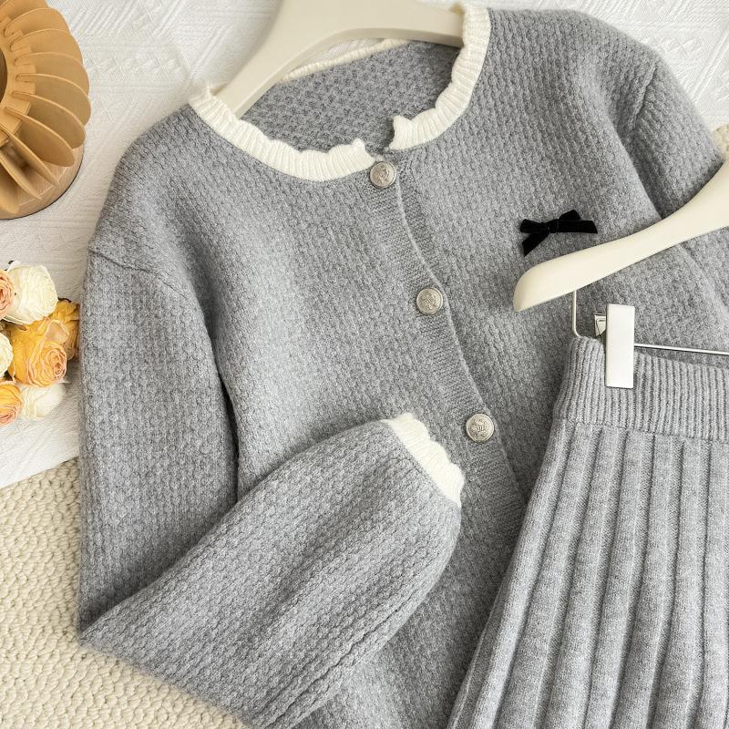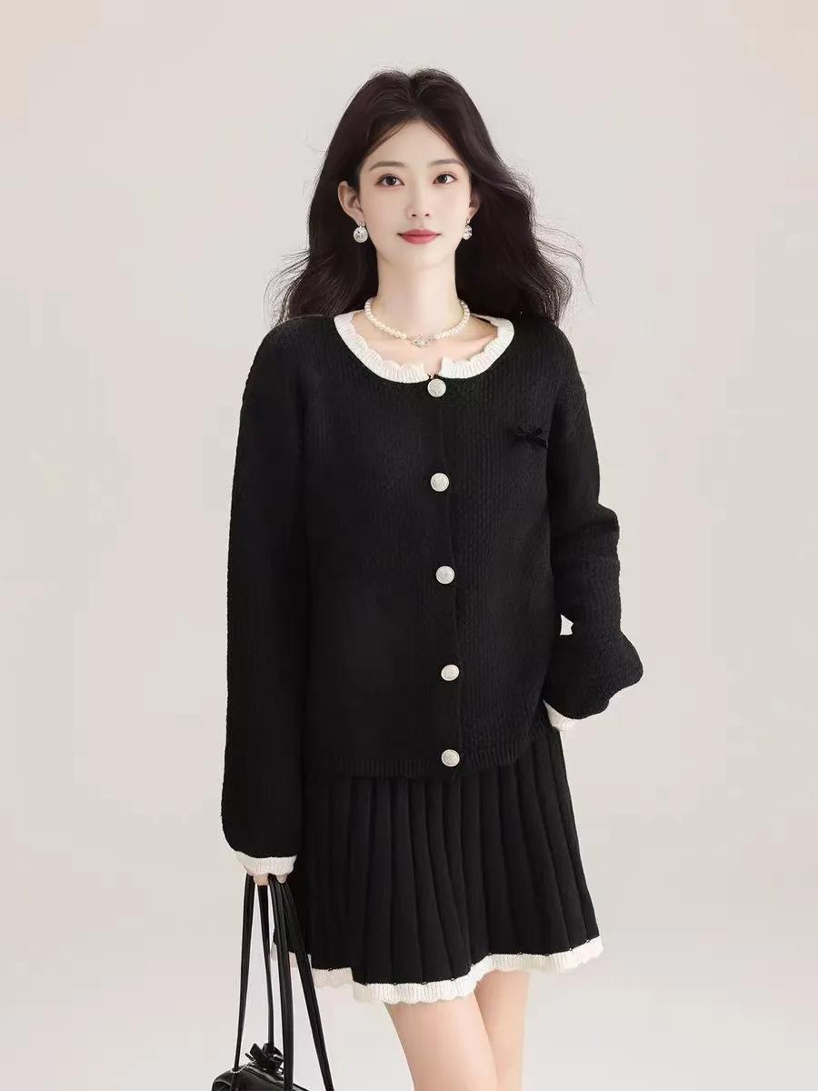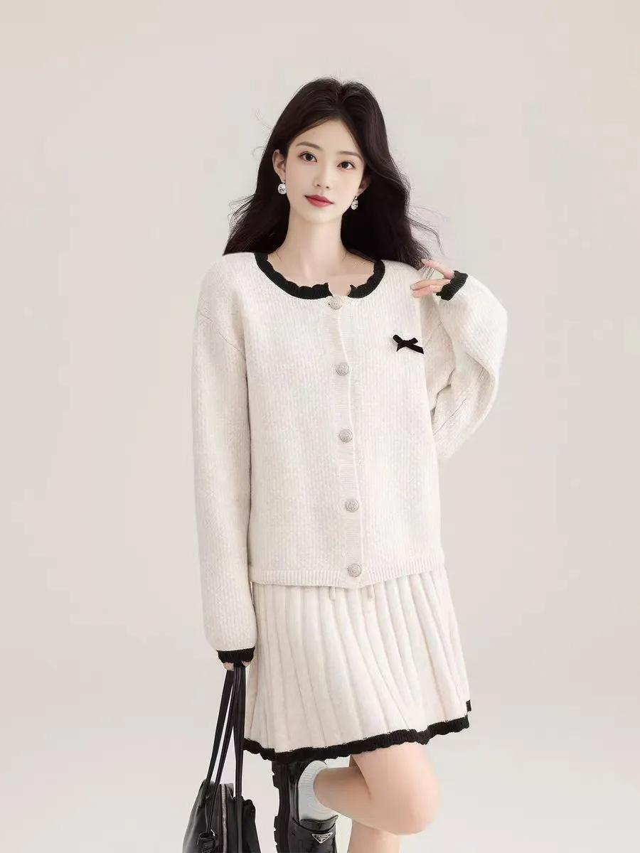 Conjunto de Cárdigan de Punto Fresco Francés para Mujer Otoño Nuevo Estilo Coreano Holgado ins Falda Corta Plisada Conjunto de Dos Piezas