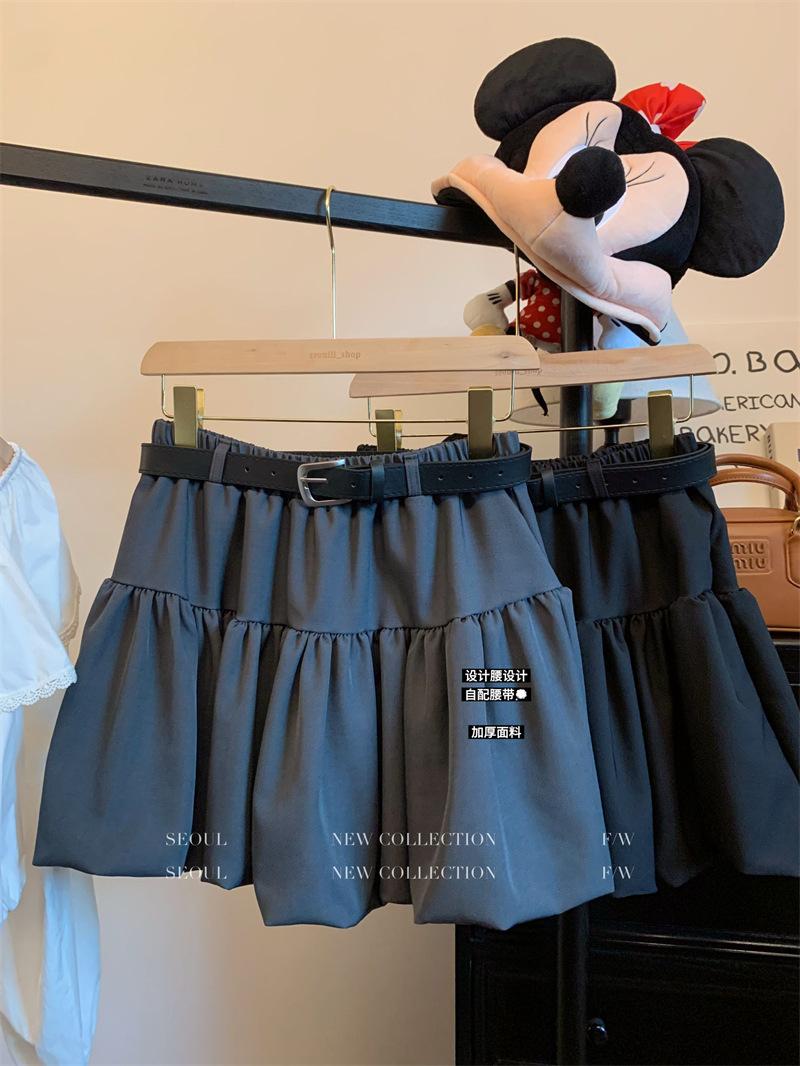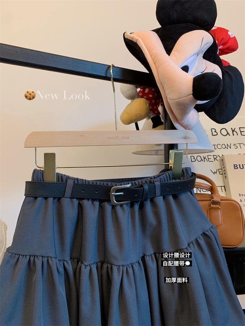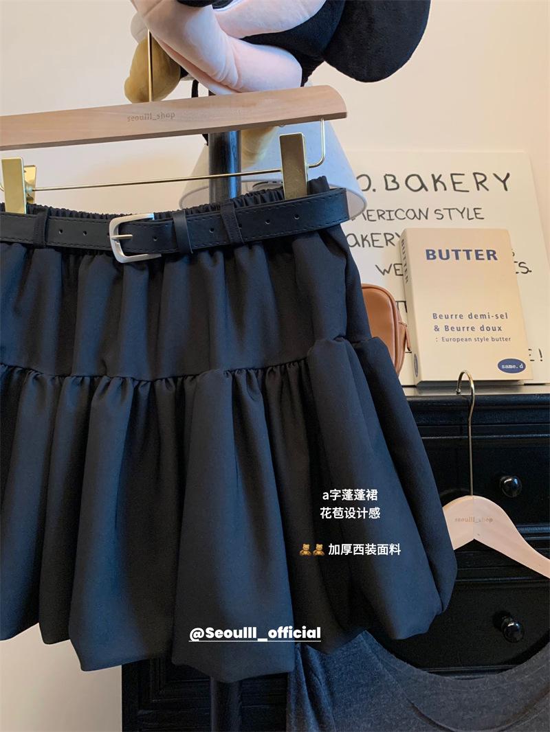 Toma real 2025 otoño e invierno traje grueso color sólido cintura alta falda midi tulipán reductor de edad falda mini línea A falda abullonada elegante