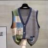 Suéter sin mangas de estilo coreano para primavera y otoño, nuevo, cuello redondo, diseño de bloques de color con líneas punteadas, sentido del diseño, holgado para superponer, chaleco de punto exterior para mujer |