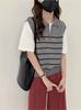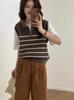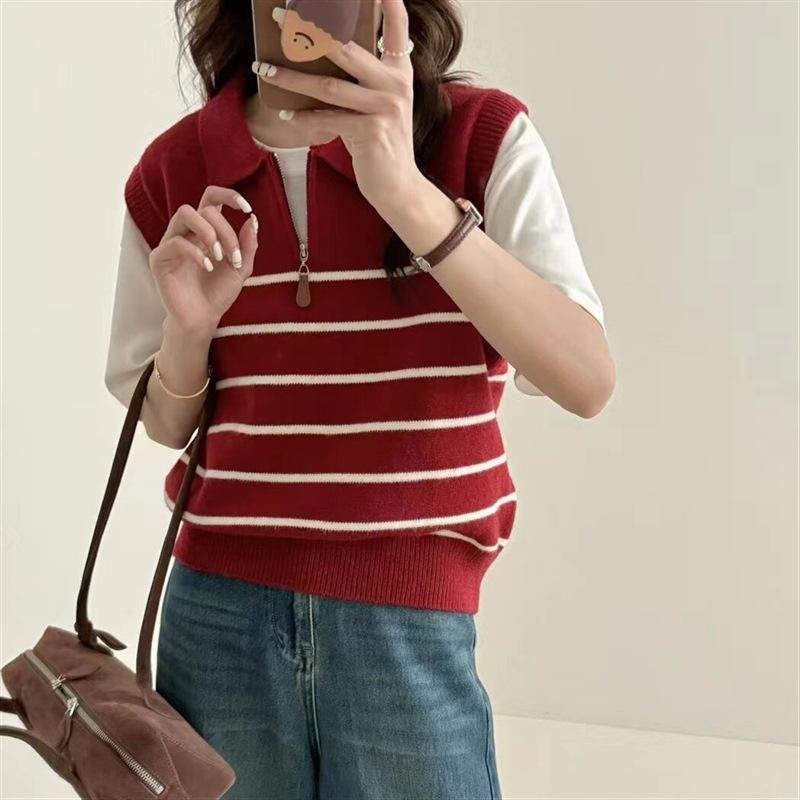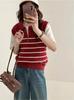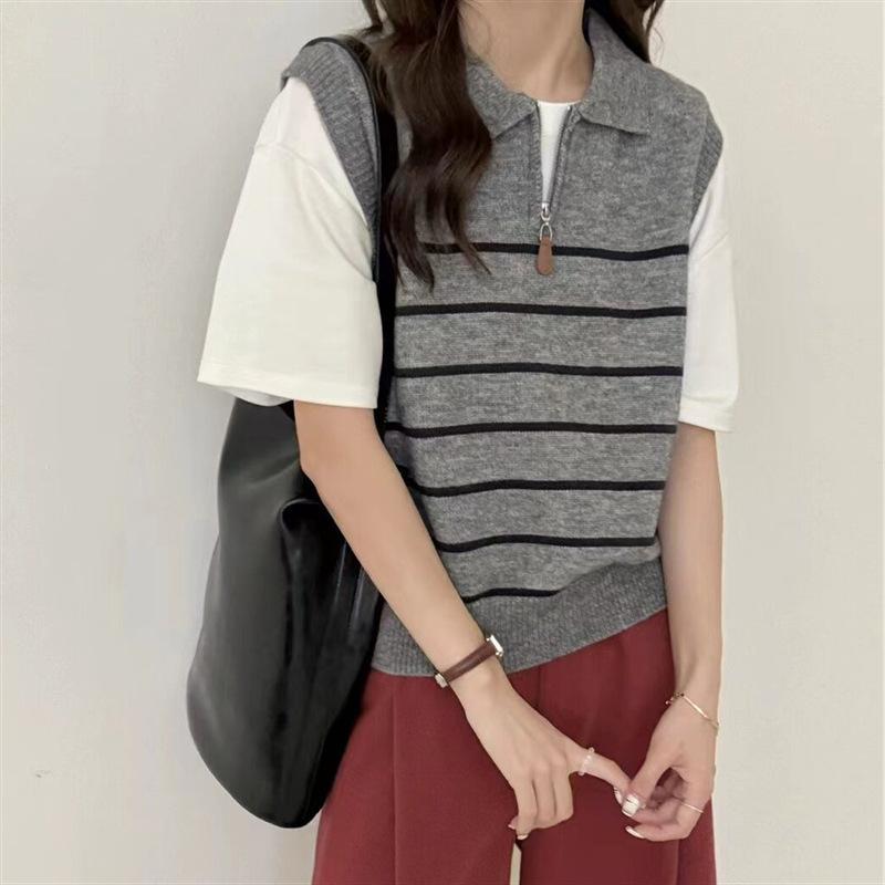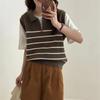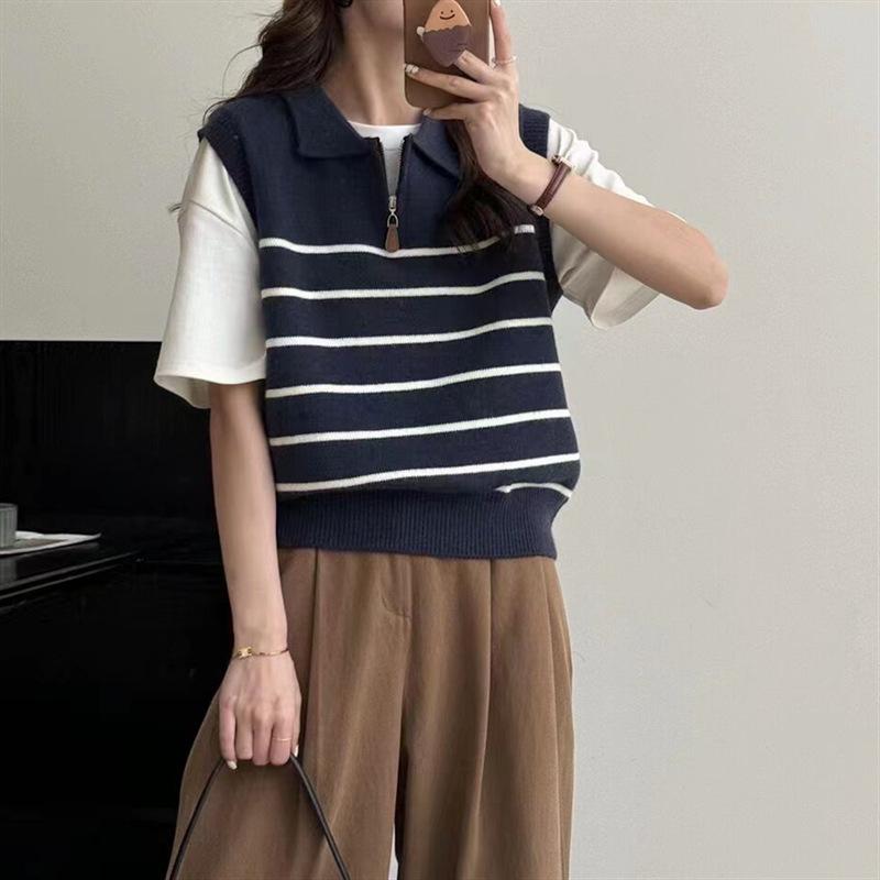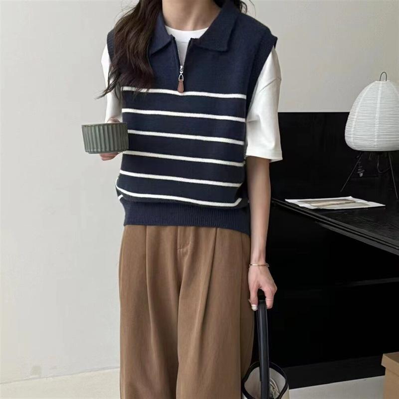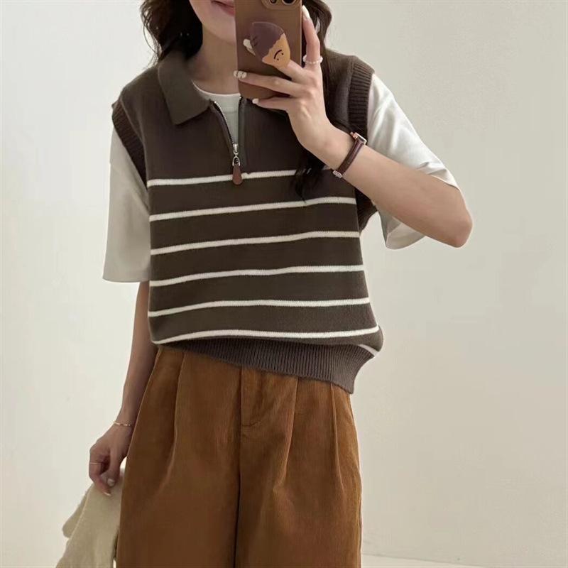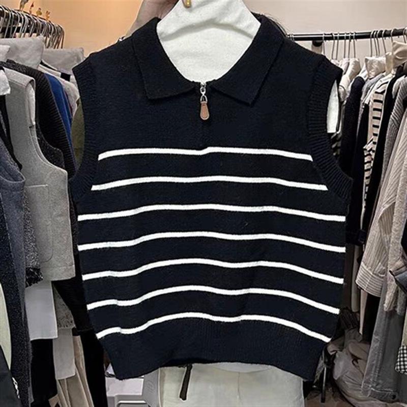 Suéter chaleco de punto a rayas con cuello retro doblado estilo coreano para mujer otoño e invierno ropa interior ropa exterior temperamento top sin mangas mujer |