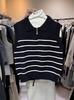 Chaleco de Punto de Rayas Estilo Coreano con Cuello Vuelto y Media Cremallera para Mujer Otoño/Invierno 2025 Nuevo Casual para Superponer sin Mangas |
