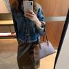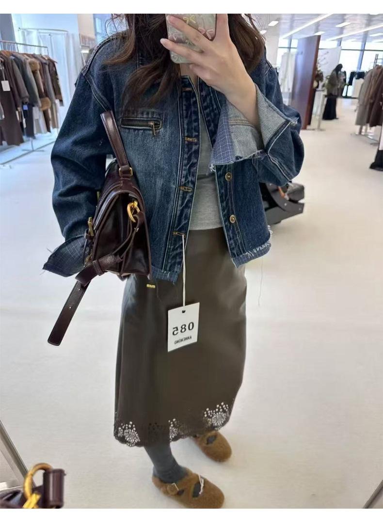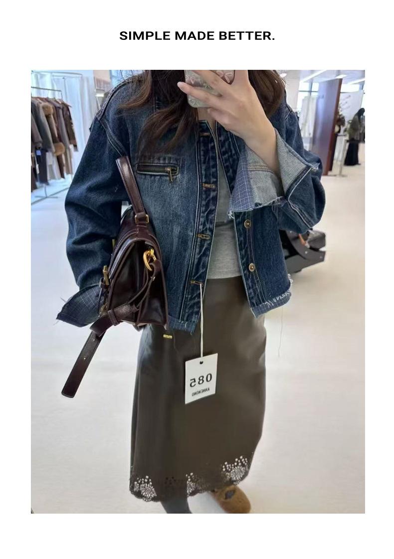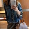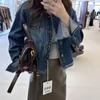 Otoño 2025 Nuevo Coreano Dongdaemun Retro Casual Desgastado Cuello Vuelto Adelgazante Chaqueta Corta de Mezclilla Abrigo Mujer