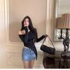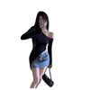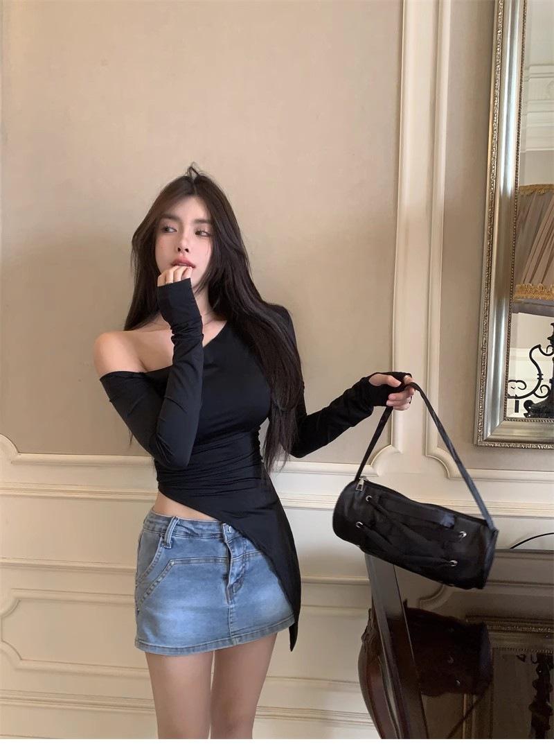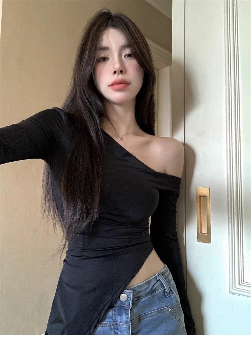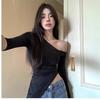 2025 nuevo top ajustado irregular de otoño temprano con hombros descubiertos para mujer, corte entallado, un hombro, clavícula, camiseta de manga larga, sexy chica hot.