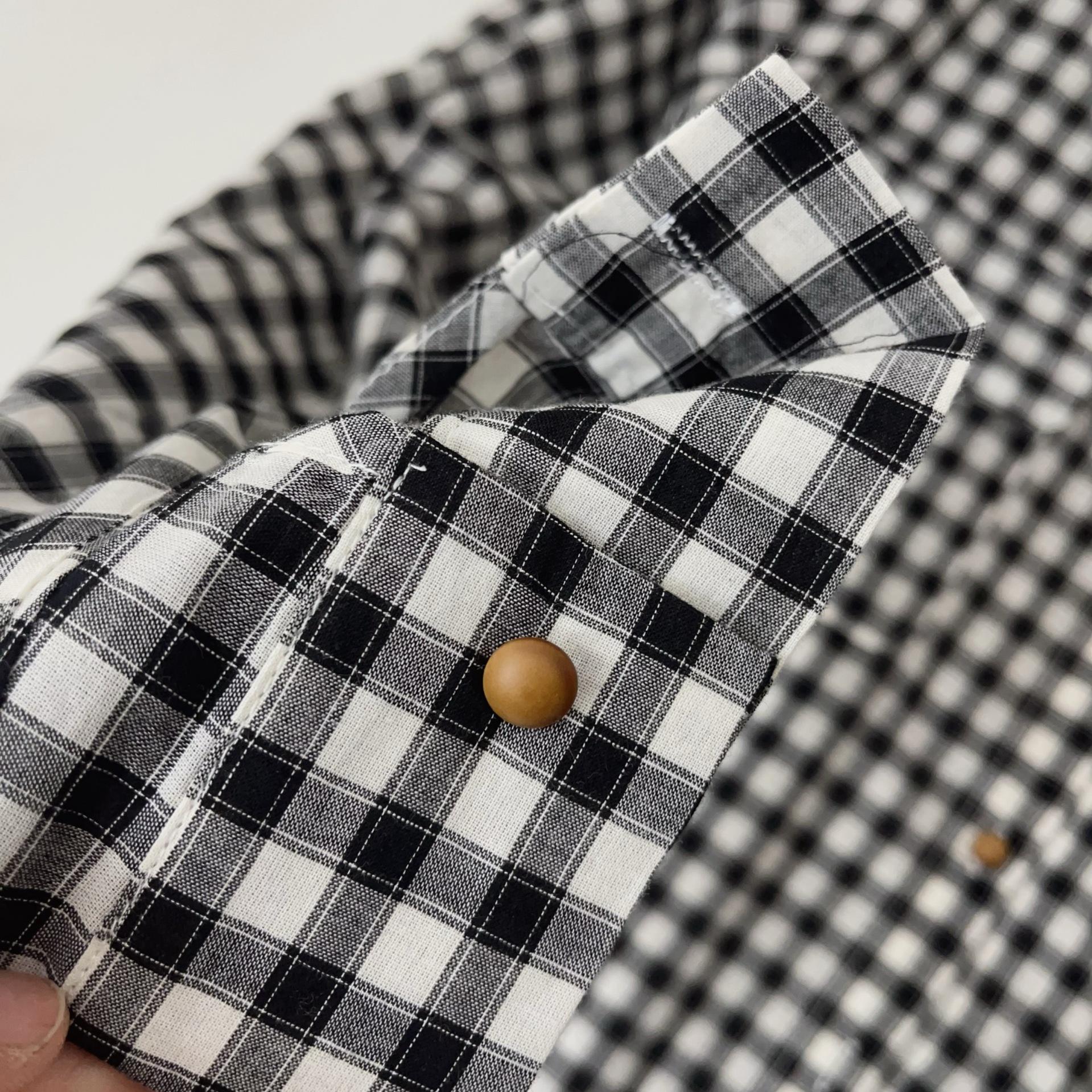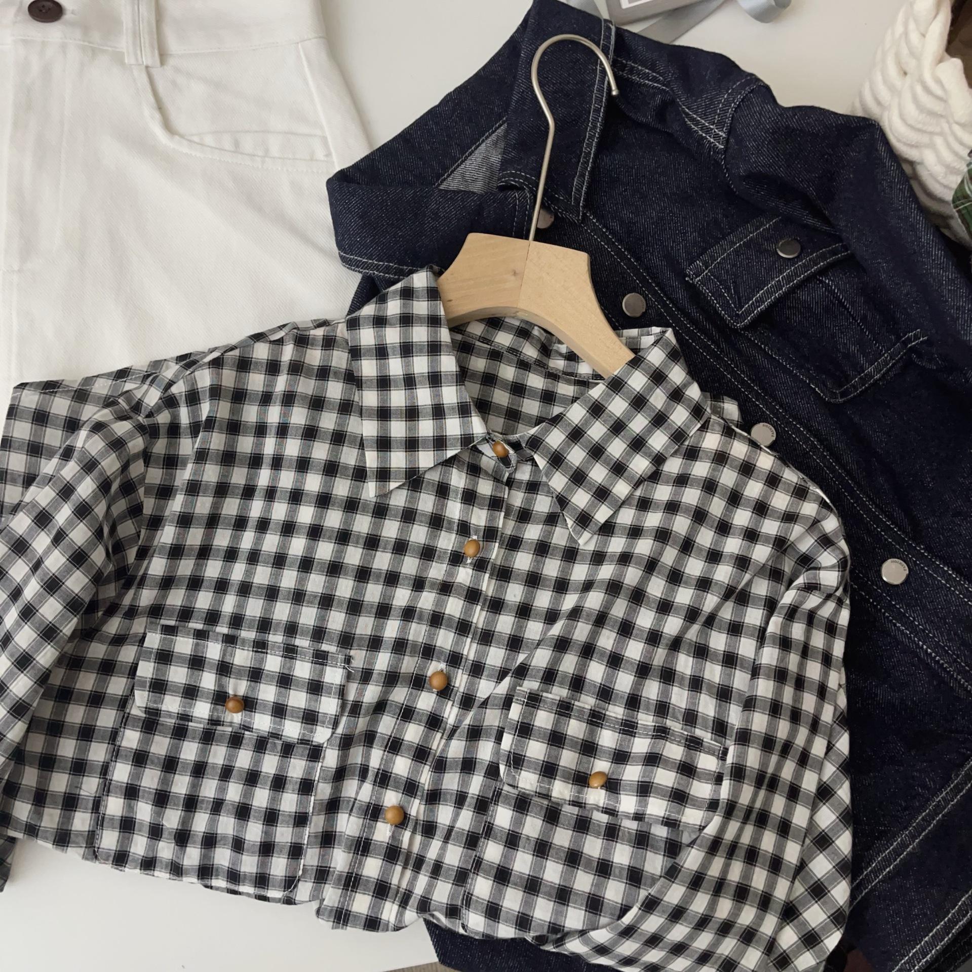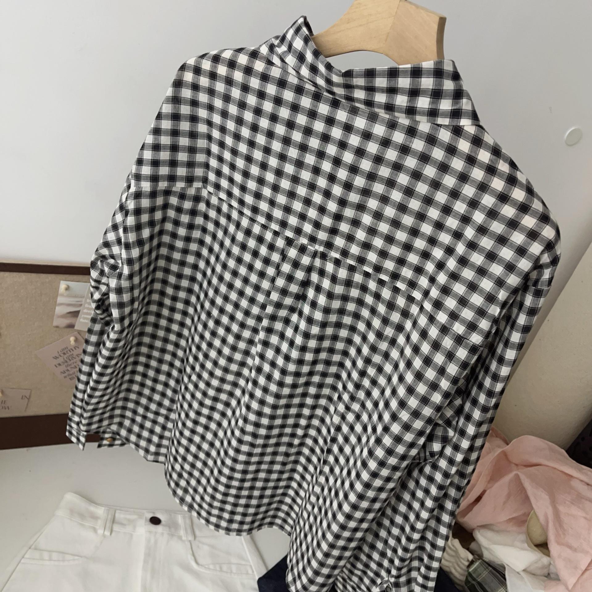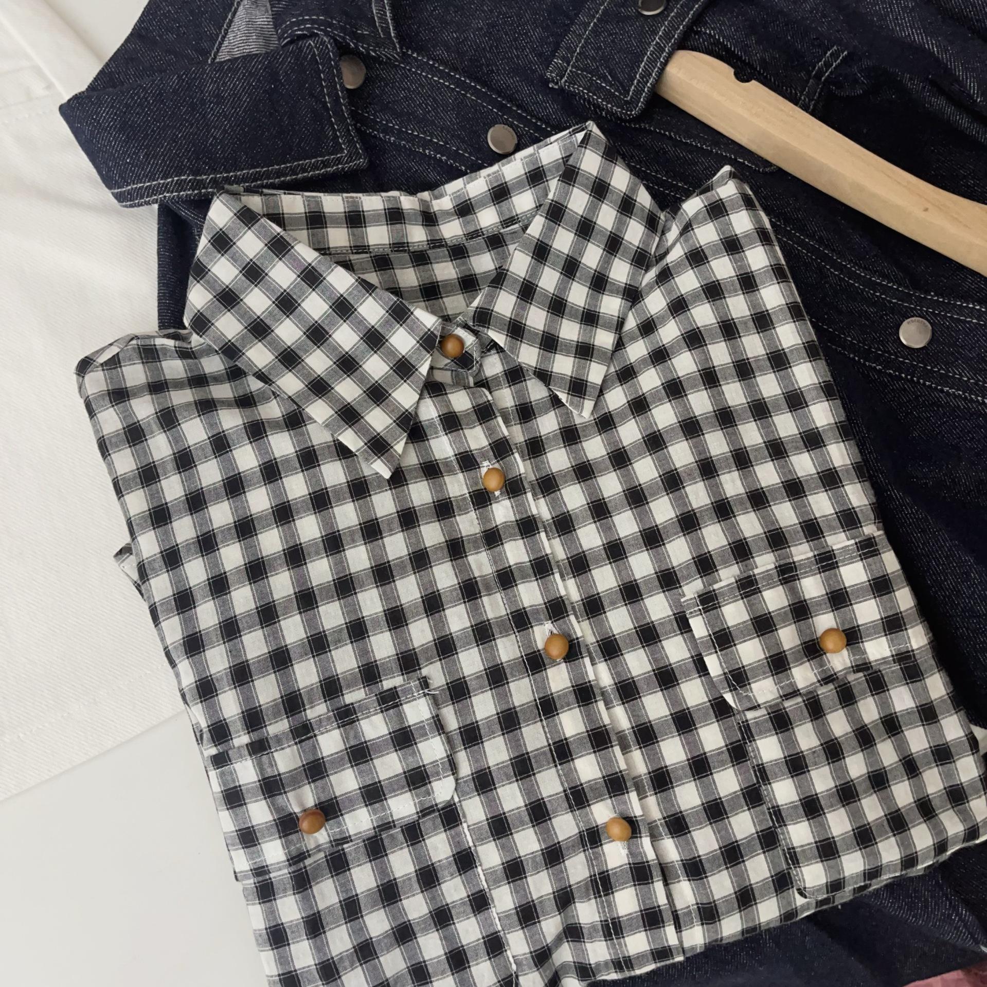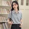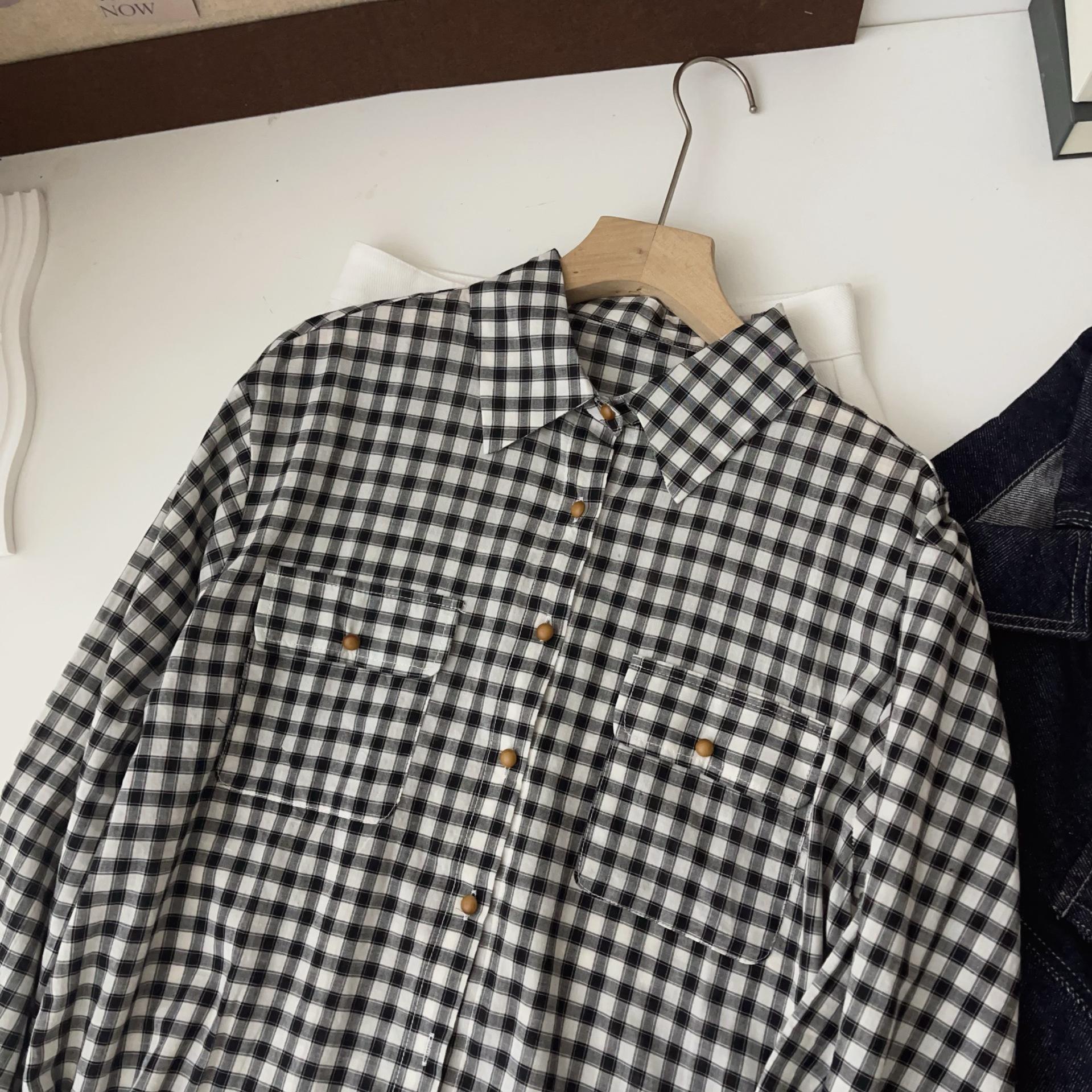 Camisa a cuadros para mujer 2025 Primavera y Otoño Nueva Retro Holgada Casual Versátil Diseño de Cuello Polo Camisa Nicho