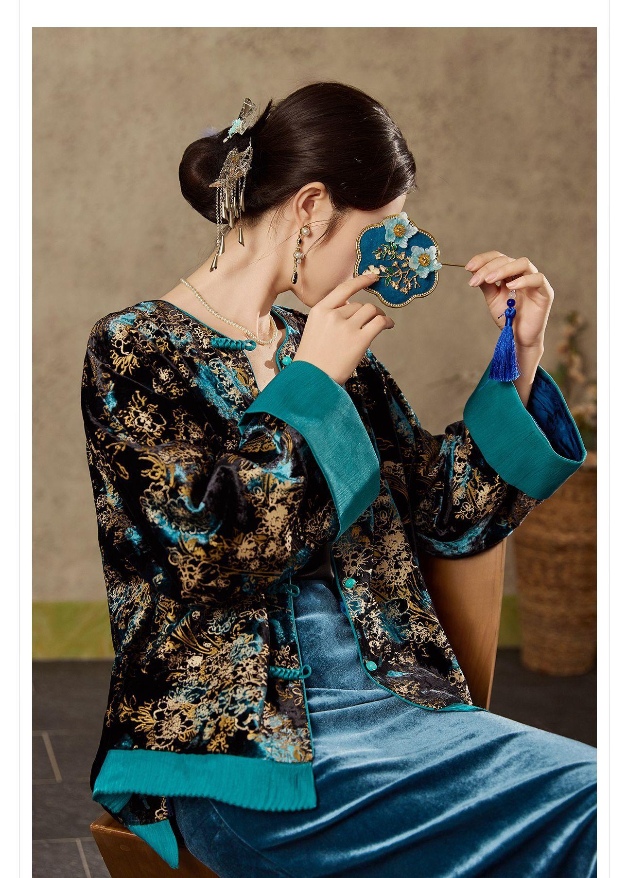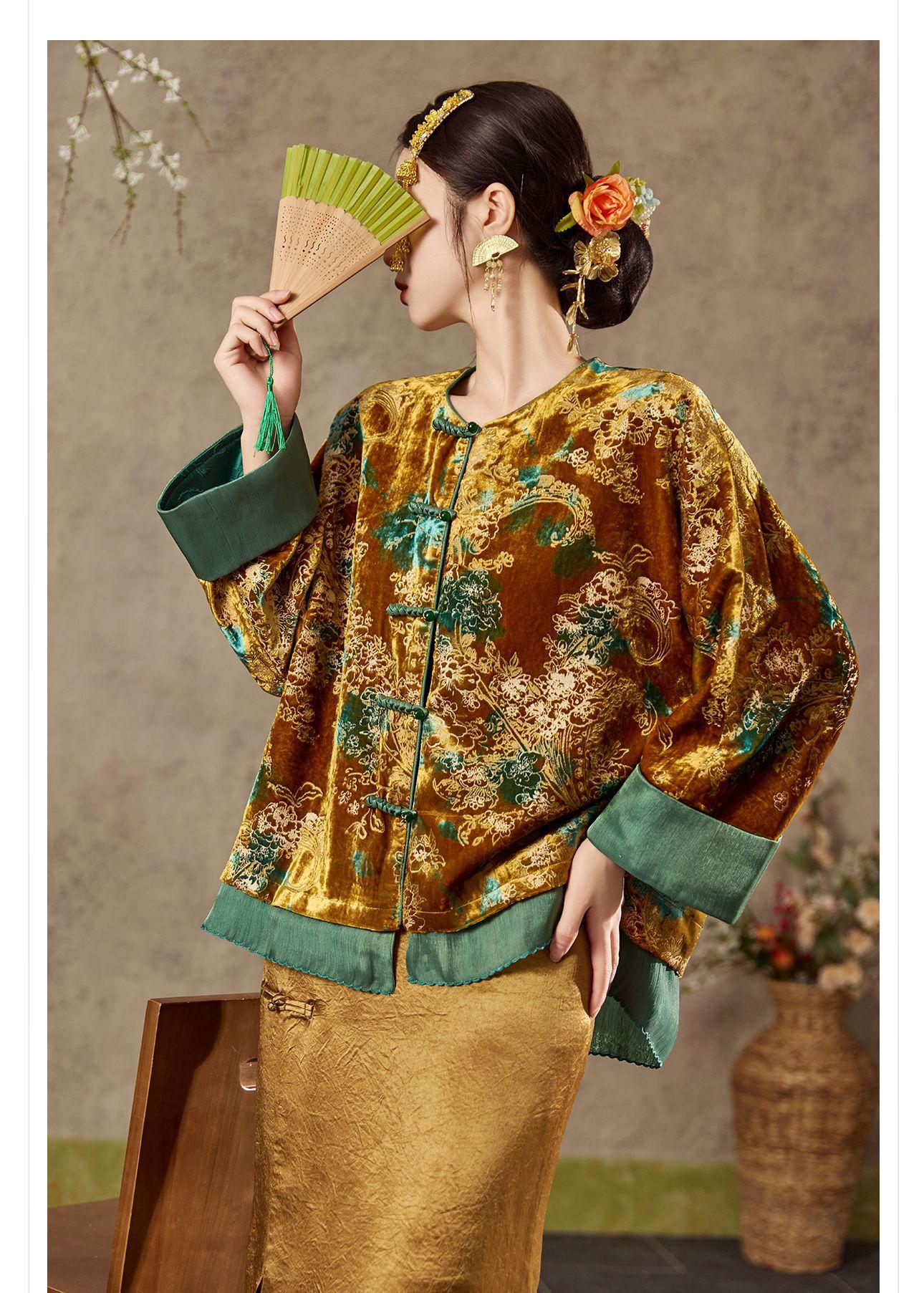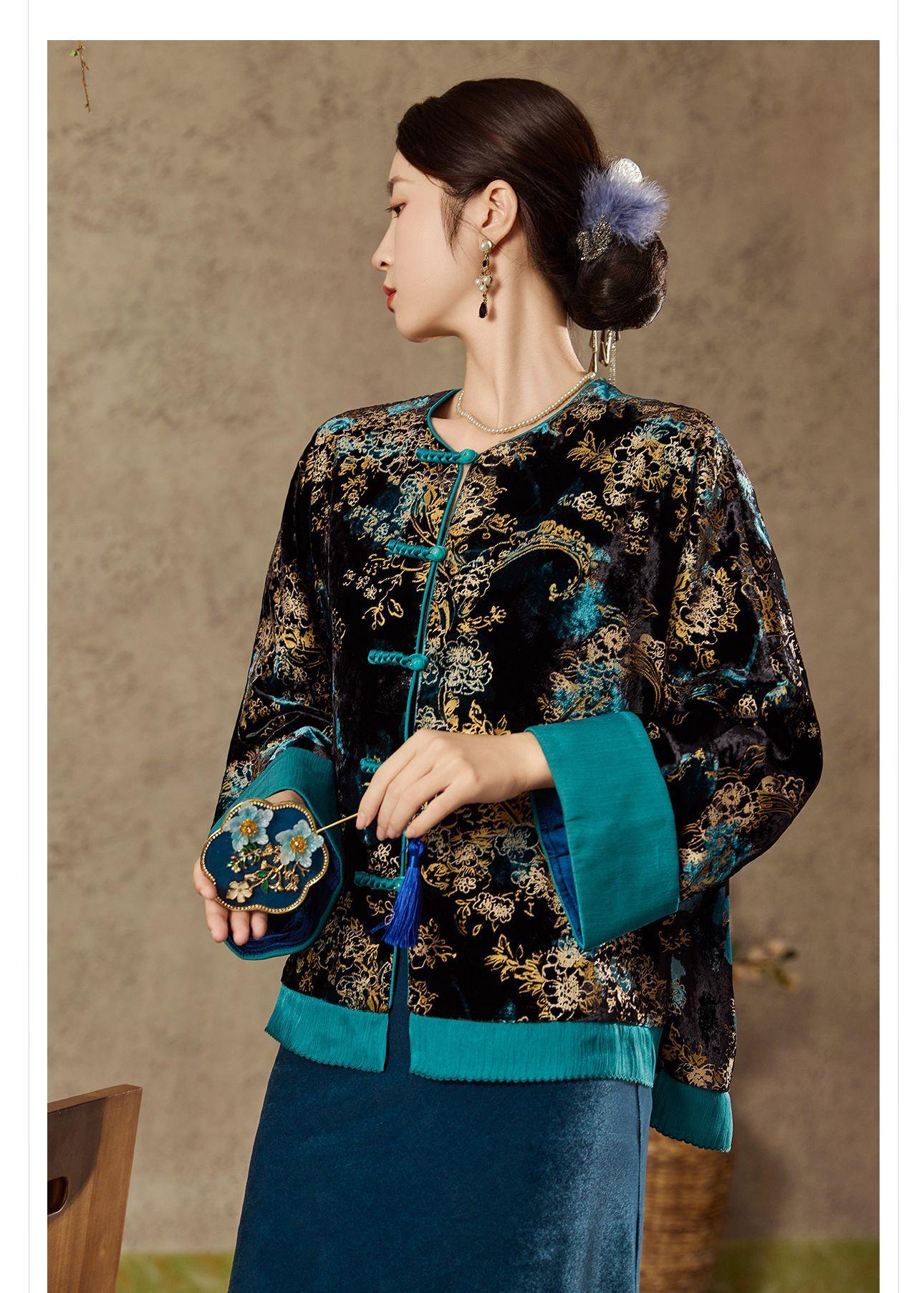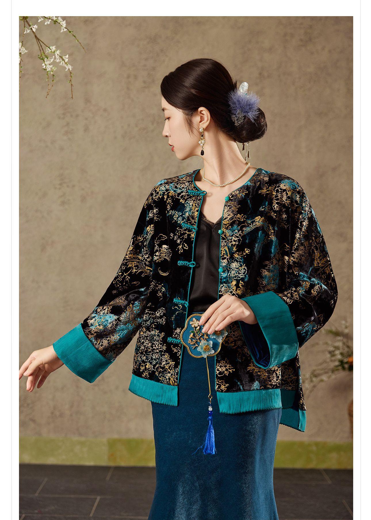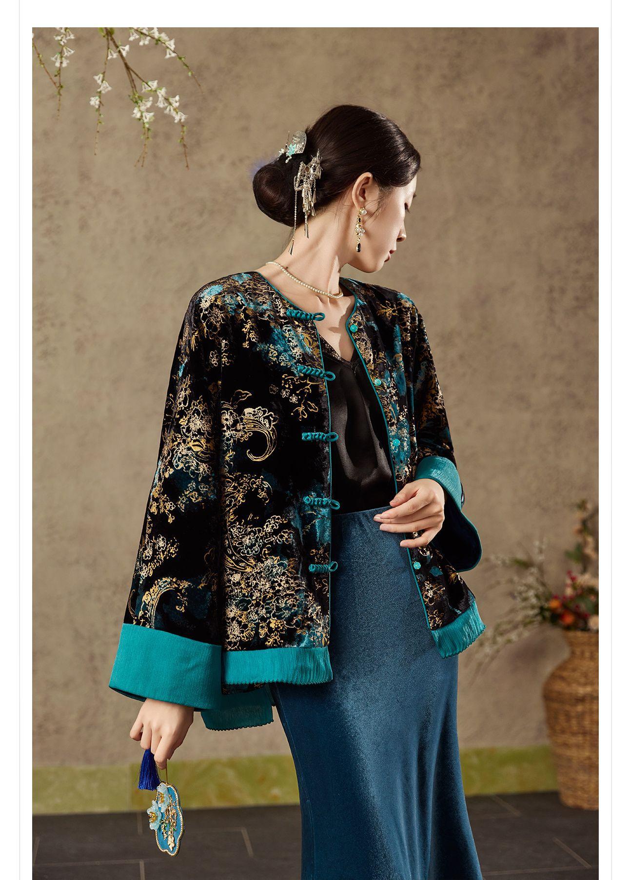 Otoño 2025 Nuevo Top Retro Chino de Alta Gama Estilo Nacional Bordado de Lentejuelas de Trabajo Pesado Rayón Ropa Exterior N8088