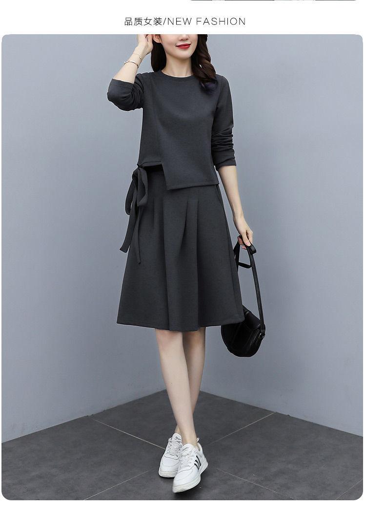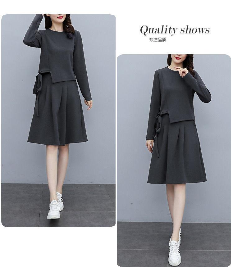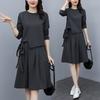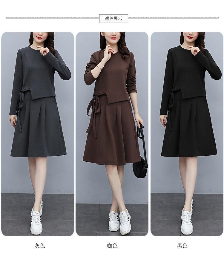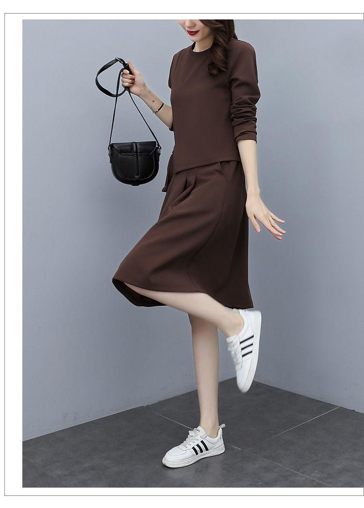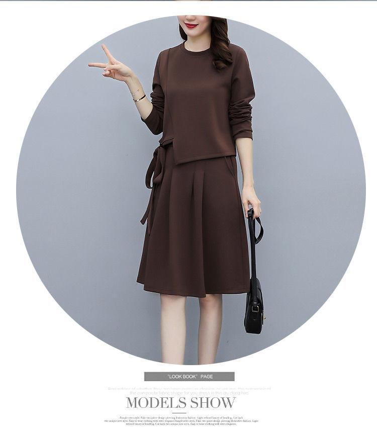 Traje de Falda Otoño 2025 Nuevo Gordo MM Estilo Coreano Moda de Alta Gama Holgado Adelgazante Dos Piezas Vestido Talla Grande