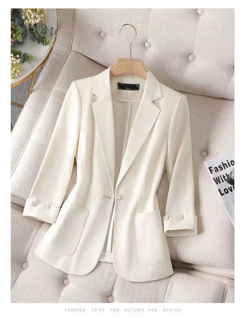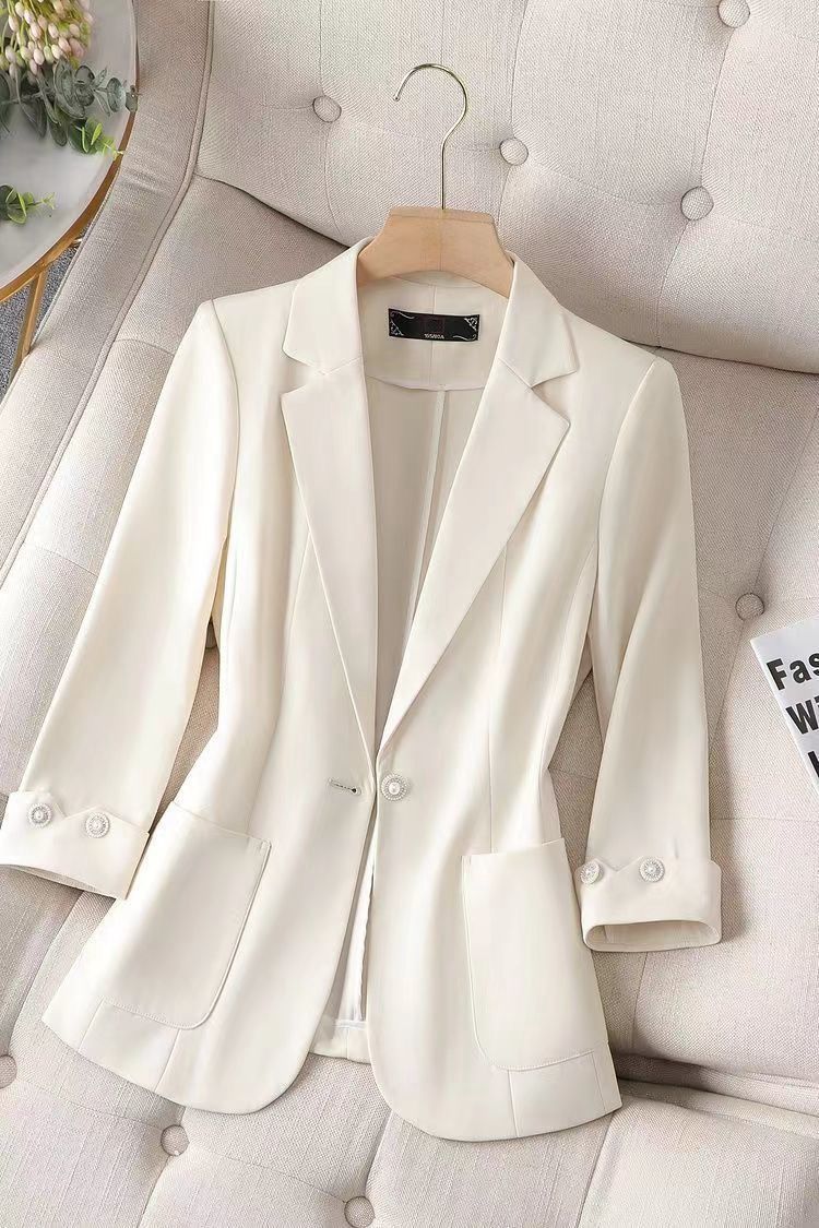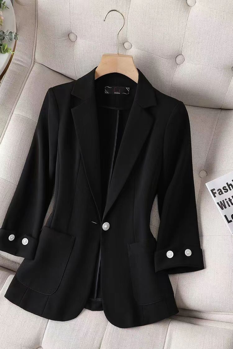 Traje pequeño de primavera y otoño 2025 Chaqueta para mujer de un botón corta petite sencilla casual adelgazante top de una sola capa delgada