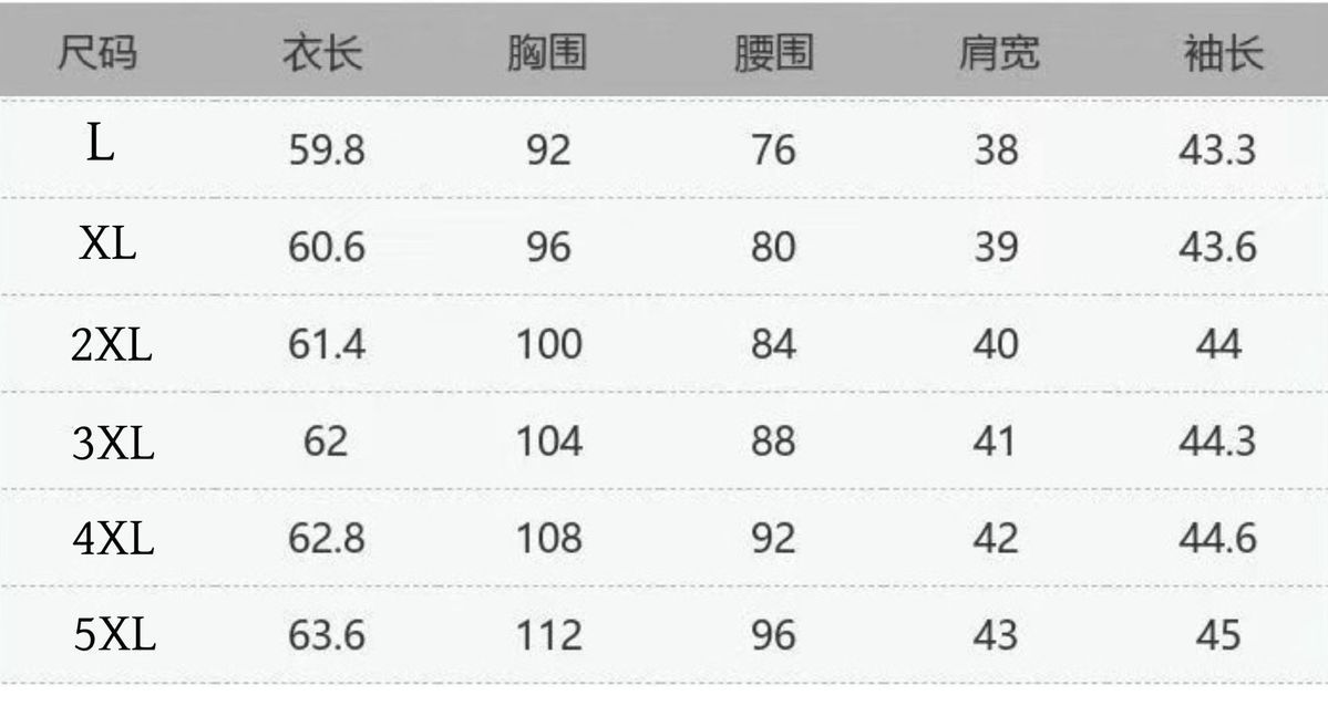 L 80-110 catties, XL 110-125 pounds, 2XL 125-140 catties, 3XL 140-155 catties, 4XL 155-170 catties, 5XL 170-180 catties