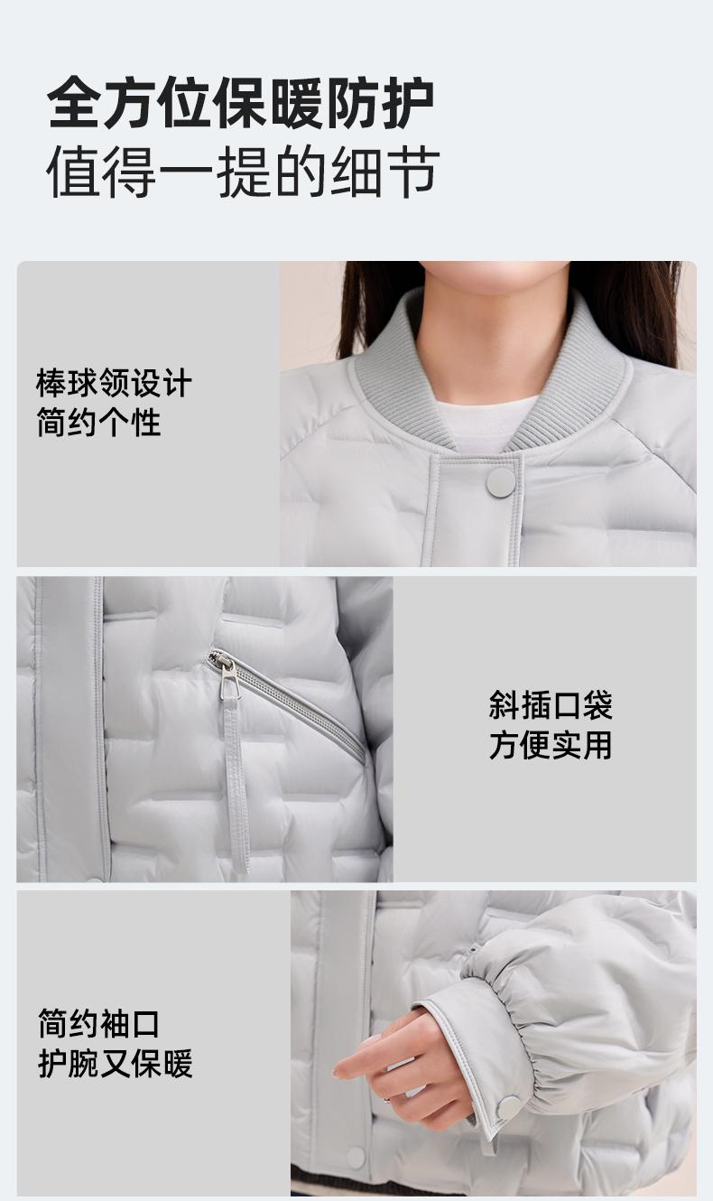 Yaya 2025 Invierno Nuevo Chaqueta de Plumas Mujer Ligera Corta Cuello Béisbol Moda Simple Cálida Abrigo Grueso Y