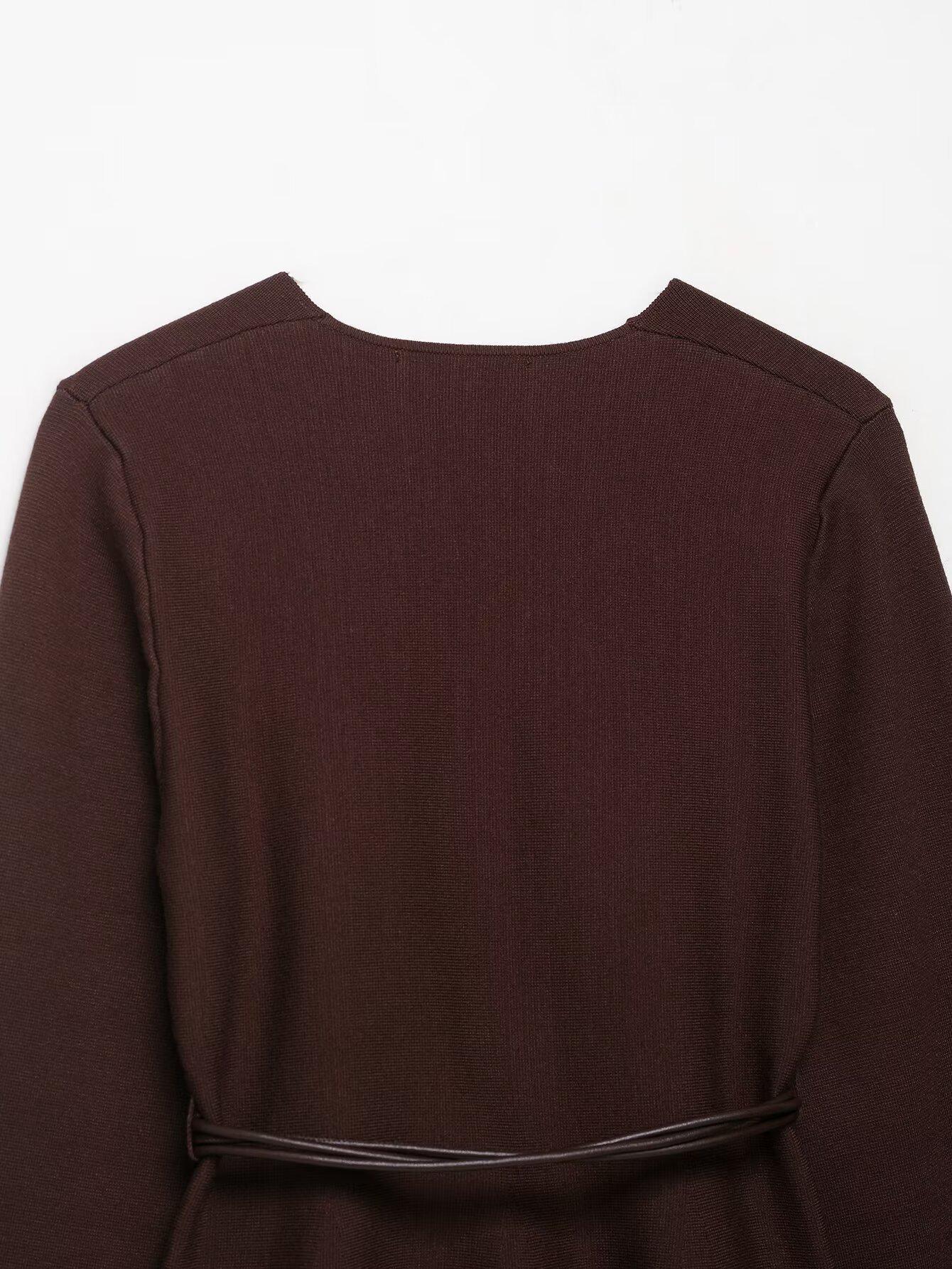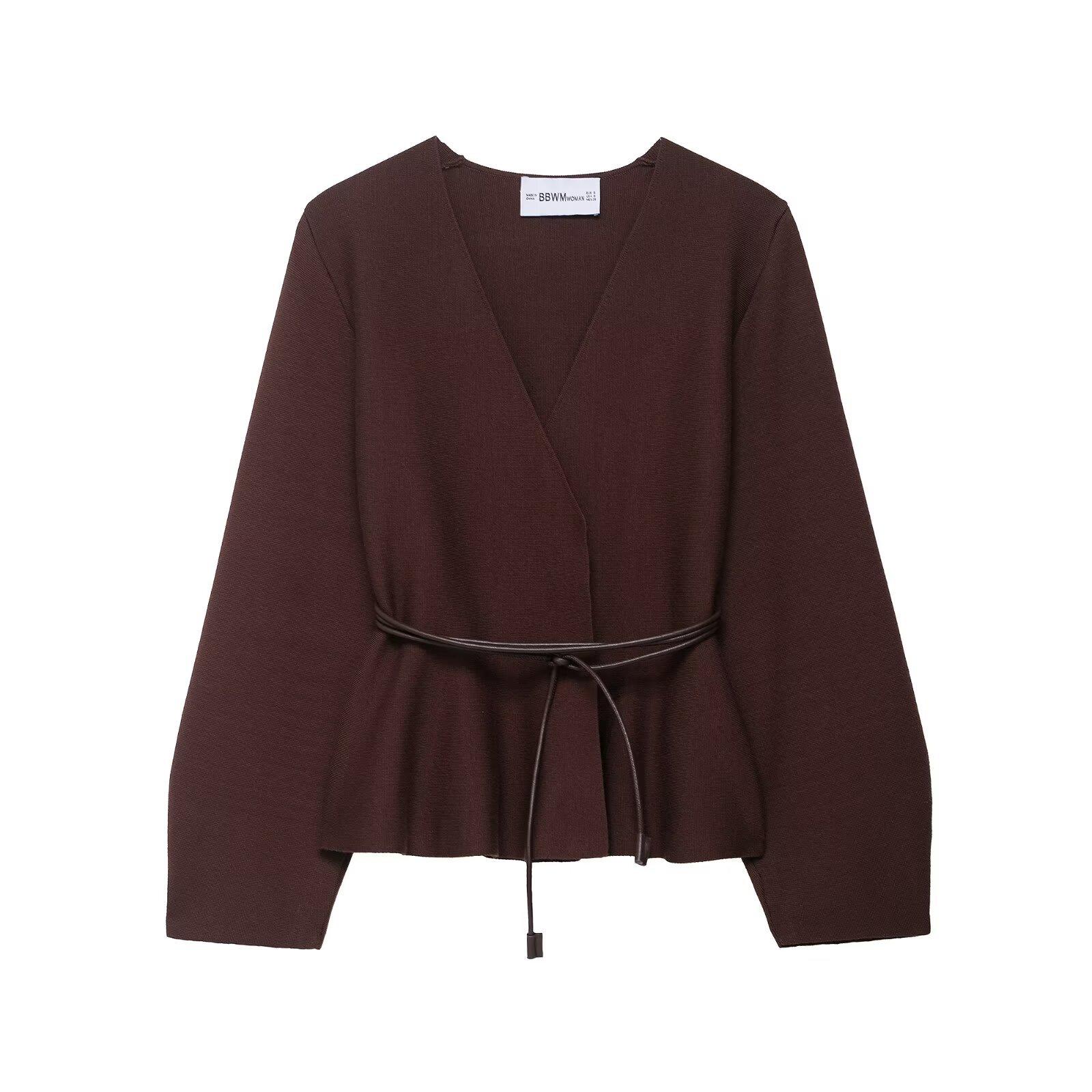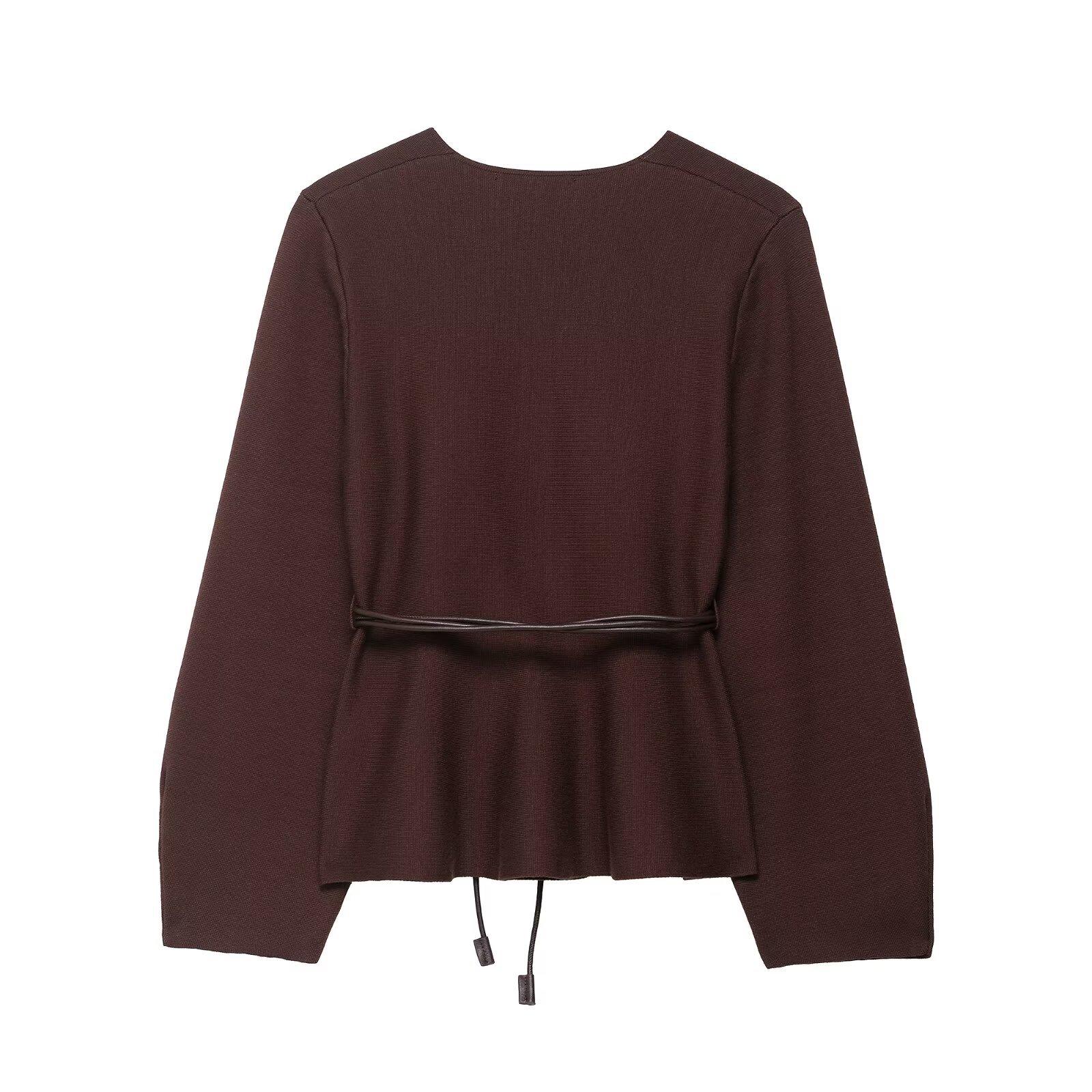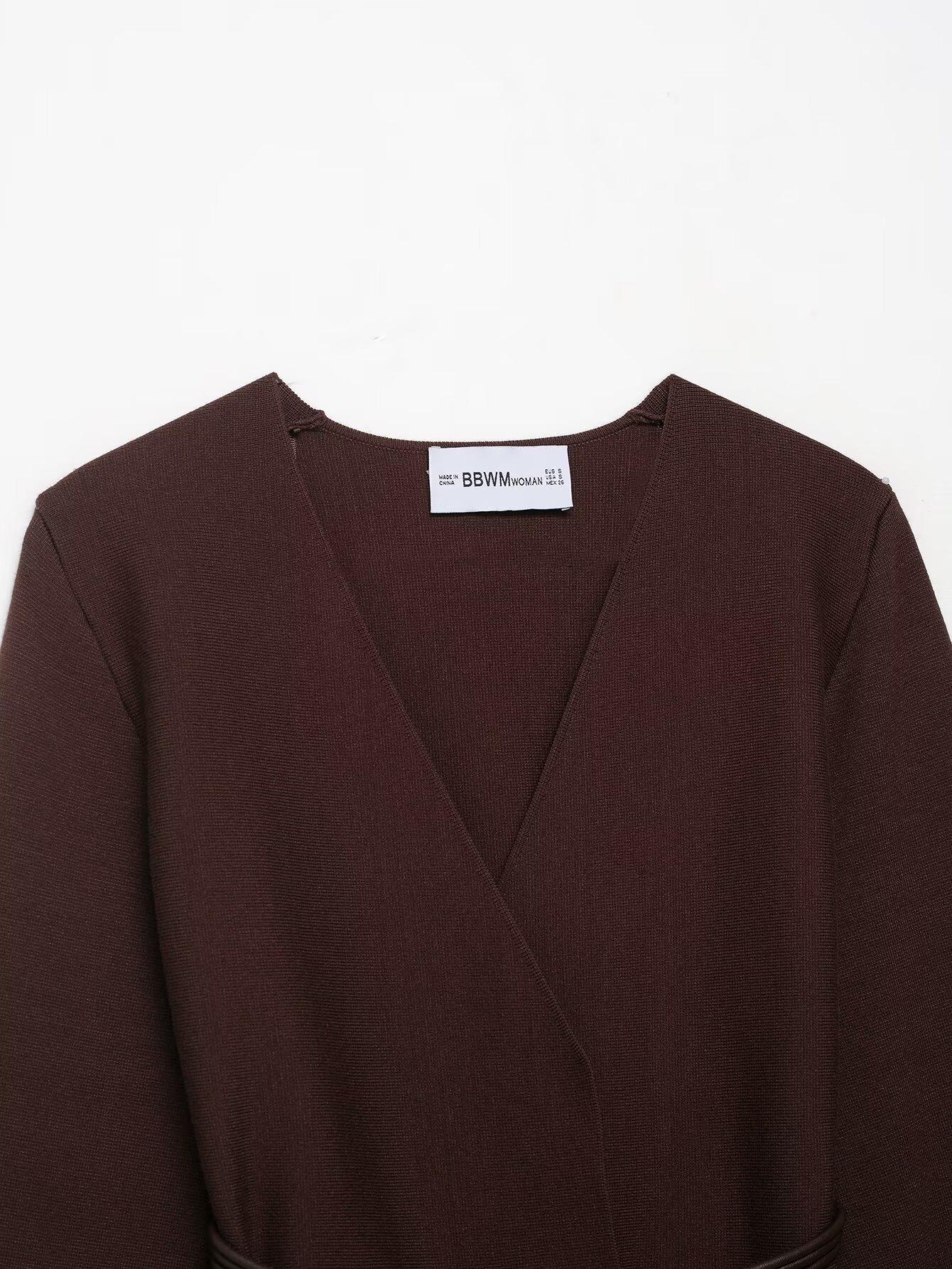 Ropa de mujer transfronteriza al por mayor otoño nuevo estilo europeo y americano cuello en V con cinturón abrigo cárdigan de punto 9598252