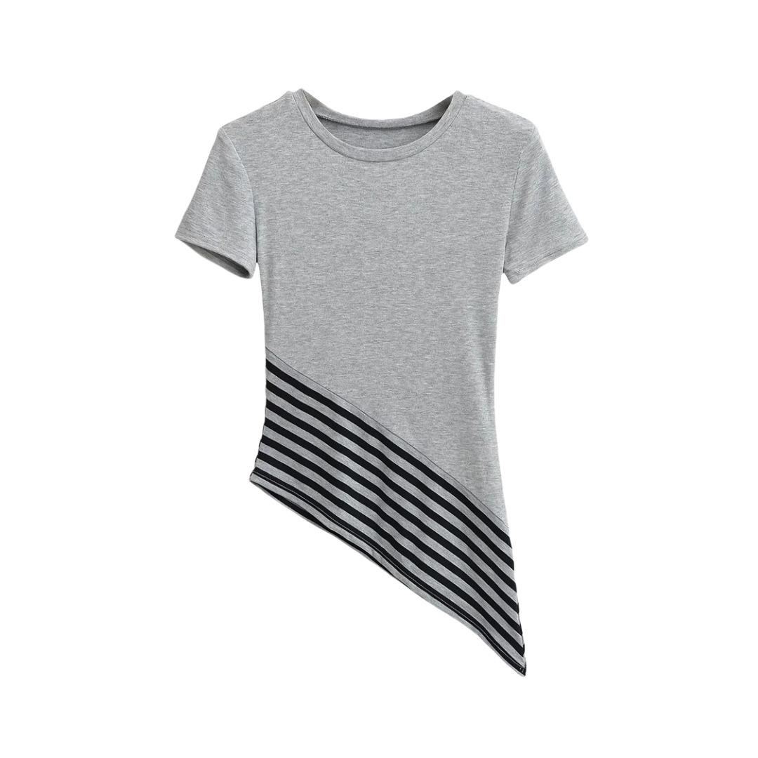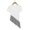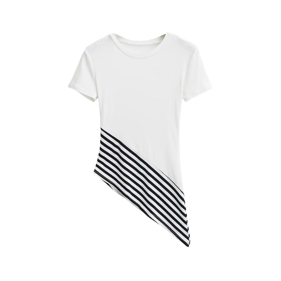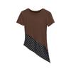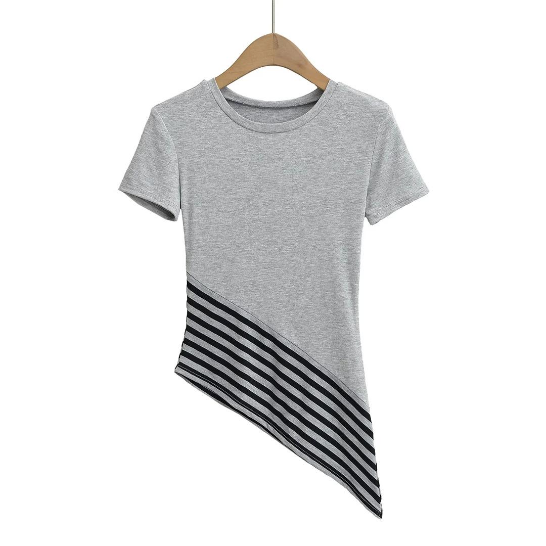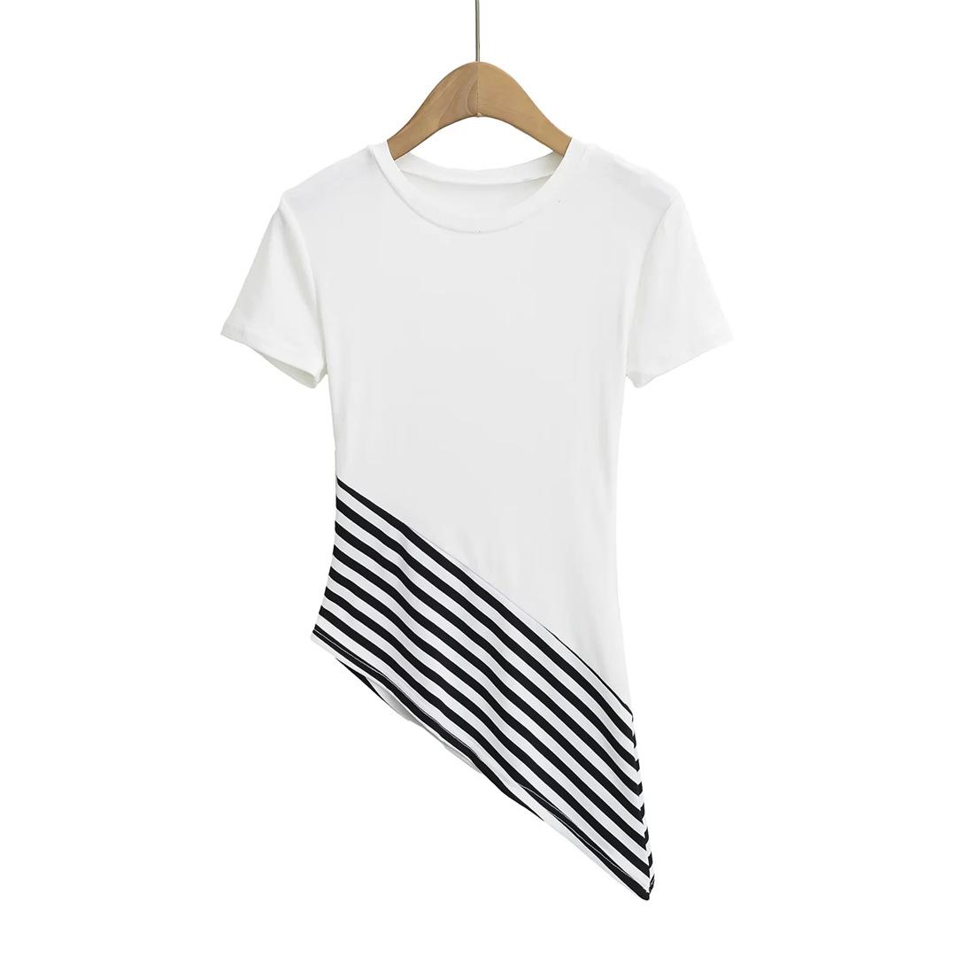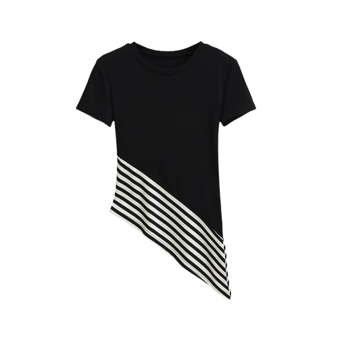 Playera de Manga Corta con Cuello Redondo y Color en Contraste para Mujer, Diseño Nicho Europeo y Americano, Combinación de Colores a Rayas Irregulares, Top Ajustado