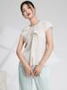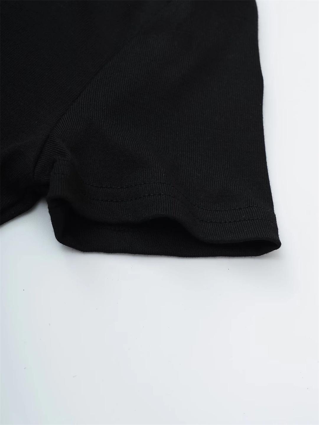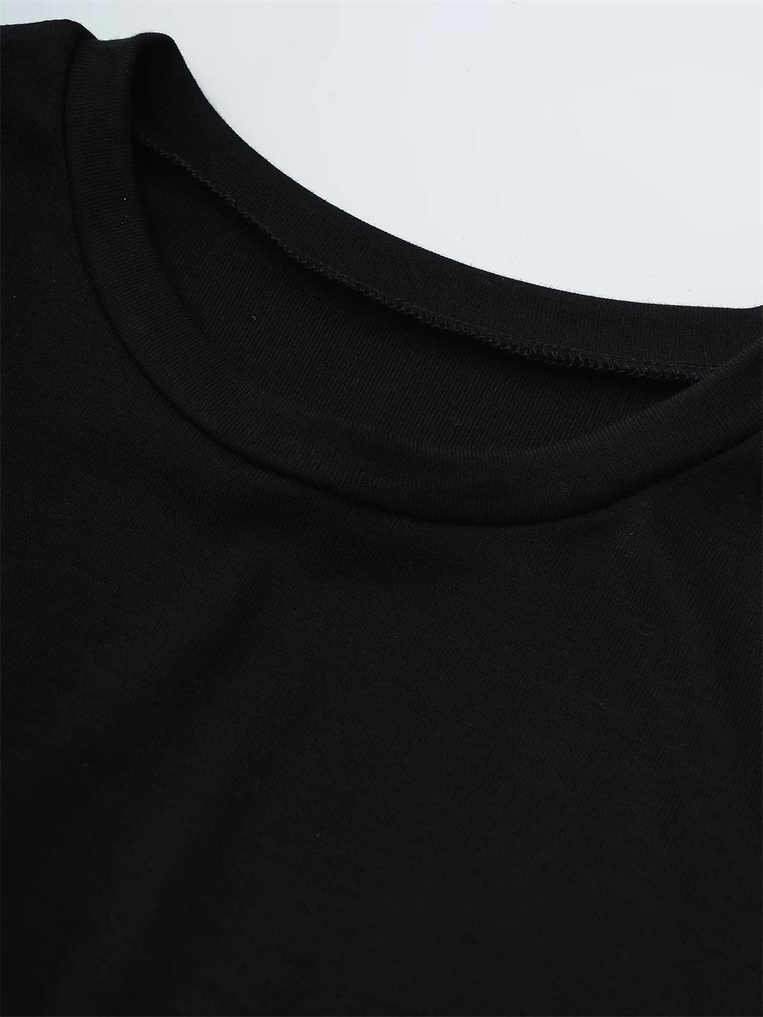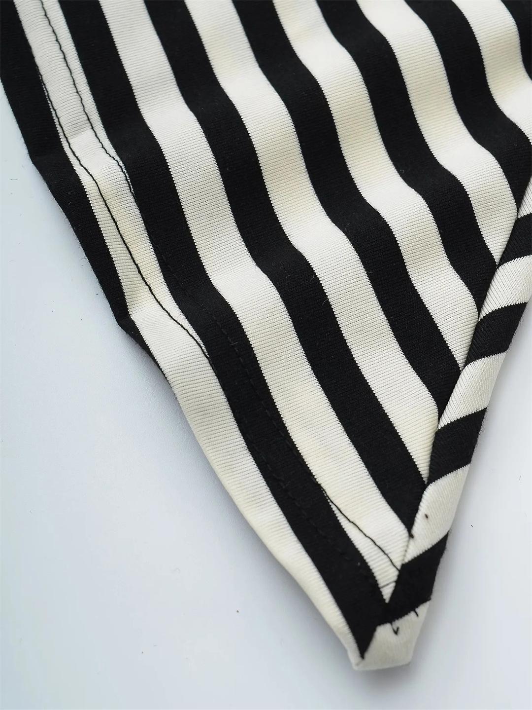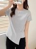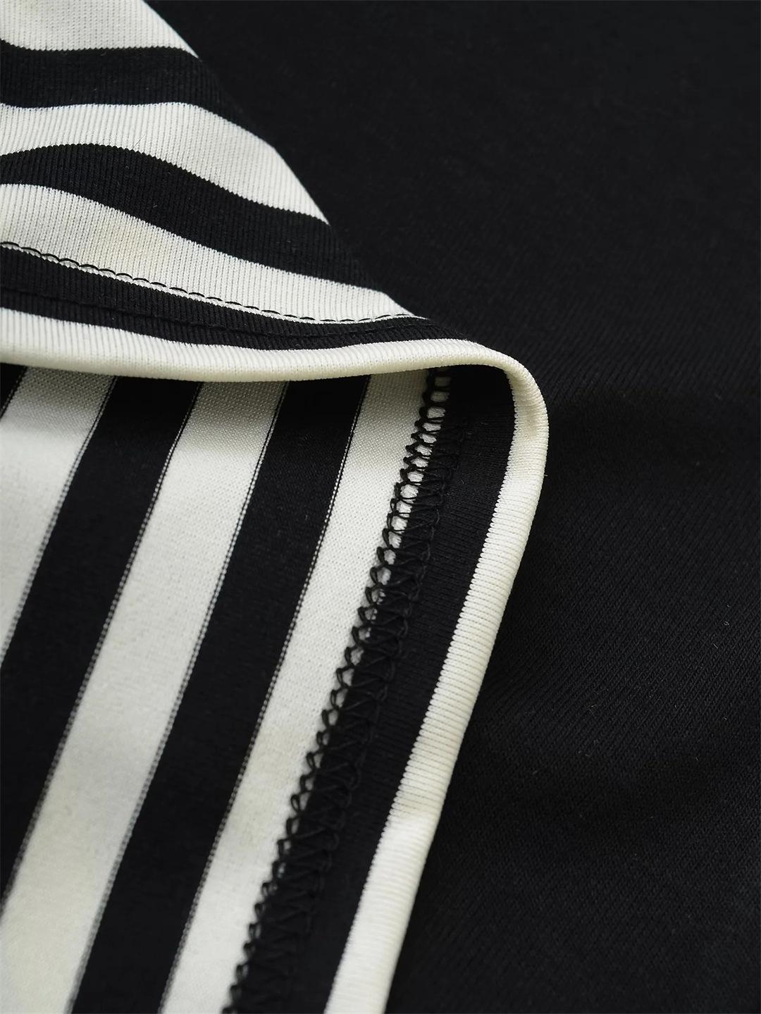 Playera de Manga Corta con Cuello Redondo y Color en Contraste para Mujer, Diseño Nicho Europeo y Americano, Combinación de Colores a Rayas Irregulares, Top Ajustado
