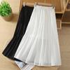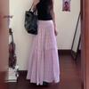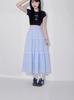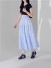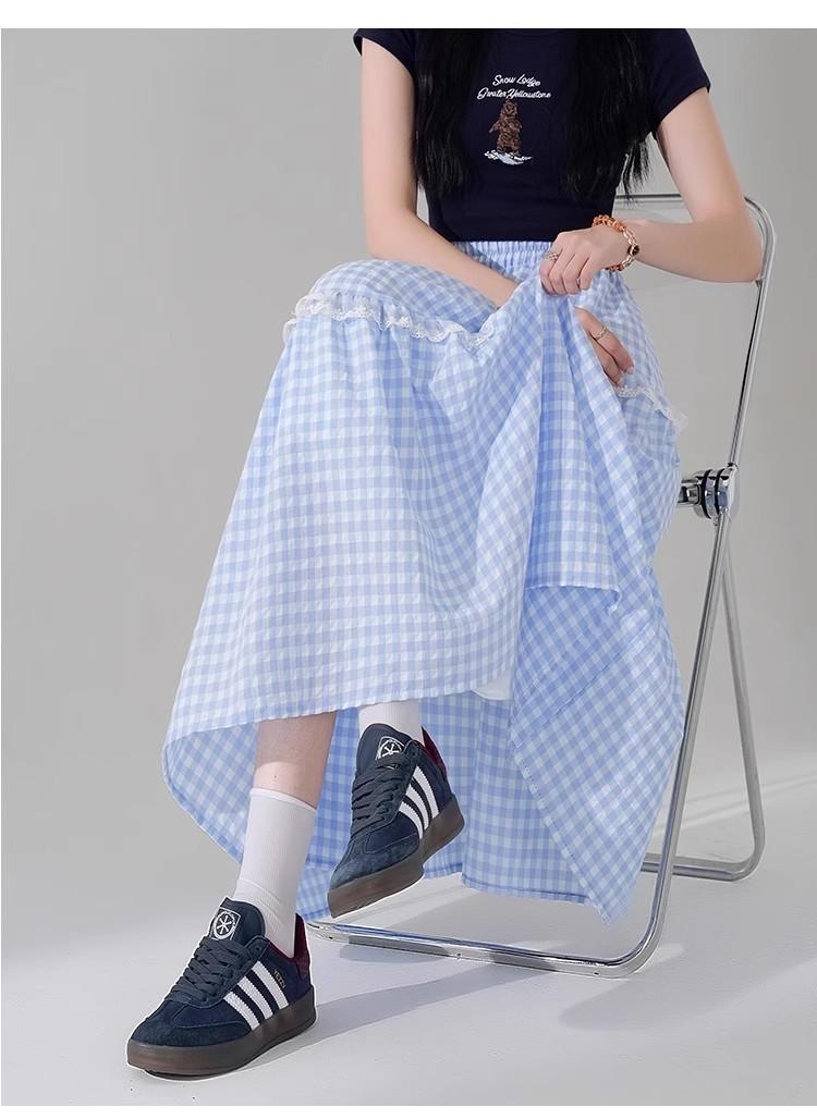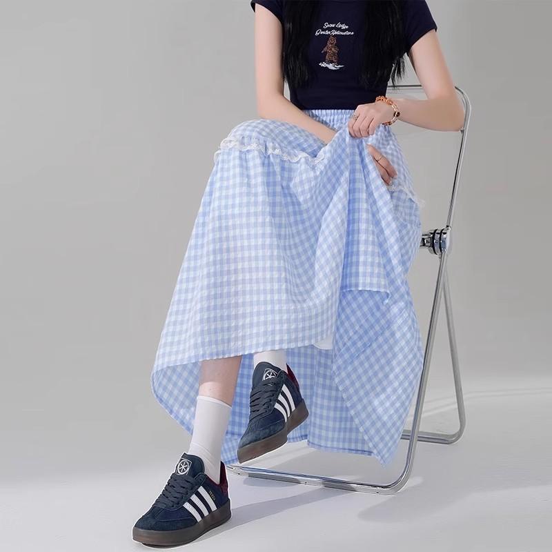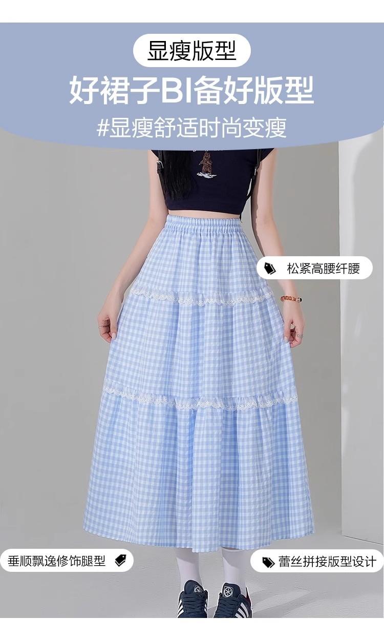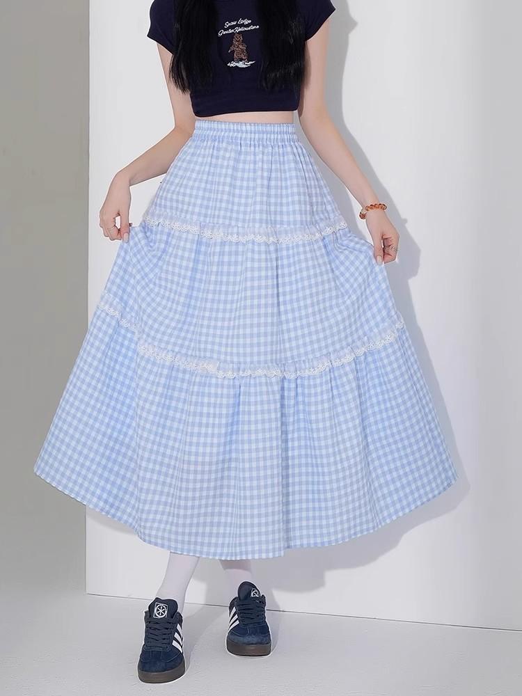 Casual Versátil Temperamento Gran Vuelo Cuadros Azules Media Falda para Mujer Verano Estilo Coreano Dulce Cintura Alta Línea A Pastel Falda Larga