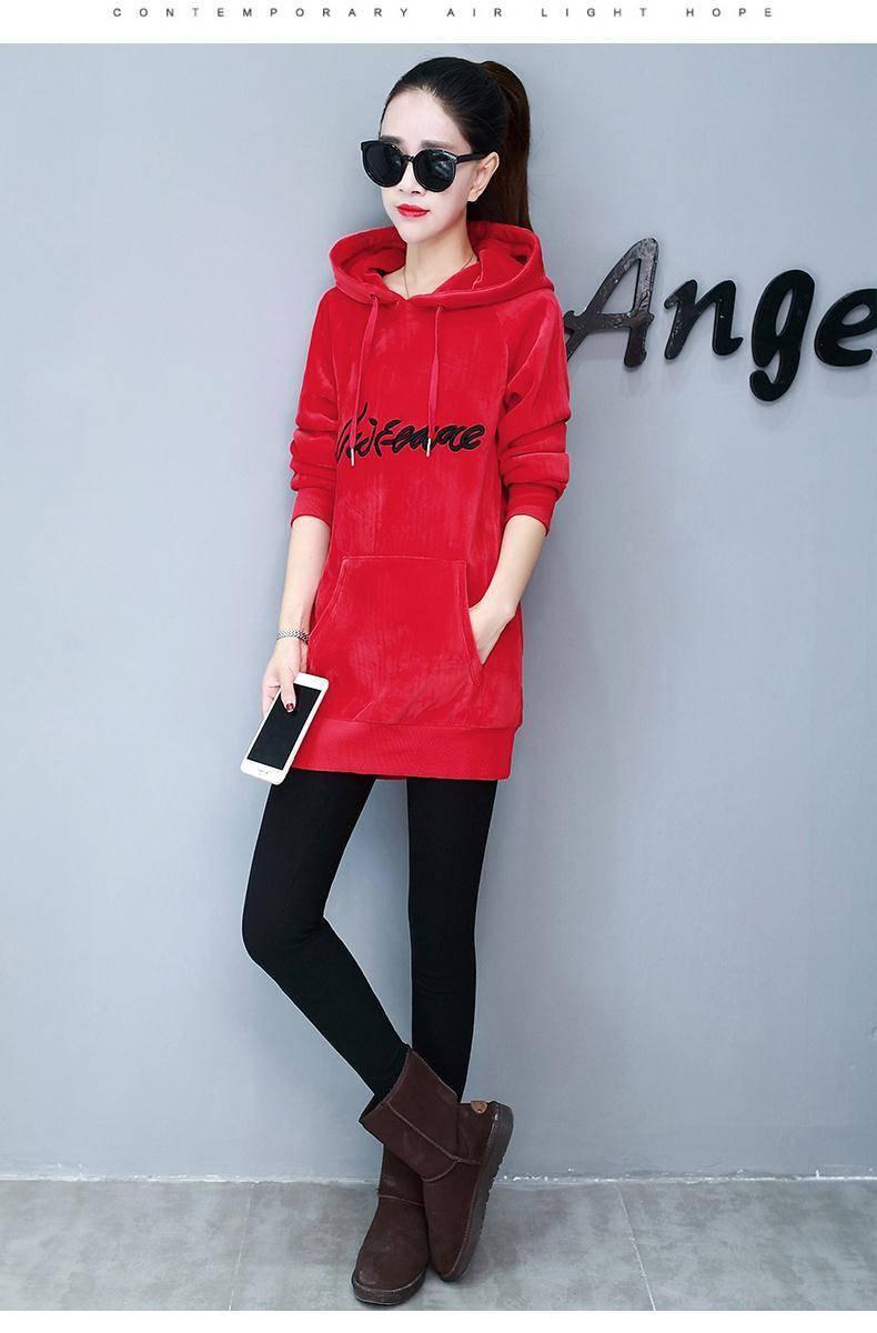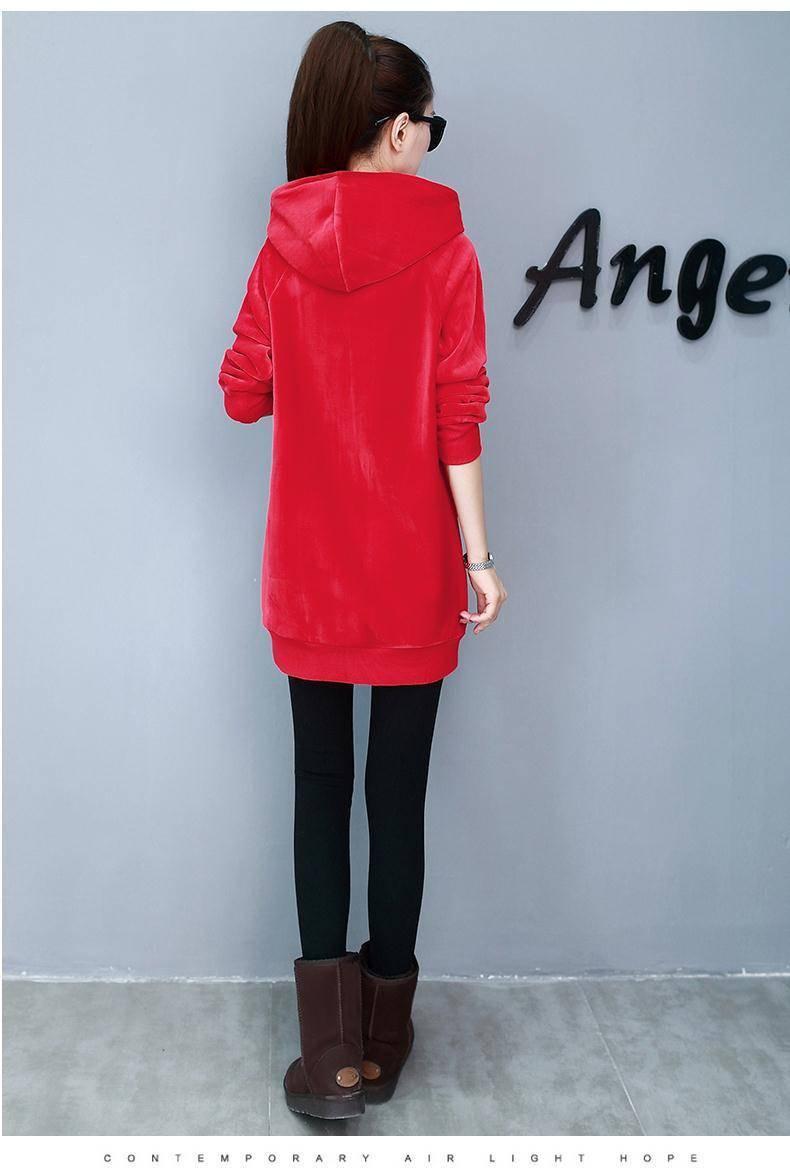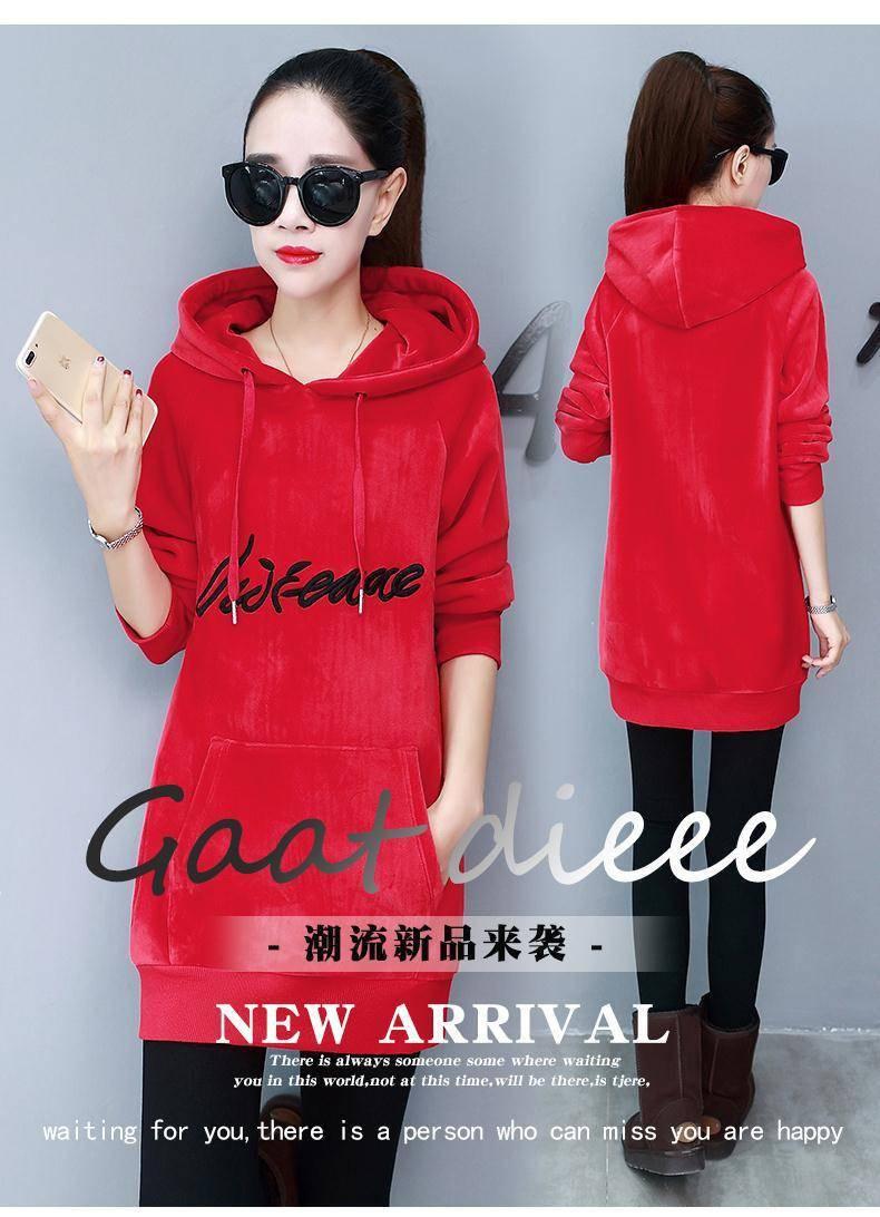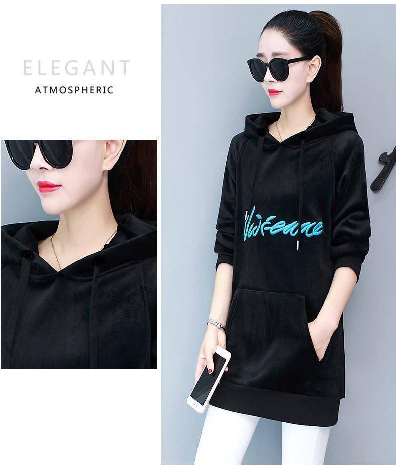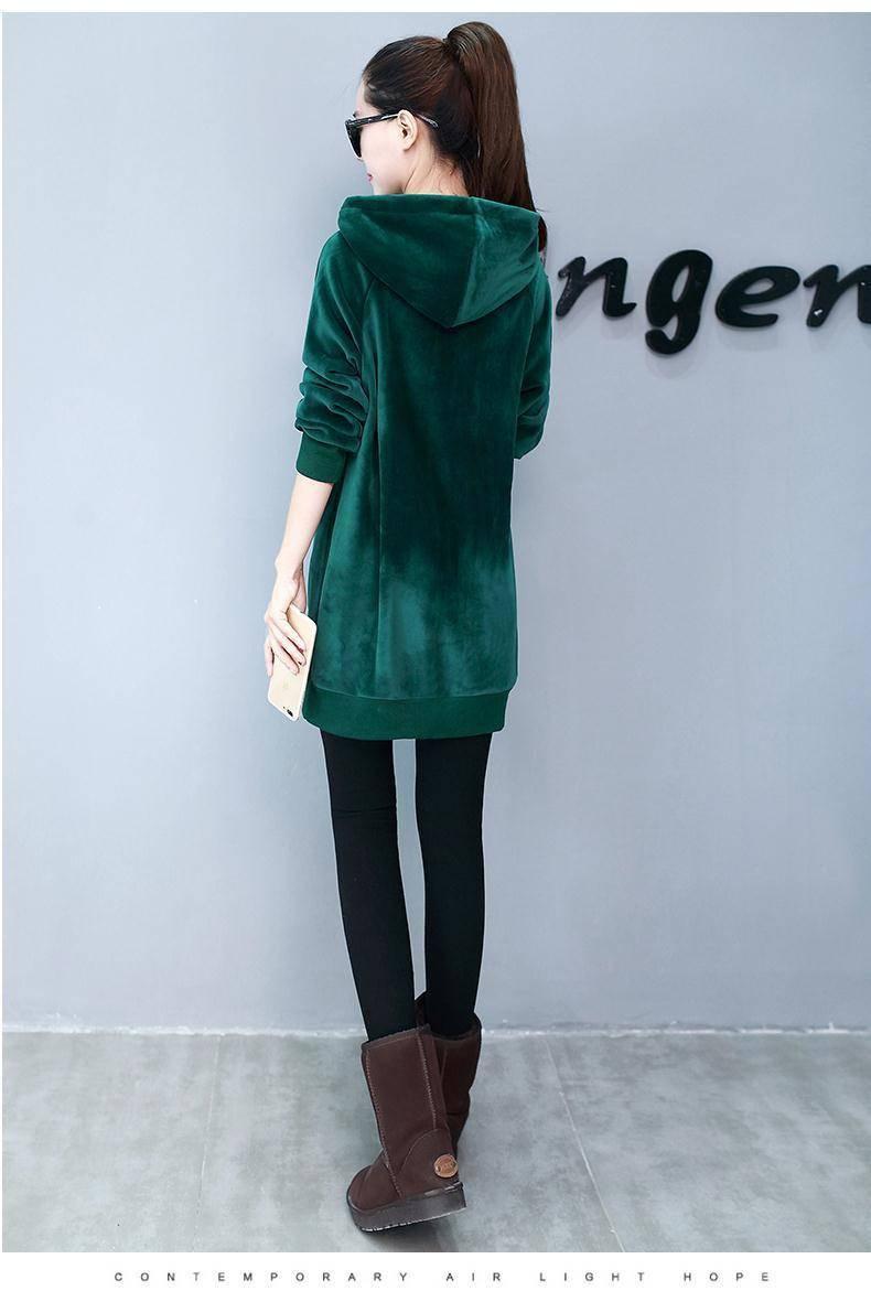 2025 Otoño/Invierno Nuevo Estilo Coreano Holgado con Forro Polar Engrosado Sudadera con Capucha para Mujer Manga Larga de Largo Medio Top de Terciopelo Dorado