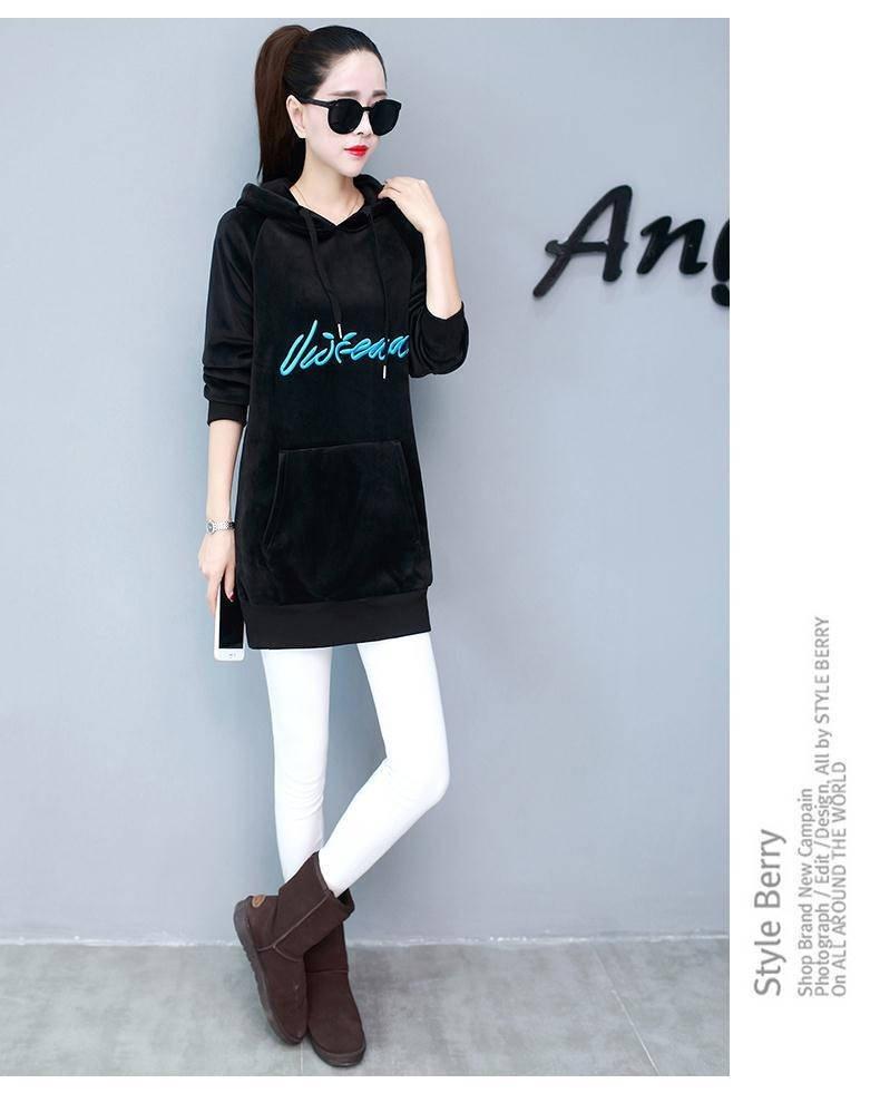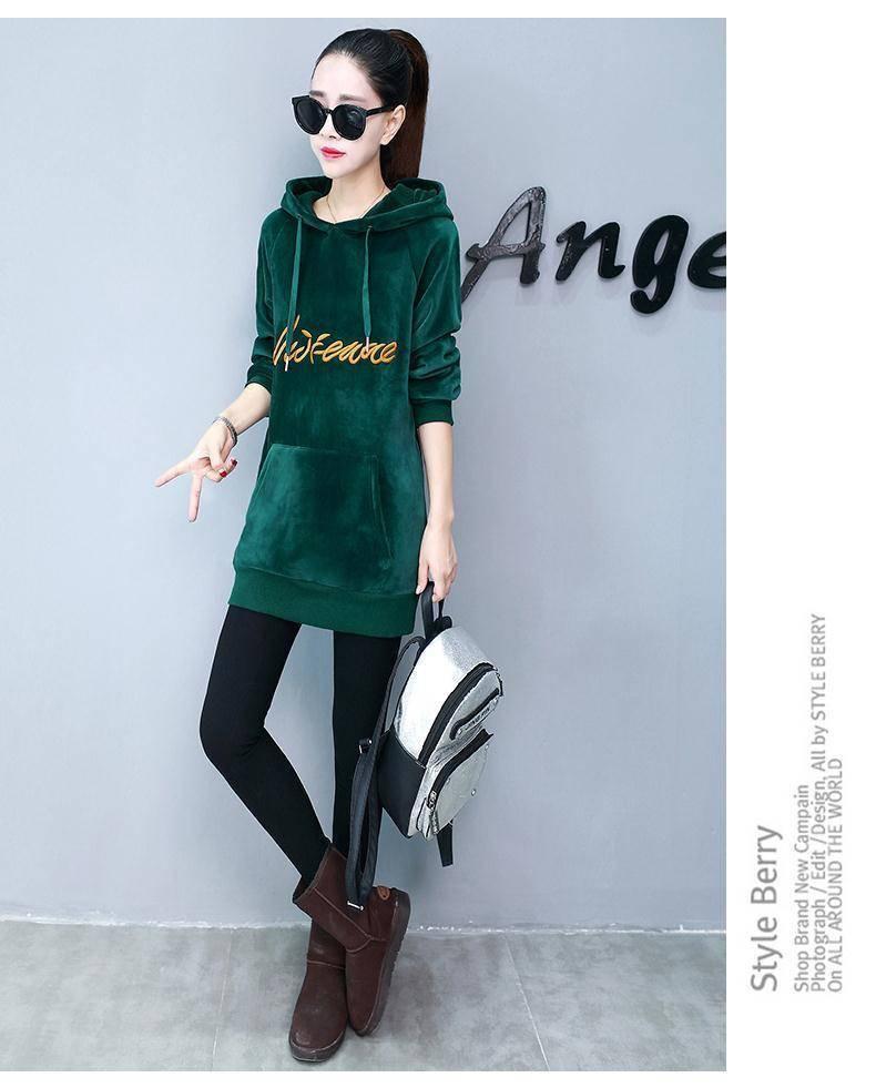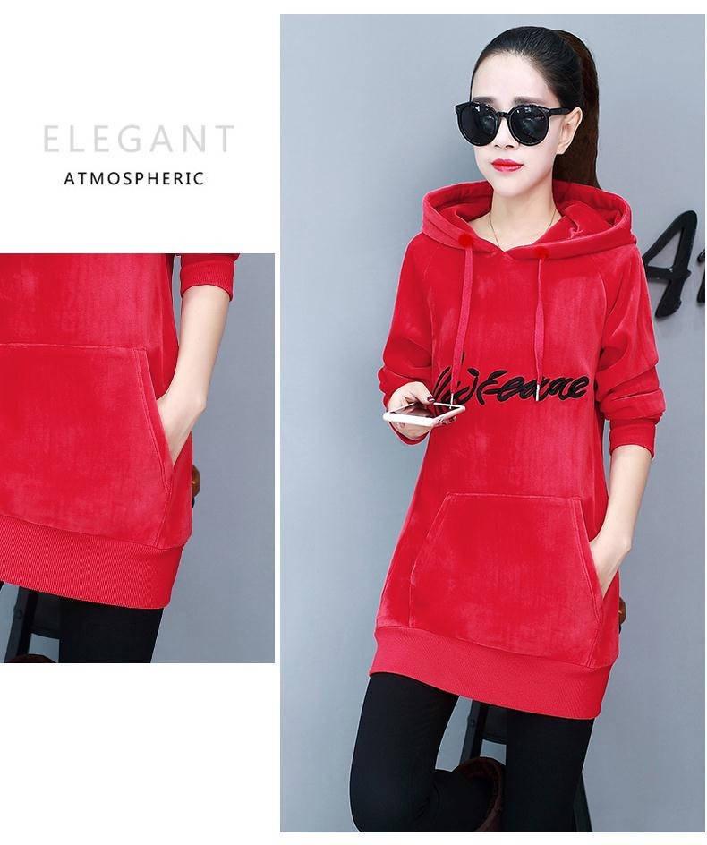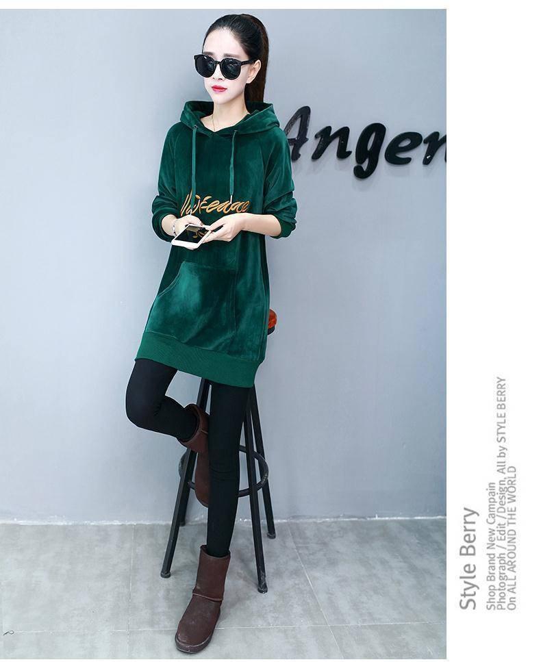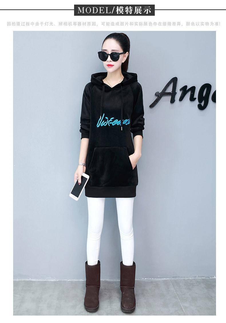 2025 Otoño/Invierno Nuevo Estilo Coreano Holgado con Forro Polar Engrosado Sudadera con Capucha para Mujer Manga Larga de Largo Medio Top de Terciopelo Dorado