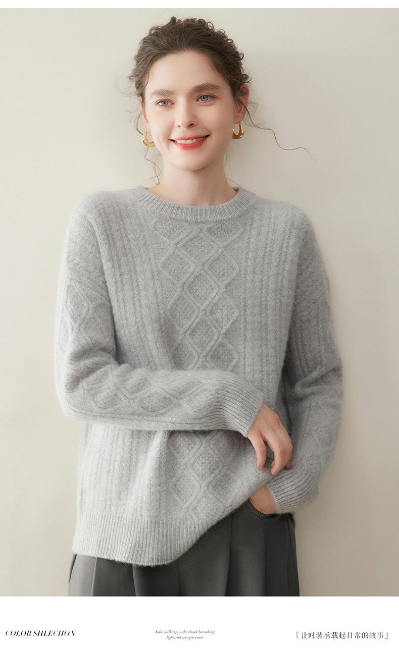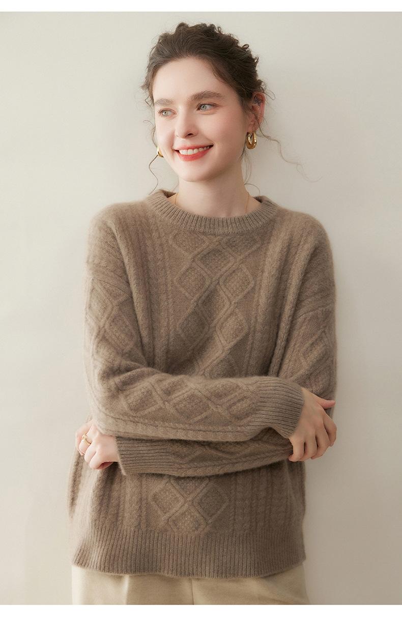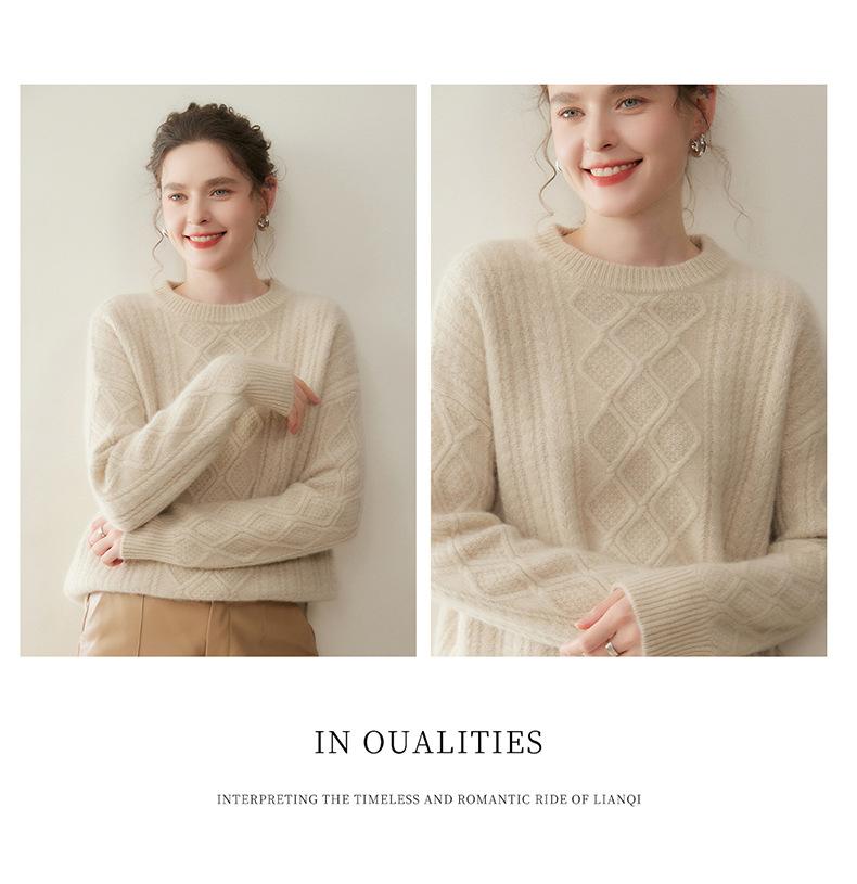 Nueva Camiseta Básica de Punto de Cachemira de Color Sólido para Mujer Otoño/Invierno Holgada Adelgazante Cuello Redondo Suéter Jersey Capa Interior Gruesa