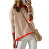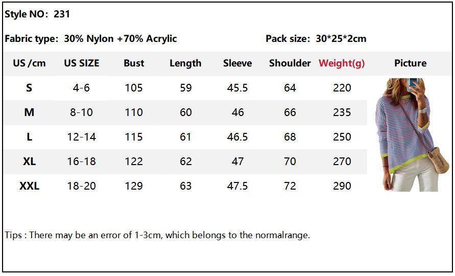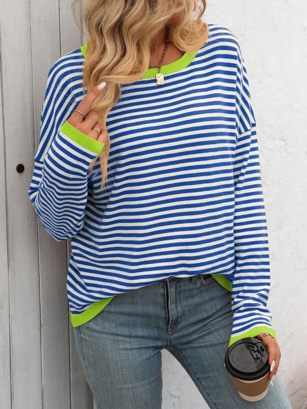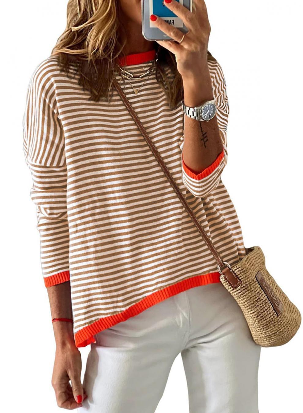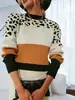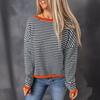 2025 Otoño/Invierno Nuevo Estilo Transfronterizo Moda Europea y Americana para Mujer Damas Cuello Redondo Bloque de Color a Rayas Manga Larga Suéter Casual Top Bloque de Color