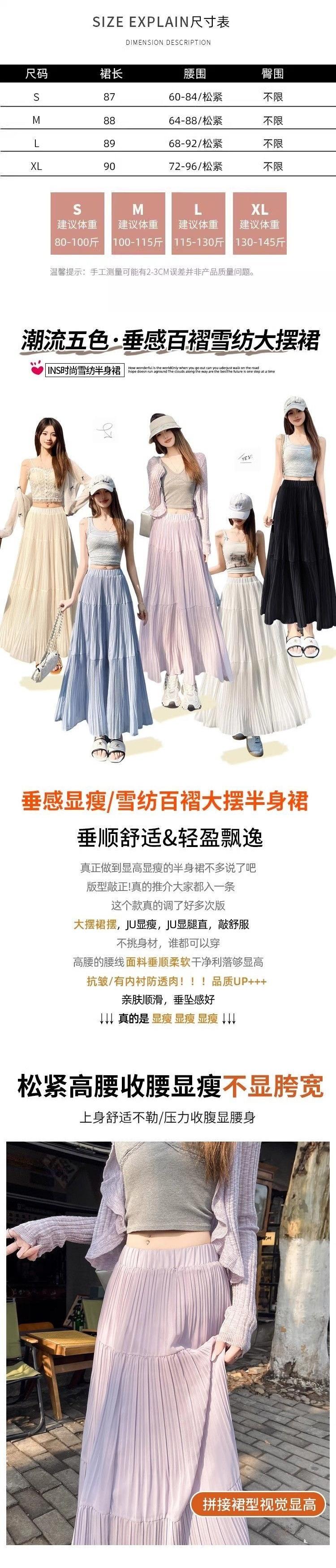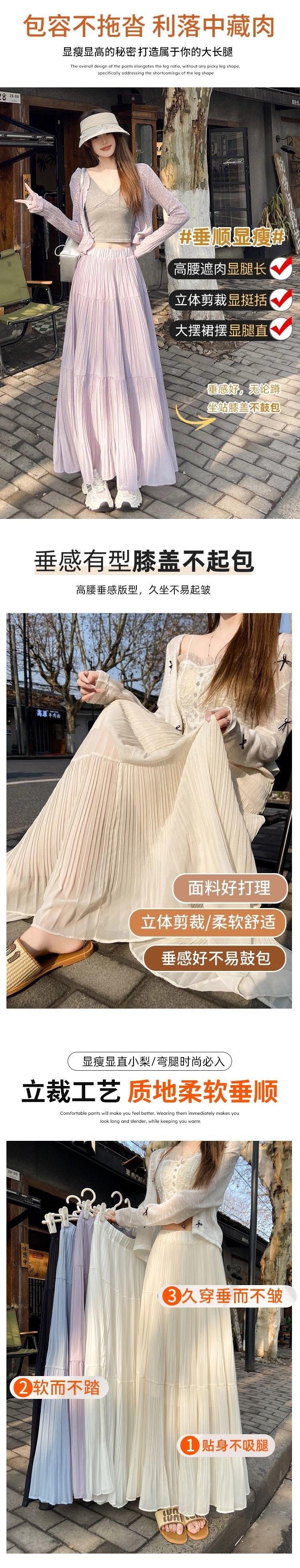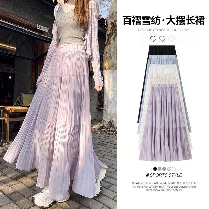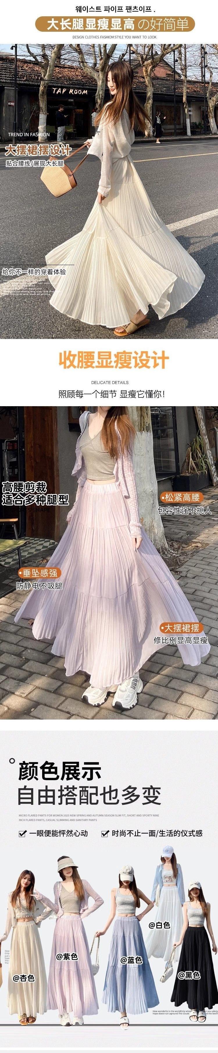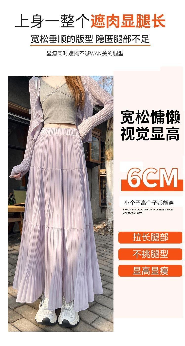 Falda plisada morada para mujer 2025 primavera y verano nueva de cintura alta con efecto adelgazante corte A que cubre las caderas falda larga plisada de dobladillo amplio