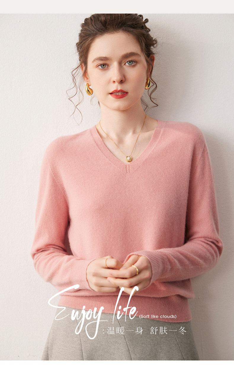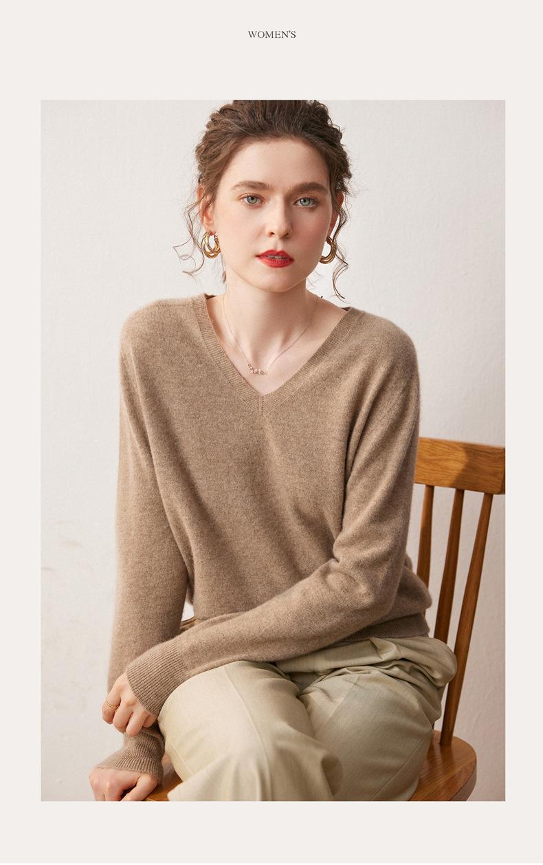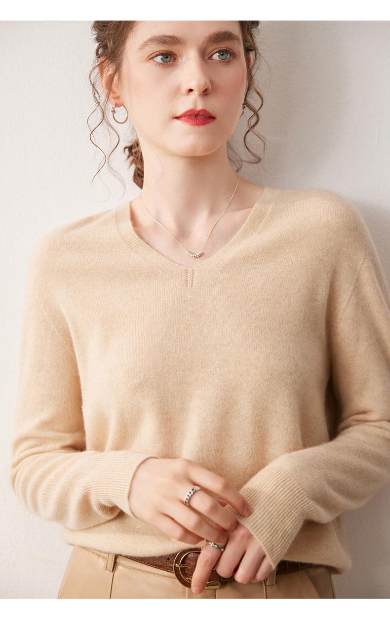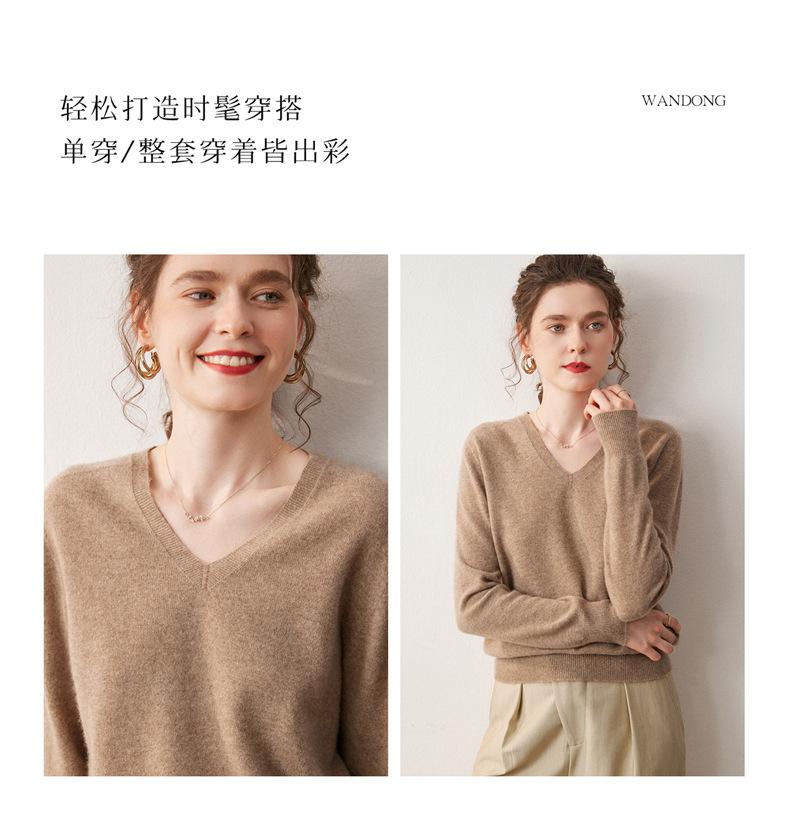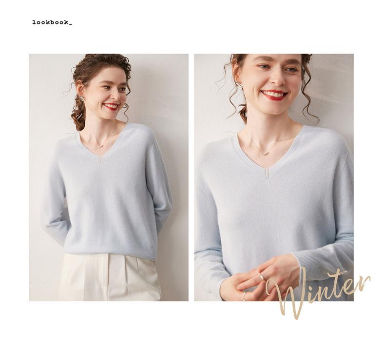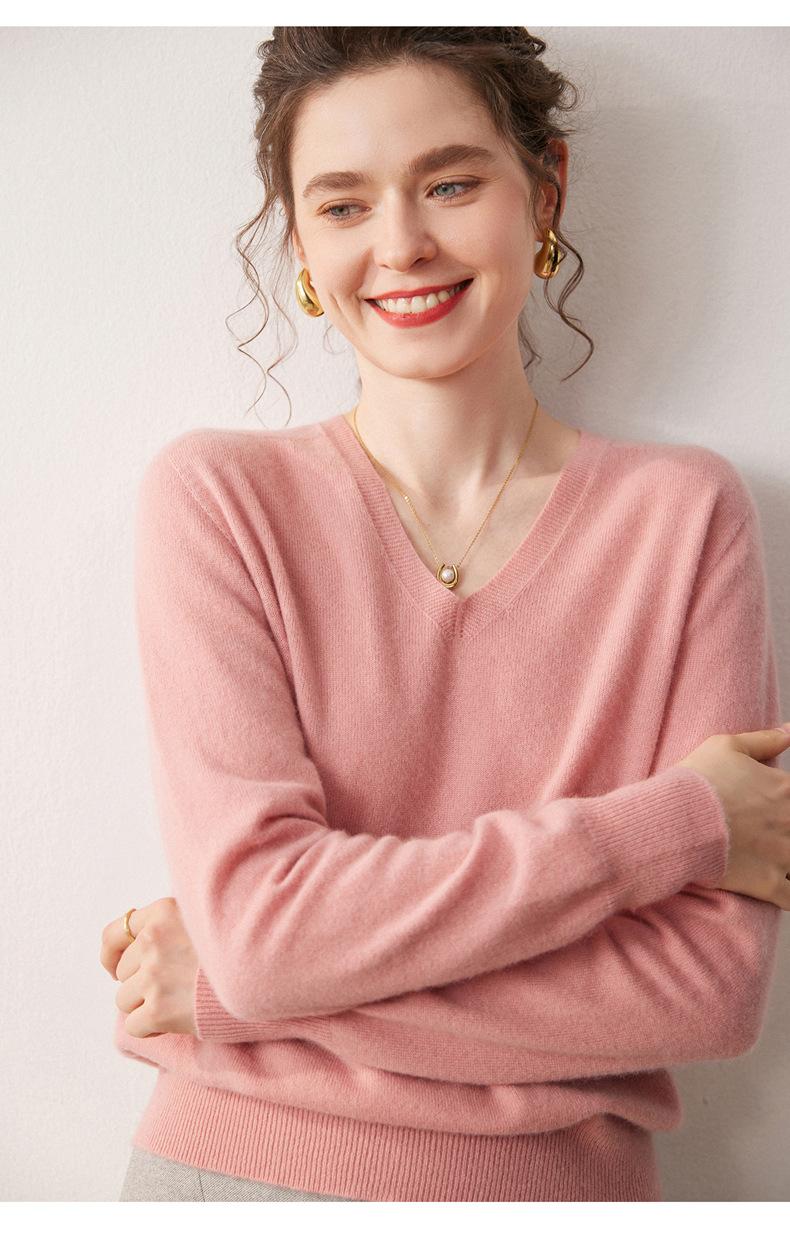 Artículo Popular~Suéter de Cachemira de Una Pieza sin Costuras para Mujer con Cuello en V, Suéter Pulóver Otoño/Invierno Holgado Tejido Capa Base al por Mayor